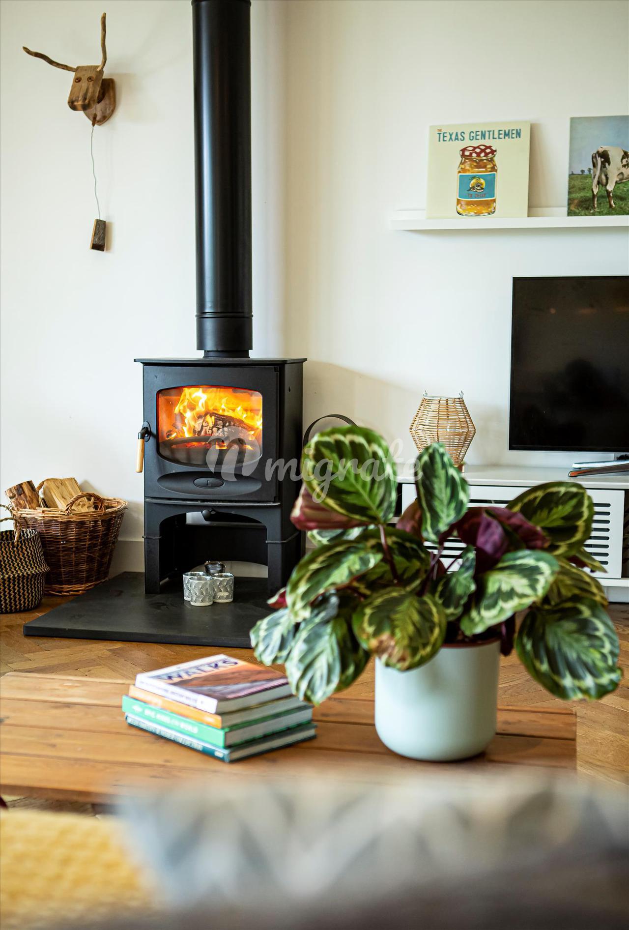 В центре жилой зоны находится дровяная печь — ее включение в этот пассивный дом больше связано с созданием уютной атмосферы, чем с потребностью в каком-либо отоплении: воздух циркулирует по всему дому, поддерживая постоянную температуру 19 — 21 градус по всему дому. . Другие экологические особенности дома включают натуральную очитковую крышу и современную изоляцию; Эффективность этого дома с точки зрения требований к изоляции и энергии не имеет себе равных.