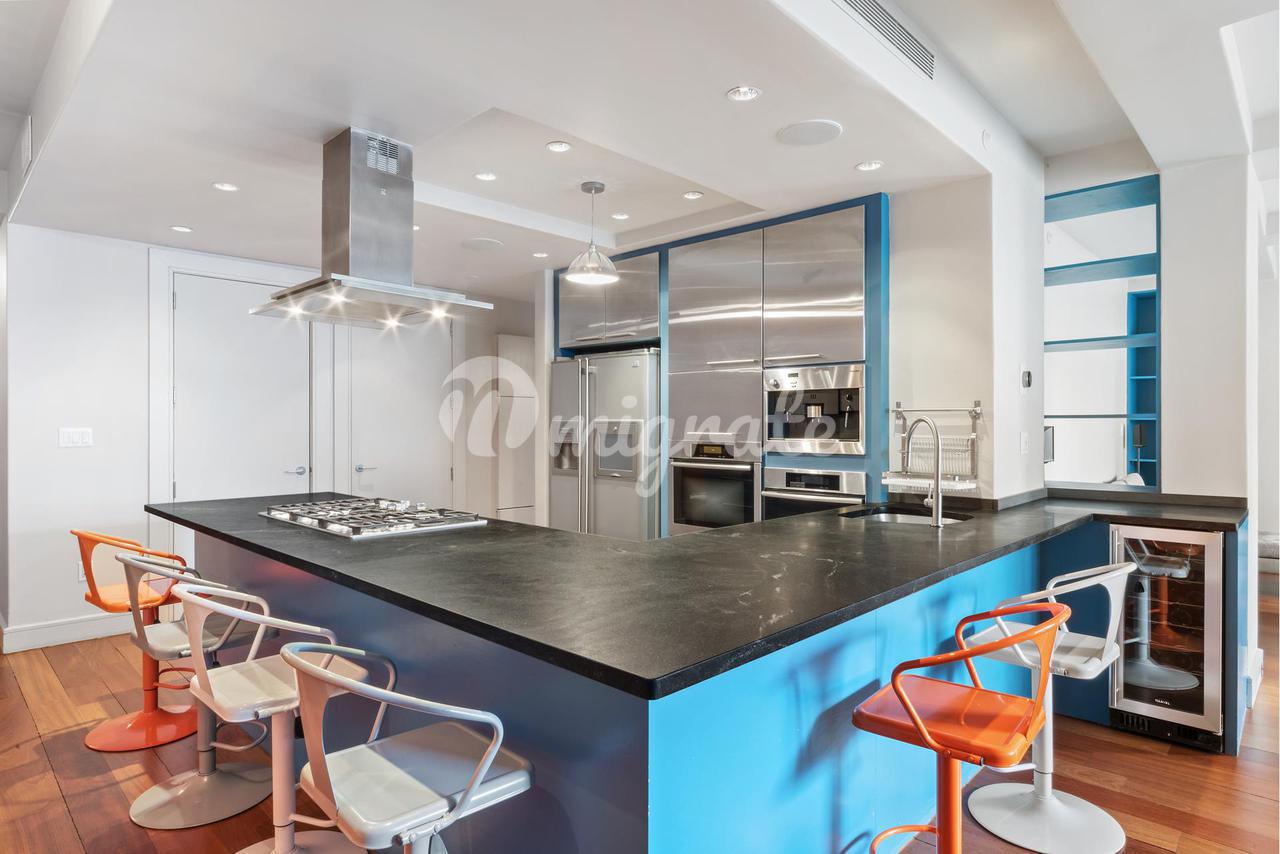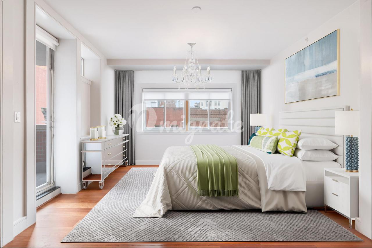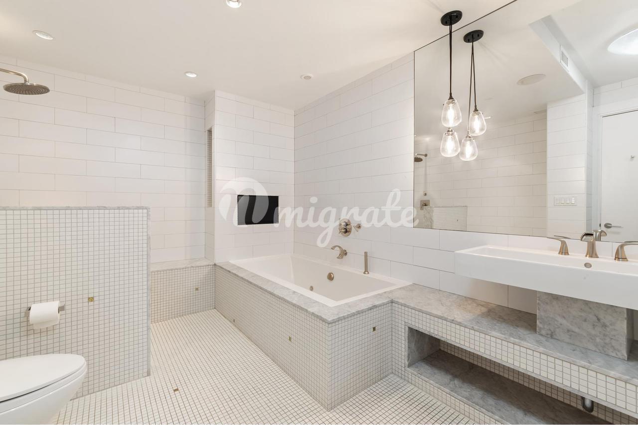 Войдите через входную галерею в гостиную открытой планировки с большой комнатой, включающей кухню шеф-повара для гурманов, кабинет, гостиную и столовую, которые выходят на 20-футовую частную террасу со стеклянными перилами и видом на город. Резиденция была тщательно отремонтирована с использованием элегантной современной отделки по всей территории. Открытая кухня оборудована дизайнерской мебелью, красивыми каменными столешницами с барной стойкой и современной бытовой техникой, включая газовую плиту Master Chef с 5 конфорками и вентилируемой вытяжкой, встроенную кофеварку для приготовления капучино, охладитель вина Marvel, проводной холодильник LG с LCD / HDTV, конвекционную стену Miele и паровую духовку. В угловой основной спальне установлены кровать размера "king-size", прикроватные тумбочки, комод и письменный стол. К услугам гостей собственная терраса, большая гардеробная с дверцами-карманами и собственная ванная комната с гидромассажной ванной с изготовленным на заказ душем, отделанным плиткой, большой гидромассажной ванной с гидромассажем и даже встроенным в стену телевизором. Вторая спальня становится самостоятельным миром, поскольку естественный свет проникает внутрь из ее огромных окон на западной стороне. Во второй ванной комнате есть плавающий туалетный столик и стеклянный гидромассажный душ. Кабинет может быть преобразован в третью спальню. Просторные шкафы на заказ, встроенная стиральная машина / сушилка, центральный пылесос, паркетные полы, звукоизолированные и усиленные внутренние стены дополняют этот дом.