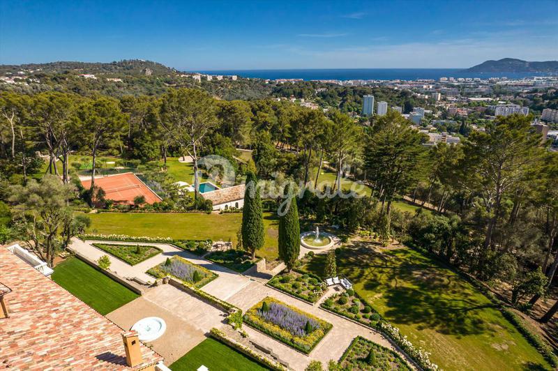 Состоит из внушительного особняка с 9 спальнями, отличающегося "почетным званием", частного парка площадью более 18 гектаров, ландшафтных садов с террасами, мраморного бассейна, теннисного корта, олив