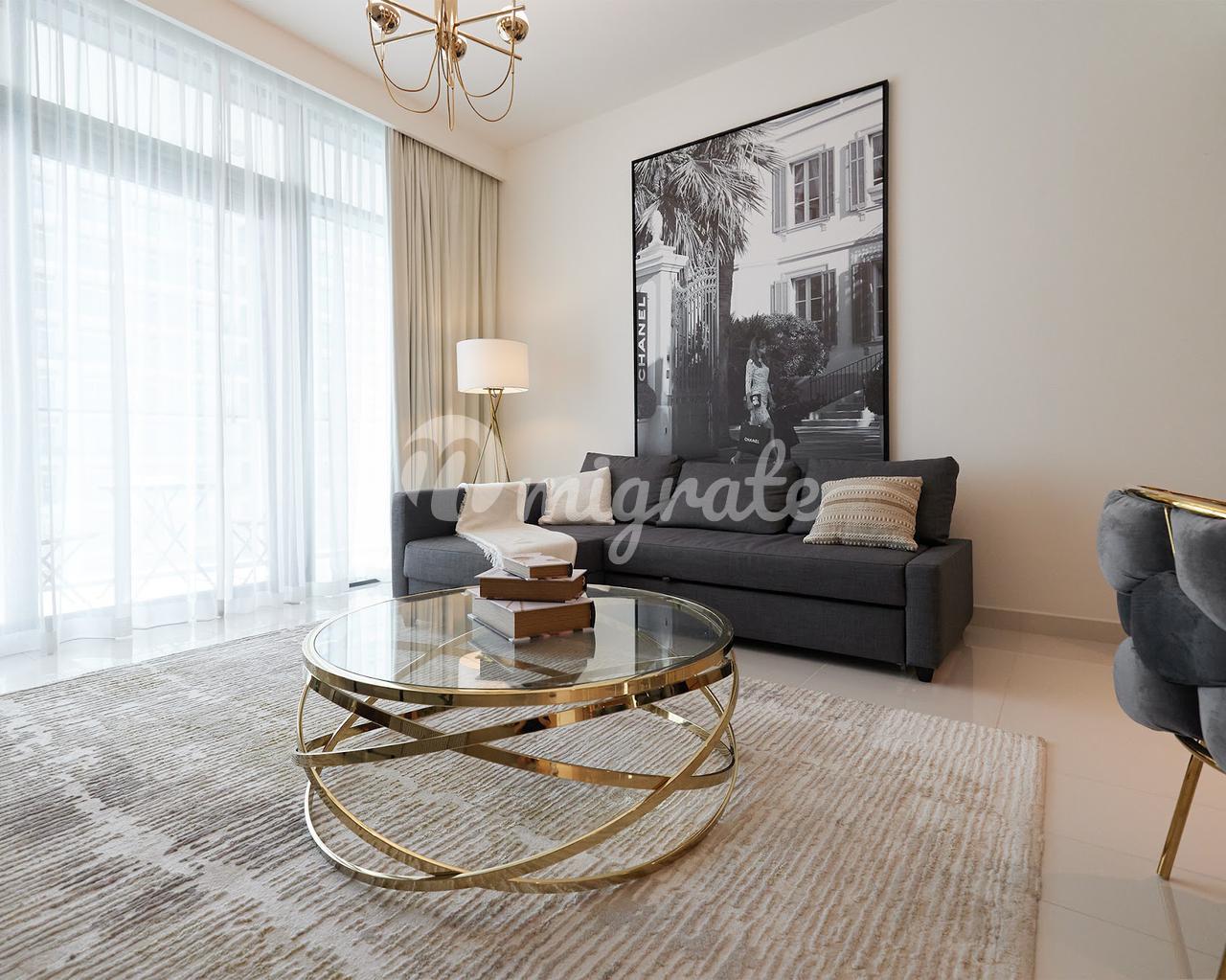 Мы рады представить эту двухкомнатную квартиру в Beach Vista, расположенную в районе Dubai Harbour. Расположенный между Jumeirah Beach Residence (JBR) и Пальмой Джумейрой, отель Emaar Beachfront — это островное направление с доступным и прекрасно связанным адресом. Дубай Марина, The Palm и JBR находятся в нескольких минутах езды, а основные достопримечательности города, такие как центр Дубая, находятся всего в нескольких минутах езды.