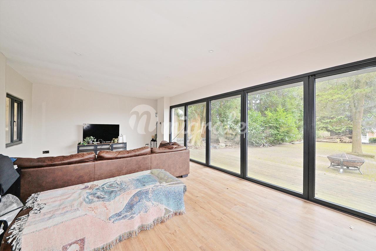 Большая гостиная/столовая - это удивительно светлое пространство. Эркерное окно - прекрасное место для чтения. Два комплекта раздвижных дверей патио открываются в превосходный зимний сад и обеспечивают больше естественного света. Существует также дверь, ведущая в гараж / магазин, и доступ отсюда в прачечную и котельную.