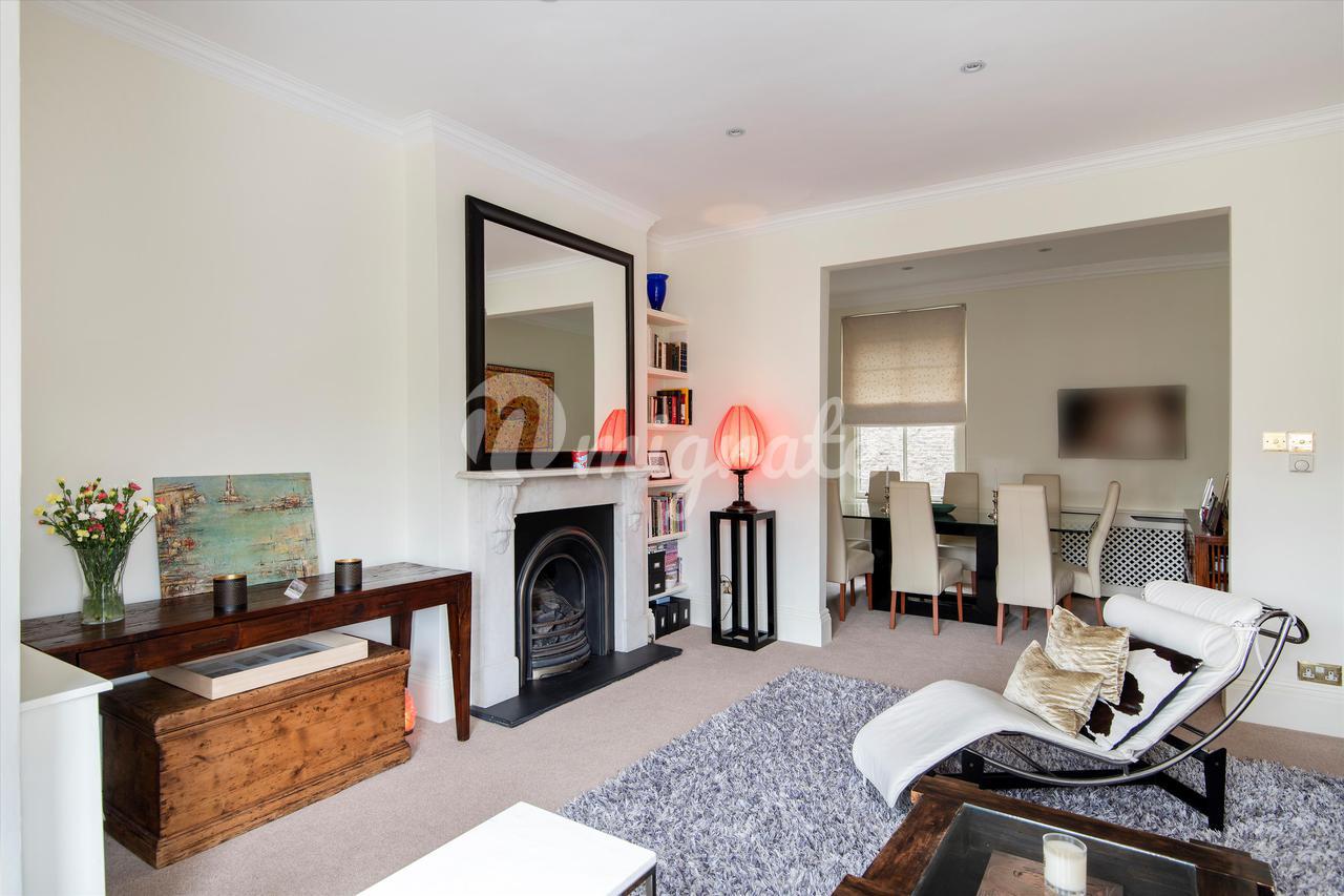 Это редкая на рынке квартира с четырьмя спальнями, расположенная на втором этаже Beaufort Mansions, престижного особняка из красного кирпича в самом сердце Челси.
