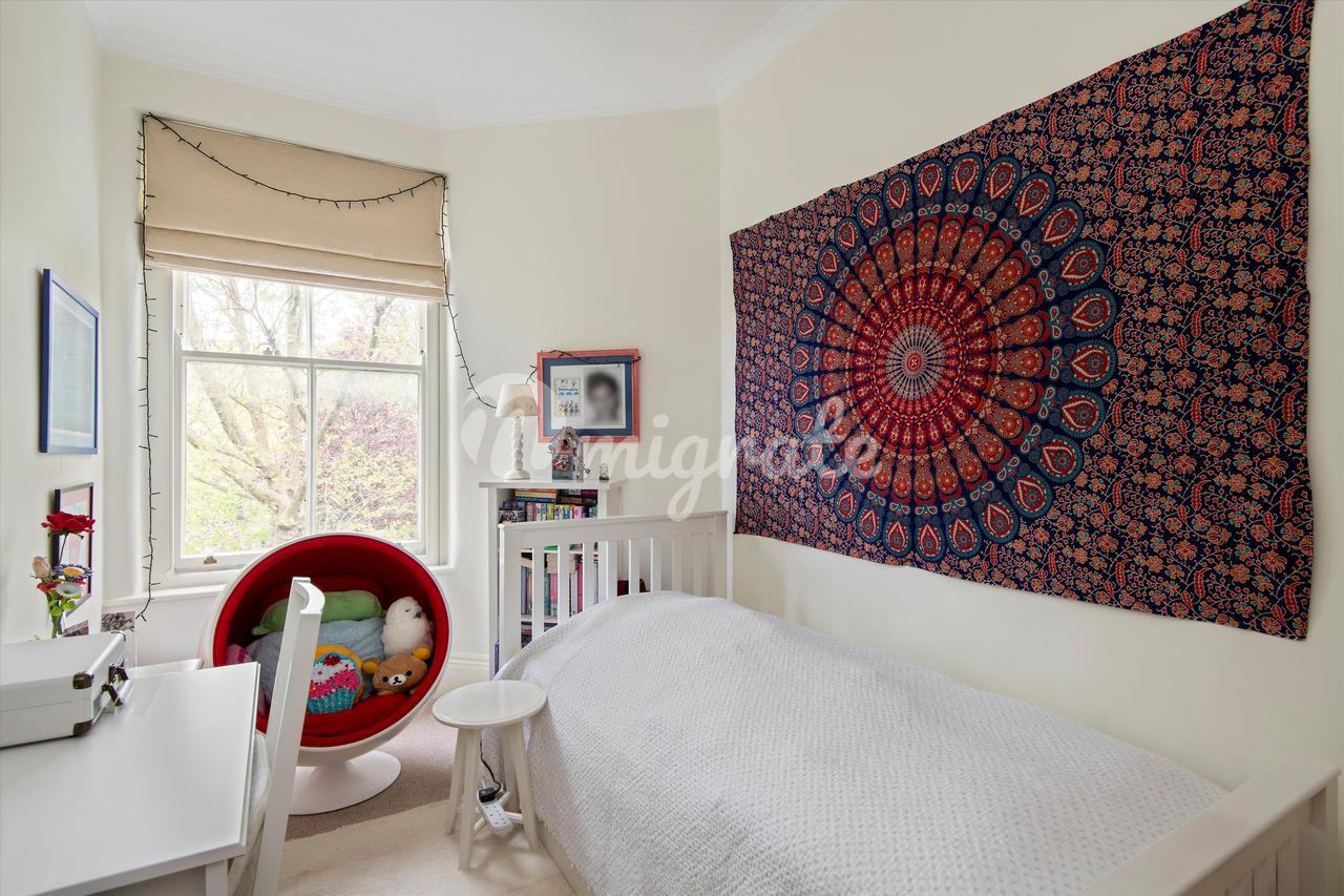 Квартира удивительно просторная и больше, чем большинство квартир в особняке, с жилыми помещениями, состоящими из фантастической двойной гостиной с достаточным пространством для большого обеденного стола, а также отдельной кухни-столовой, которая очень хорошо оборудована. Квартира имеет большую ширину и вмещает четыре спальни хорошего размера с двуспальными кроватями, которые обслуживаются просторной семейной ванной комнатой и отдельной душевой комнатой. Спальни расположены в тихом месте в задней части здания, из них открывается приятный вид на зеленые сады и Моравскую церковь. Квартира имеет доступ к ухоженным коммунальным садам.