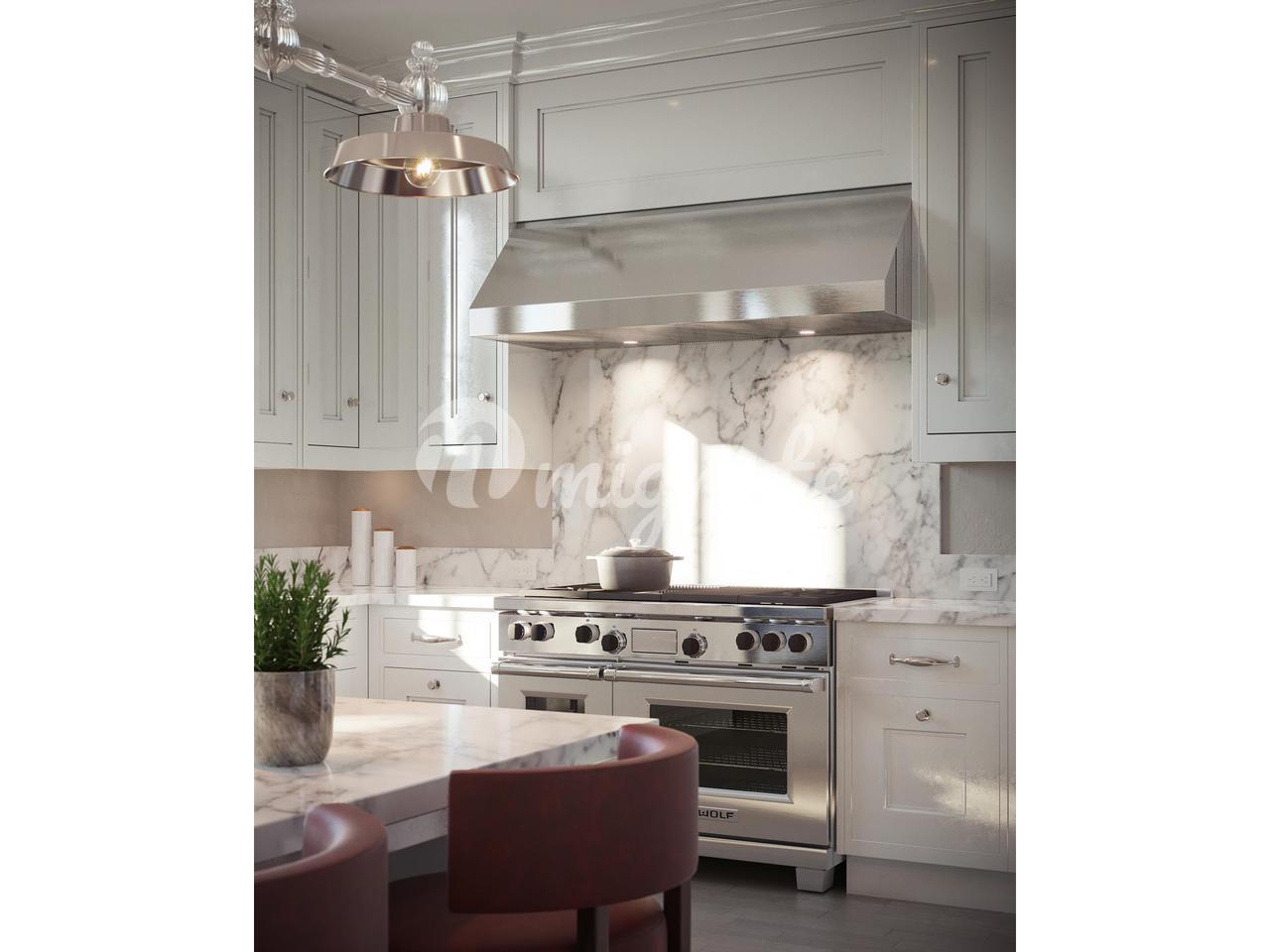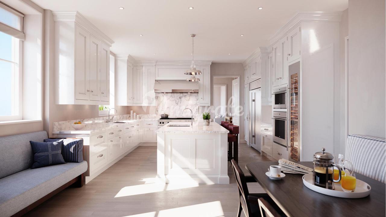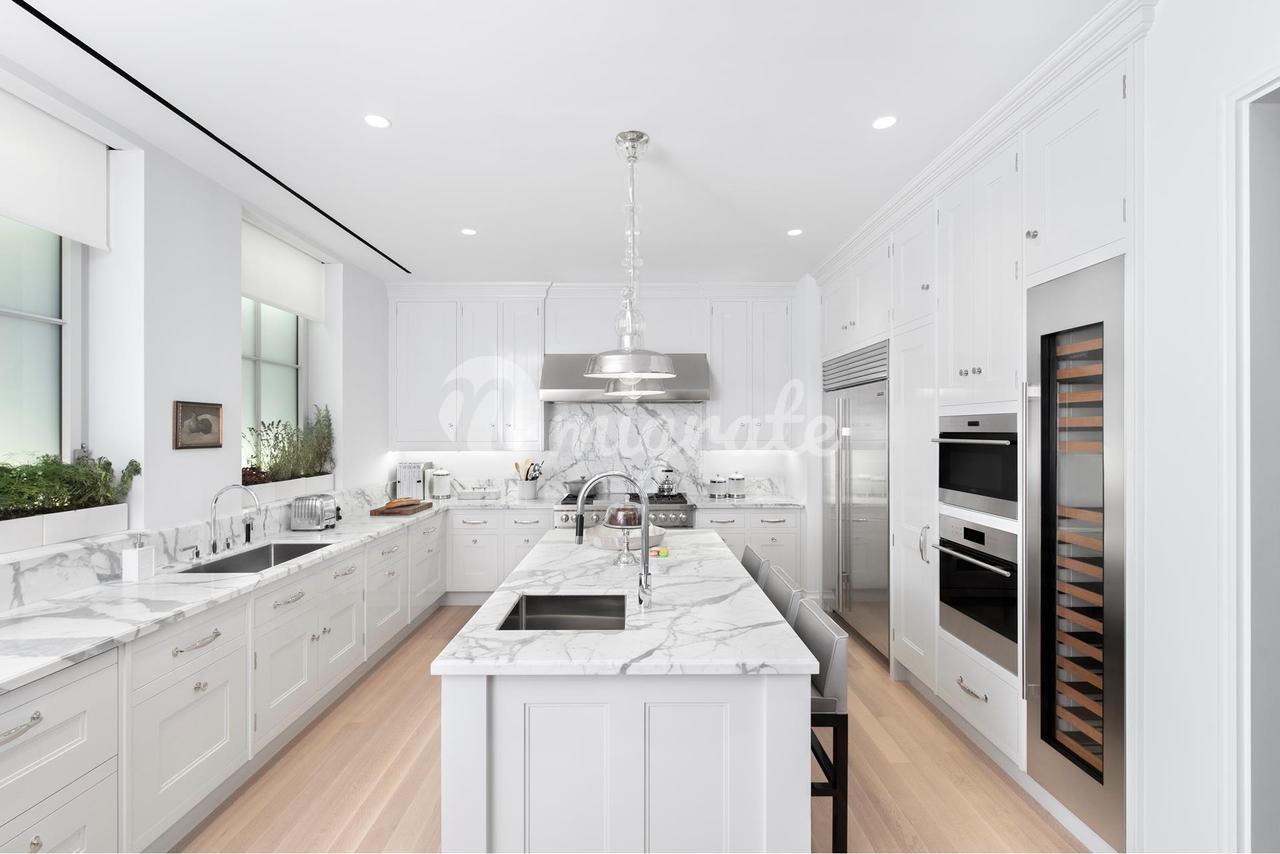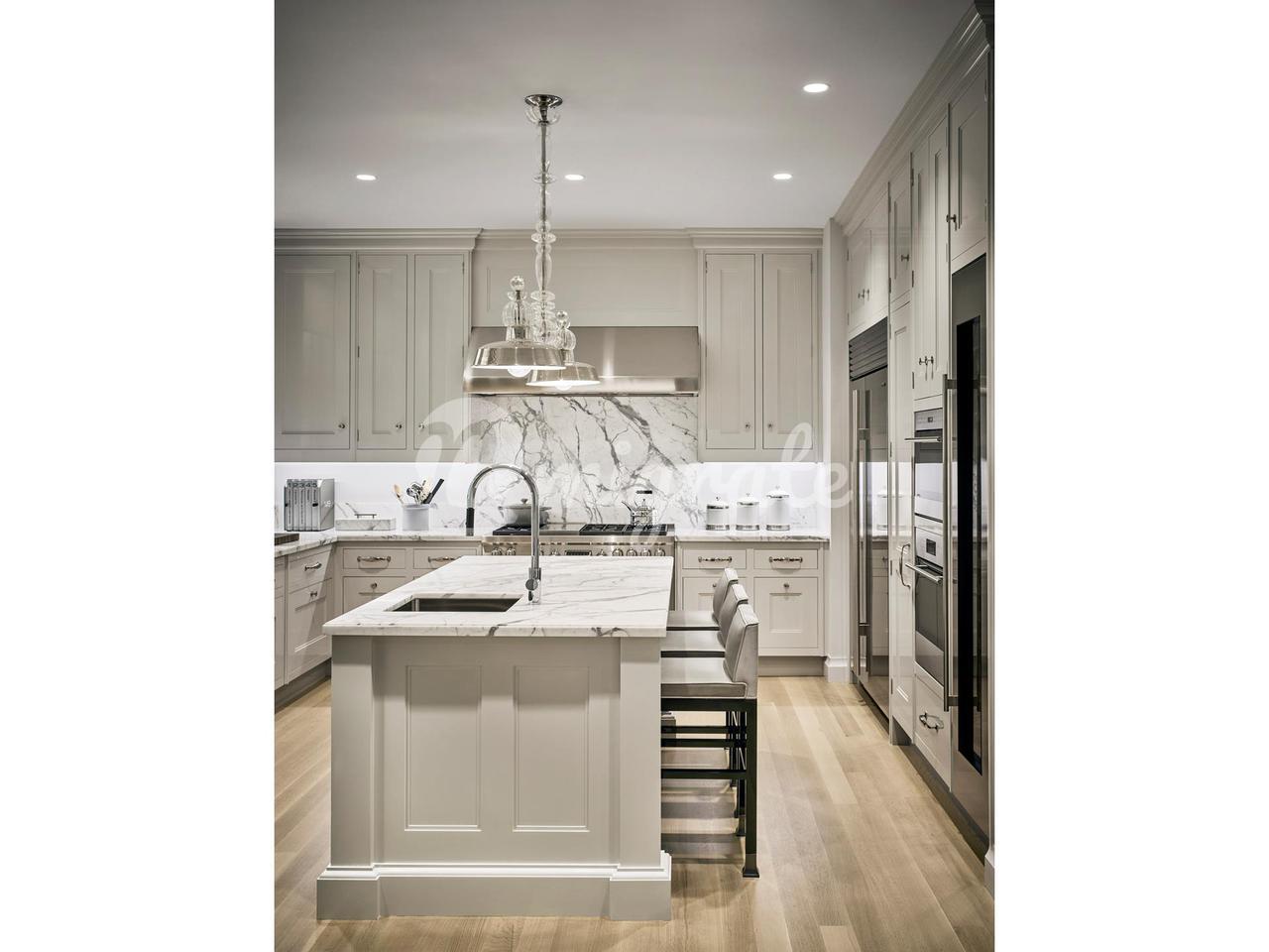Частный лифт ведет в изящное фойе с поразительным полом «елочкой» и примыкающей просторной галереей с окнами, которая ведет вас мимо большой гостиной библиотеки в основные спальные помещения. Фойе ведет в захватывающую дух угловую гостиную с впечатляющим камином, большими окнами с прекрасным видом на юг и запад для оптимального освещения и воздуха, а также прямым выходом на обширную террасу, выходящую на восток, которая соединяет гостиную и главную спальню. Гостиная соединяется с отдельной формальной столовой и кухней с обеденной зоной, спроектированной Кристофером Пикоком. Богато обставленная кухня выделяется просторным залом для завтраков, столешницей и фартуком из скульптурного мрамора, изысканным универсальным набором бытовой техники, включая индивидуальный холодильник Sub-Zero, морозильник, винный холодильник, газовую плиту Wolf с шестью конфорками и сковороду с полностью вентилируемым колпаком, встроенная духовка, микроволновая печь и две посудомоечные машины Miele. Мойка Franke оснащена полированной хромированной фурнитурой Dornbracht и мусоросборником Insinkerator.