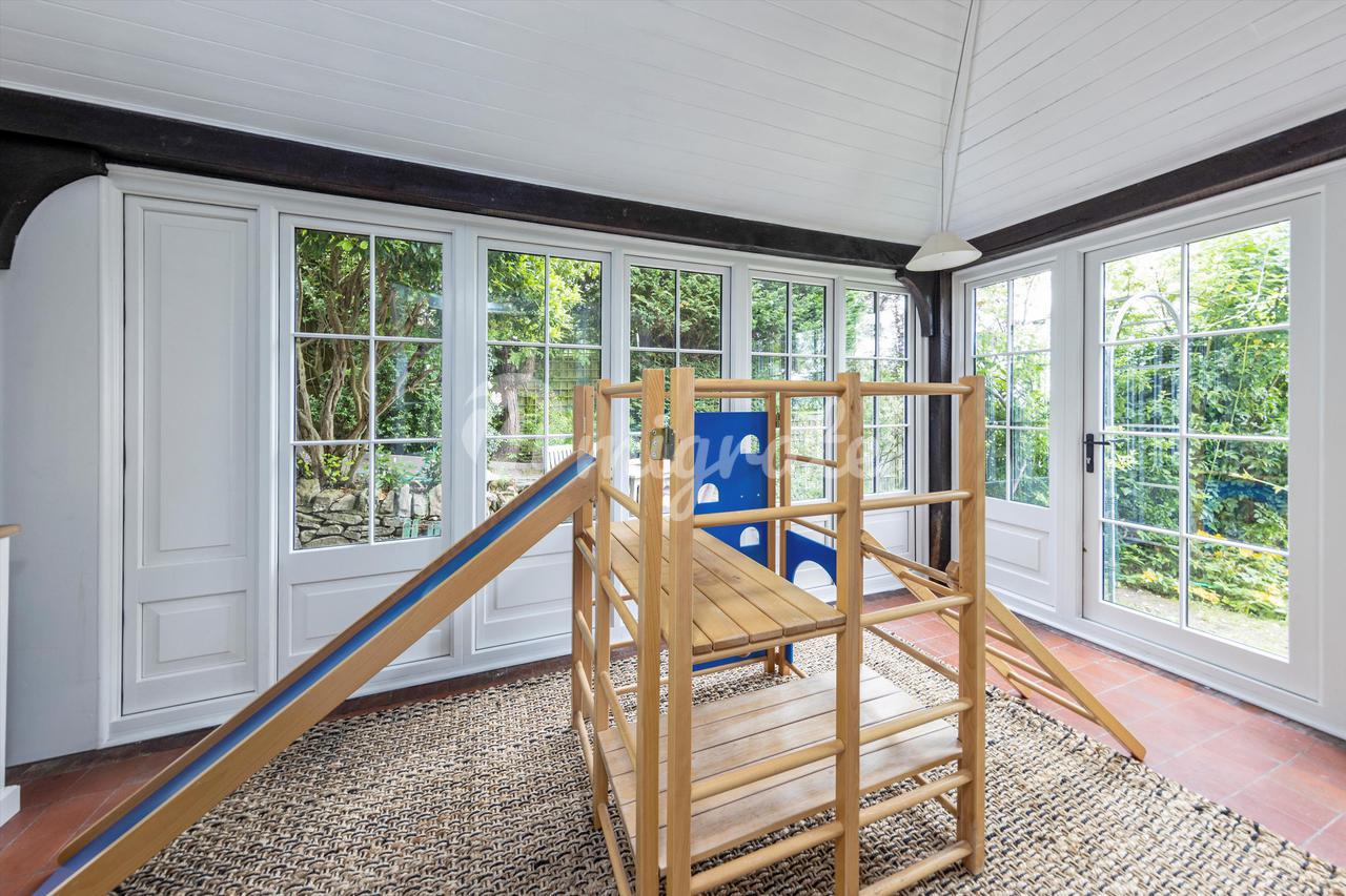В доме были проведены обширные работы, включая большую заднюю пристройку двойной высоты, чтобы создать впечатляющую кухонную зону, которая перетекает в столовую. На первом этаже пристройка создала замечательную главную спальню с ванной комнатой и гардеробной.
