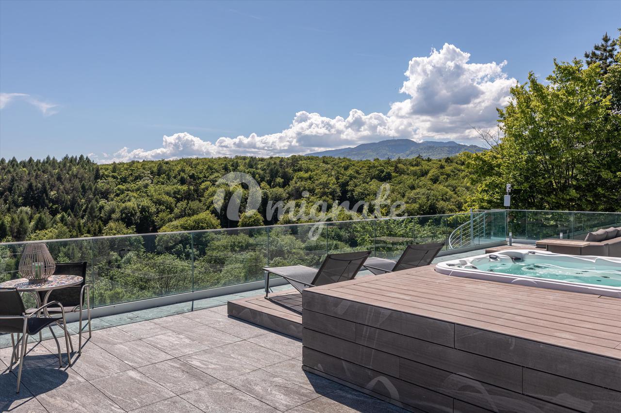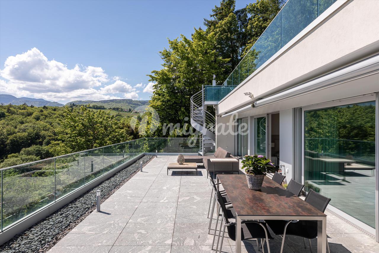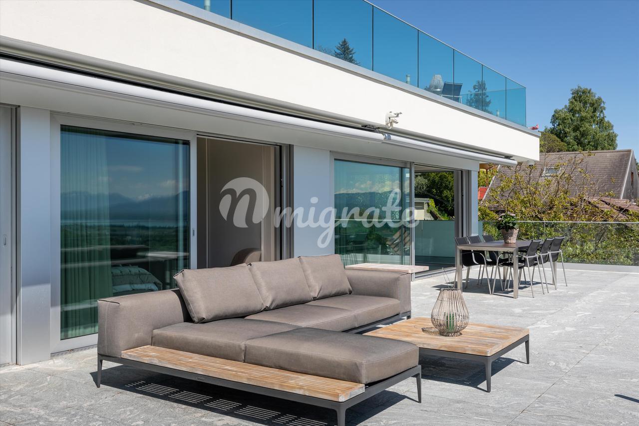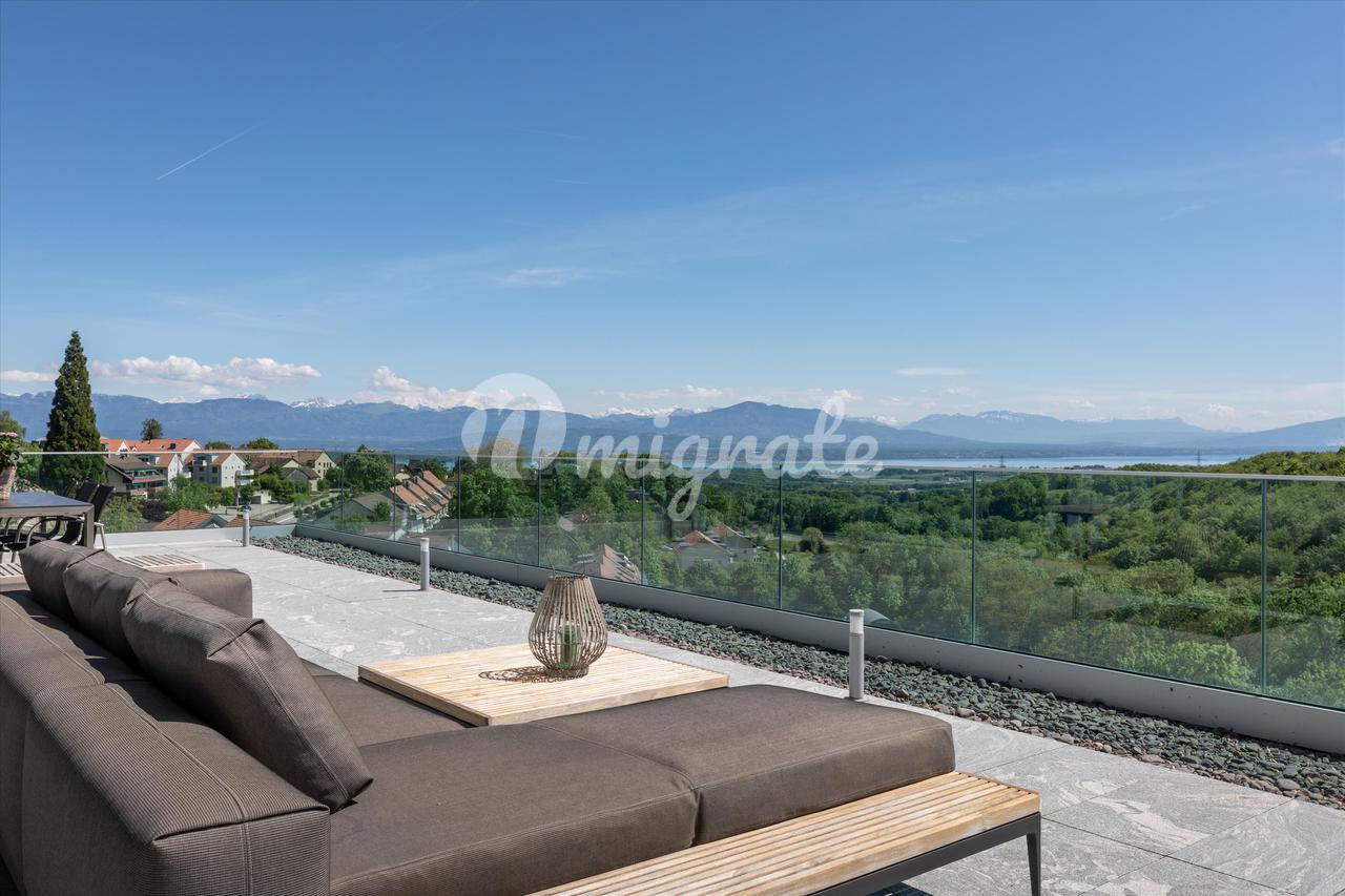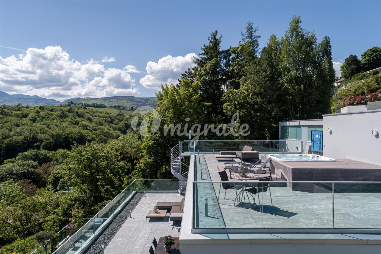 Построенный в 2015 году, он предлагает уникальную жилую среду с видом на озеро. Этот пентхаус площадью более 140 кв. м был спроектирован таким образом, чтобы можно было в полной мере насладиться красотой ландшафта, в частности его отличной ориентацией. На террасах общей площадью 220 кв. м есть джакузи, позволяющие насладиться моментом отдыха с видом на Женевское озеро и Монблан.