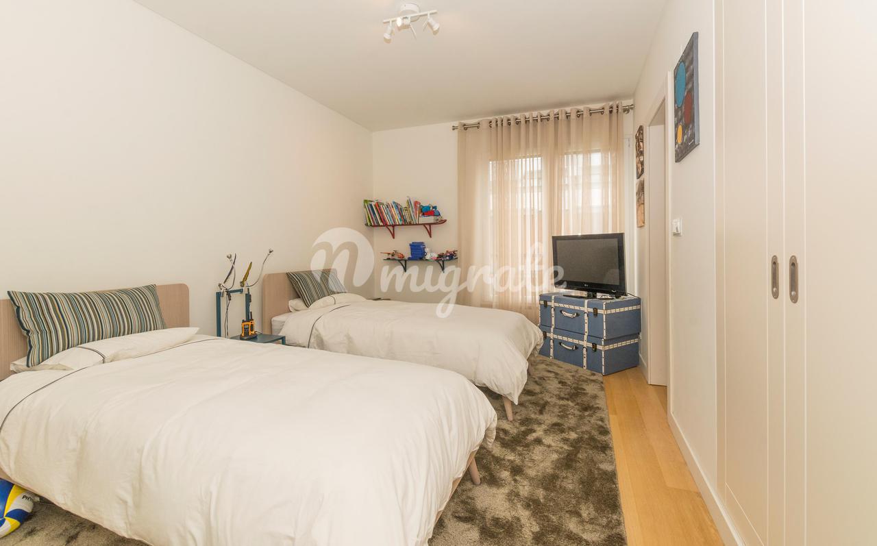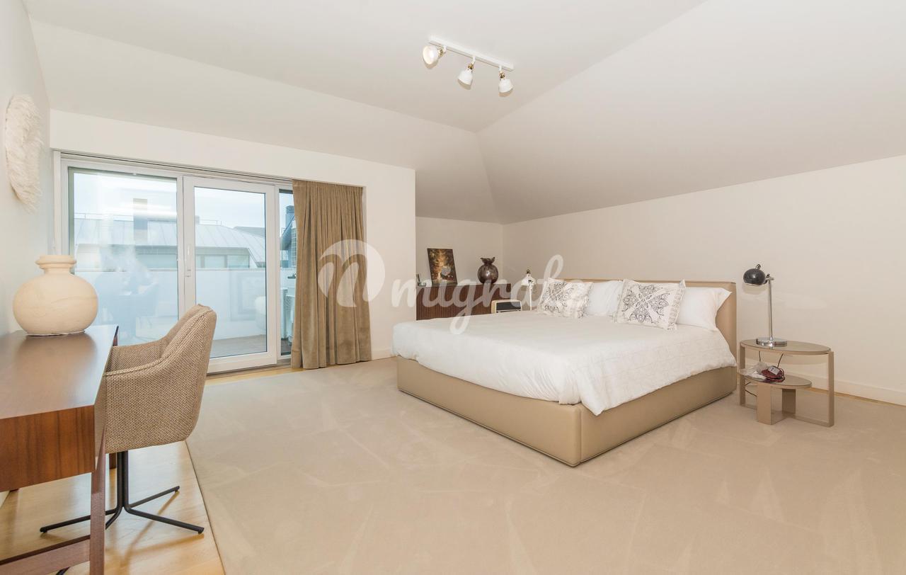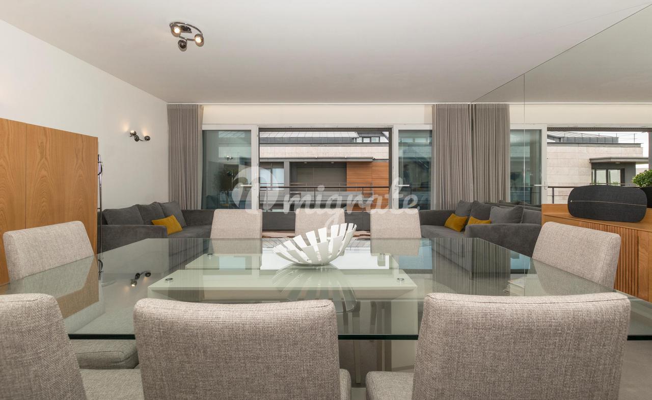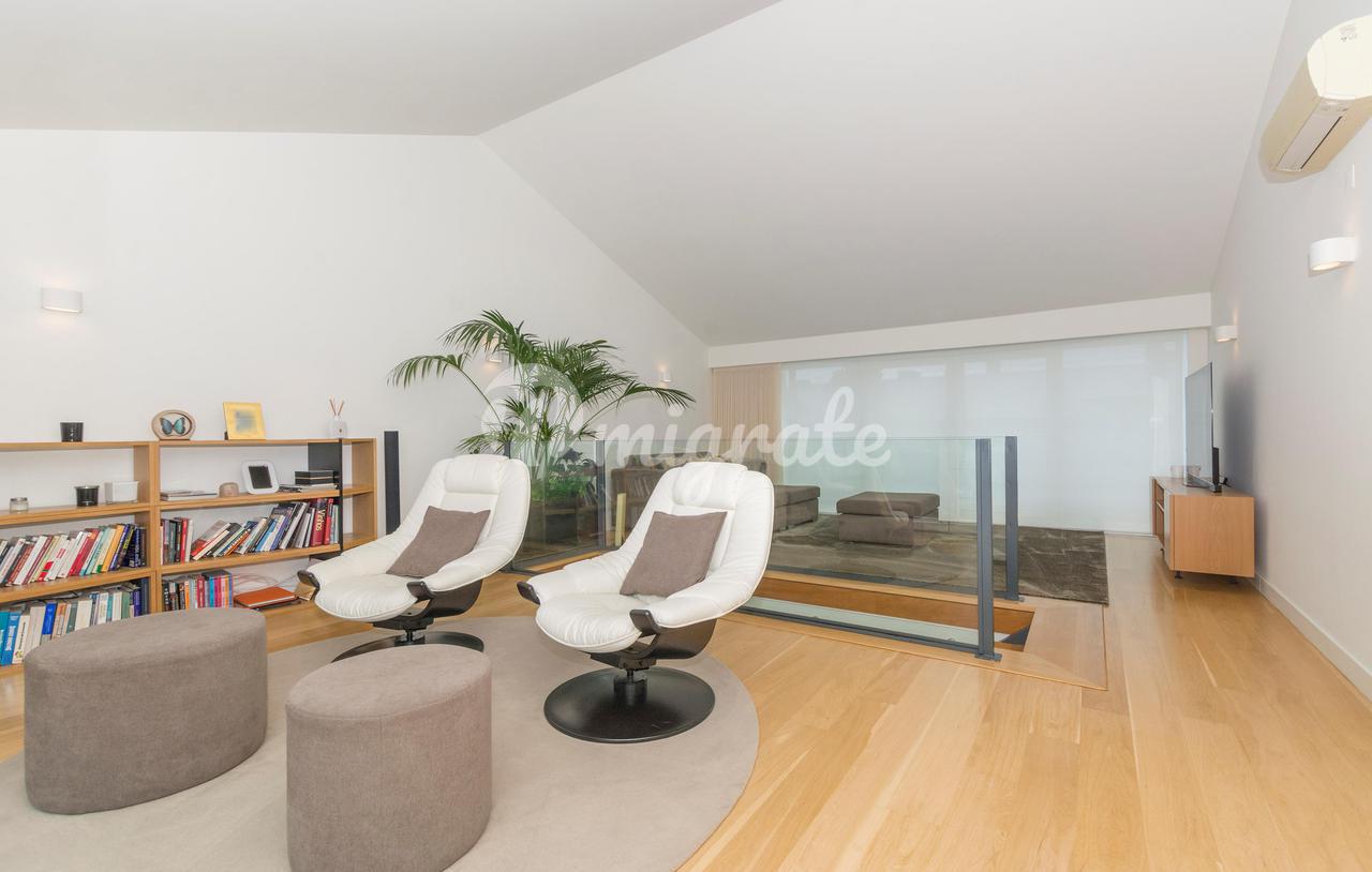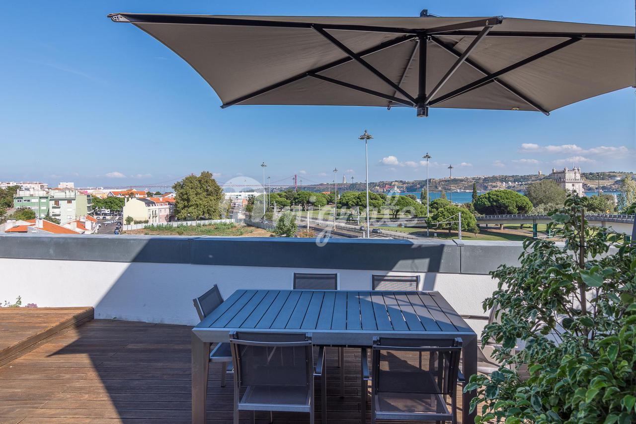 Эти двухуровневые апартаменты площадью 239 кв.м расположены в современном кондоминиуме с садами и бассейном и отличаются полным комфортом благодаря внутренней отделке. Из апартаментов открывается вид на реку Тежу и исторические районы города. В них царит тихая и расслабляющая атмосфера. Первый этаж состоит из прихожей, просторной гостиной с балконом, полностью оборудованной кухни, коридора для спальни, двух спальных люксов со смежными ванными комнатами и одной со шкафом, а также отдельной гостевой ванной комнаты.