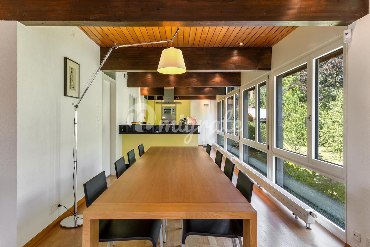Верхний цокольный этаж дома состоит из прихожей с гардеробной, гостиной с кухней дровяная печь и выход на улицу. В доме есть три спальни, ванная комната, технические помещения, подсобное помещение, подвал и гараж.