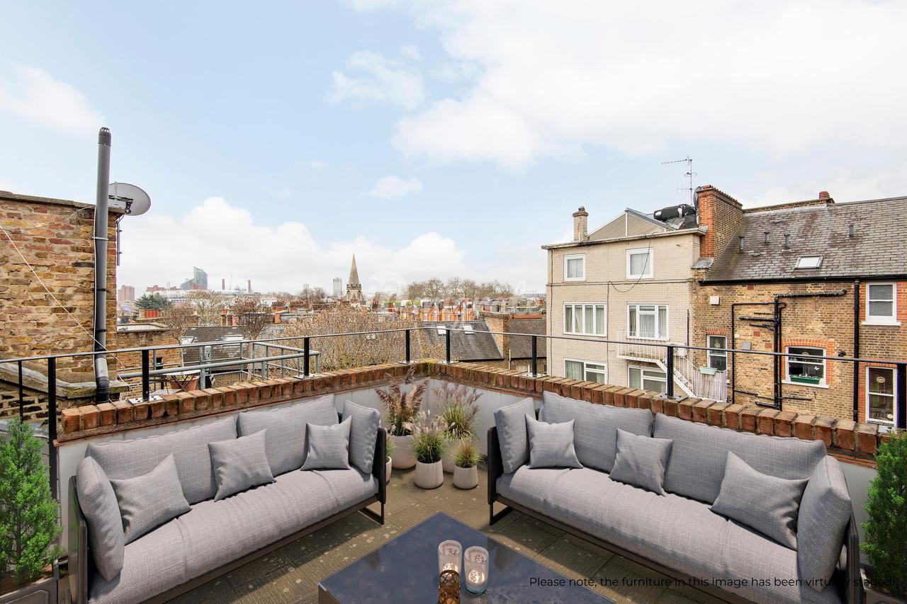 Восхитительные двухуровневые апартаменты с тремя / четырьмя спальнями и тремя ванными комнатами, расположенные на третьем и четвертом этажах красивого викторианского здания с незаконченной террасой на крыше с панорамным видом на Лондон.