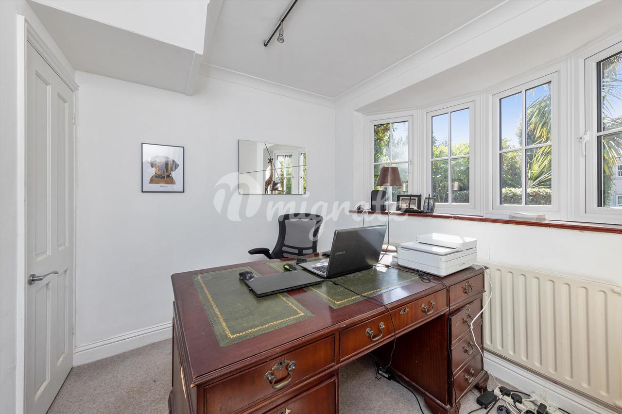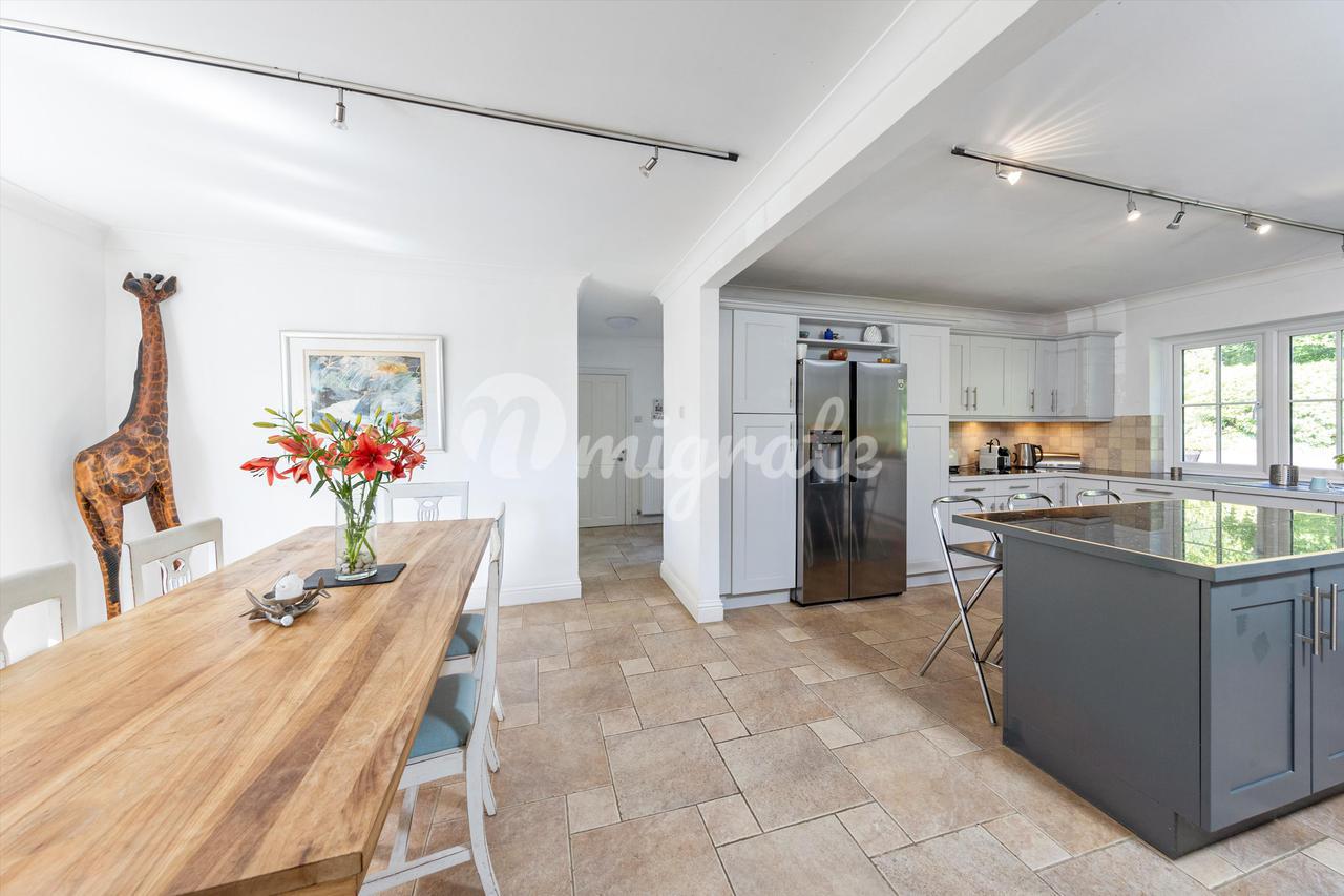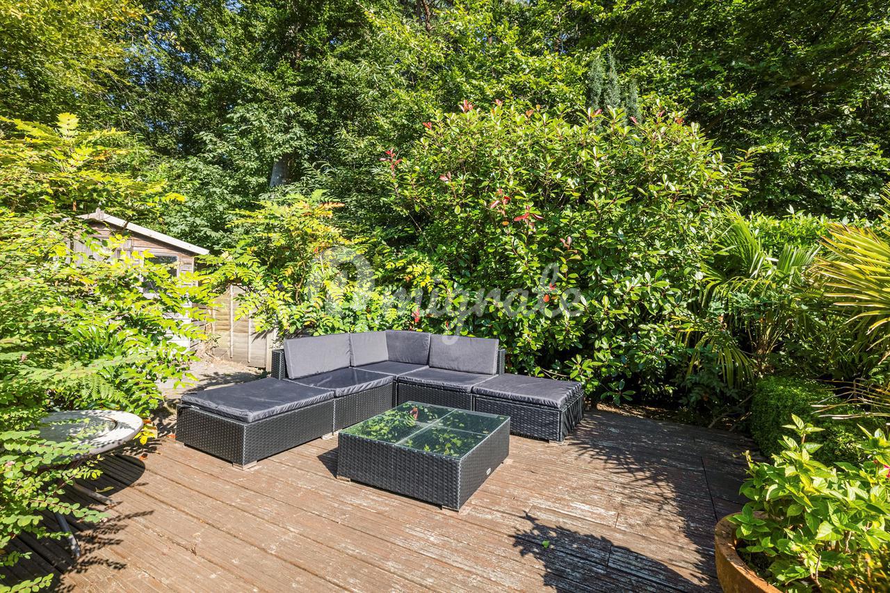 Существует большой внутренний дворик, который проходит через заднюю часть дома и вокруг открытого бассейна, а также приподнятую террасу. Сад невероятно уединенный и выходит на Оксшотт Вудс и пешеходные дорожки вокруг него. Сады хорошо благоустроены со зрелой живой изгородью и границами.