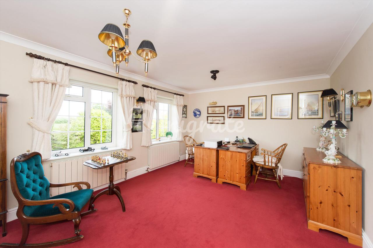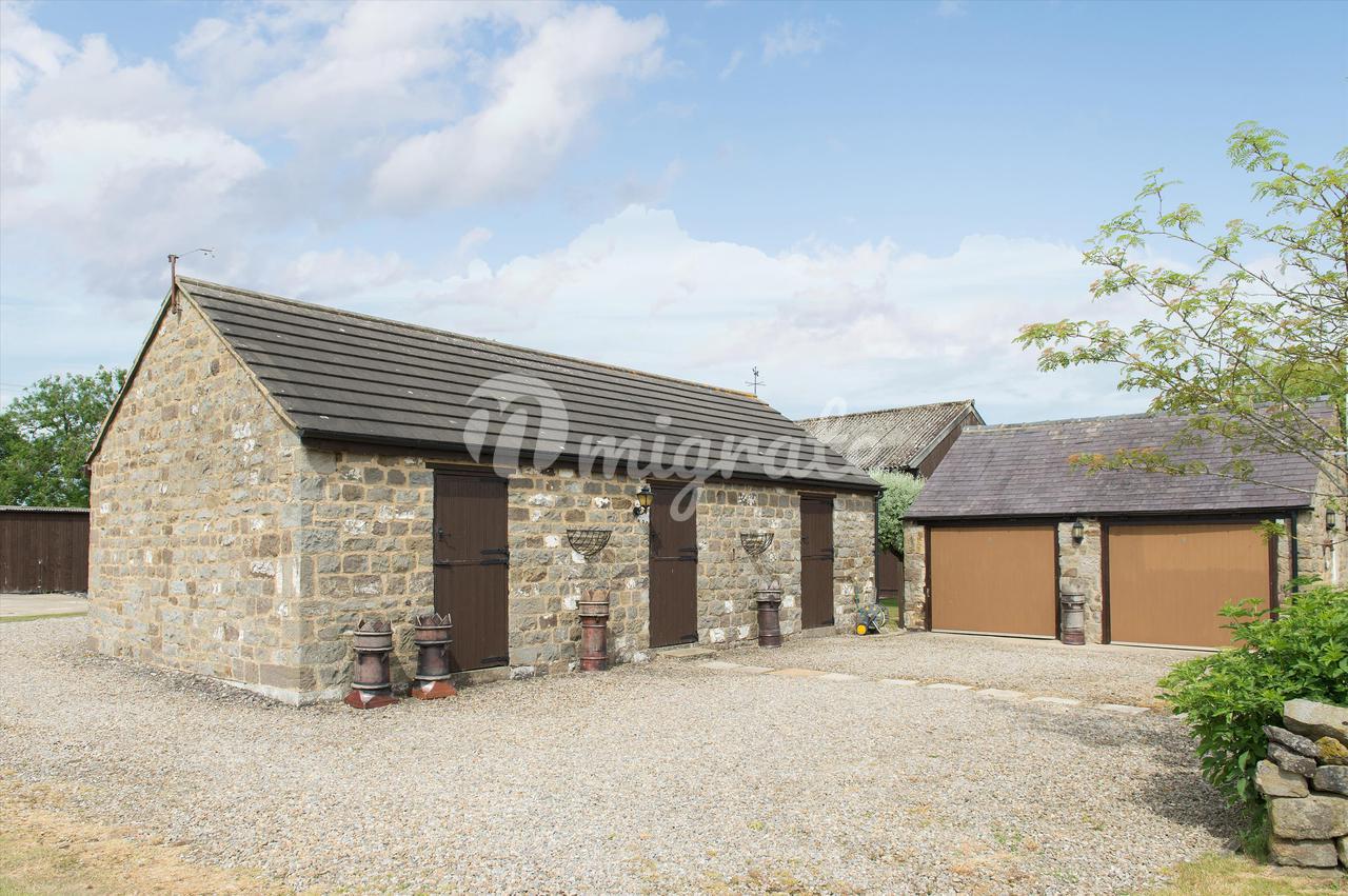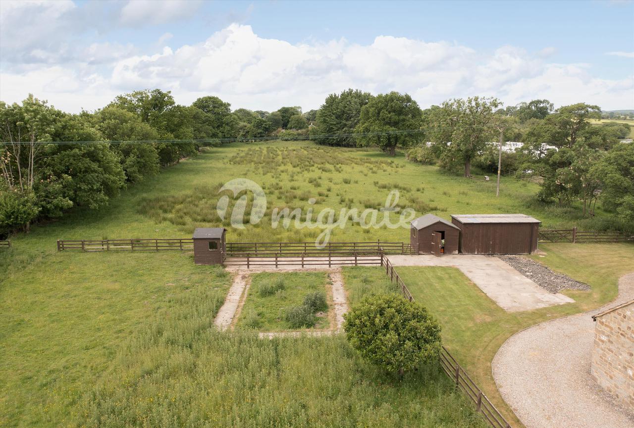 Электрические ворота открываются на частную подъездную дорожку и ведут к просторной покрытой гравием парковке для большого количества автомобилей, гаражу на две машины и большому гаражу на четыре машины с антресольным этажом. Большие сады и территория полностью окружают собственность, в основном газоны, с бордюрами, прудом с дикой природой и идеально расположенным патио - фантастическое место для развлечений. Общая площадь участка составляет 3,53 акра, включая полностью огороженный травяной загон, который подходит для тех, кто занимается верховой ездой, или идеально подходит для выпаса скота. К задней части собственности наряду с гаражом и стоянкой сарая многочисленные хозяйственные постройки/мастерские.