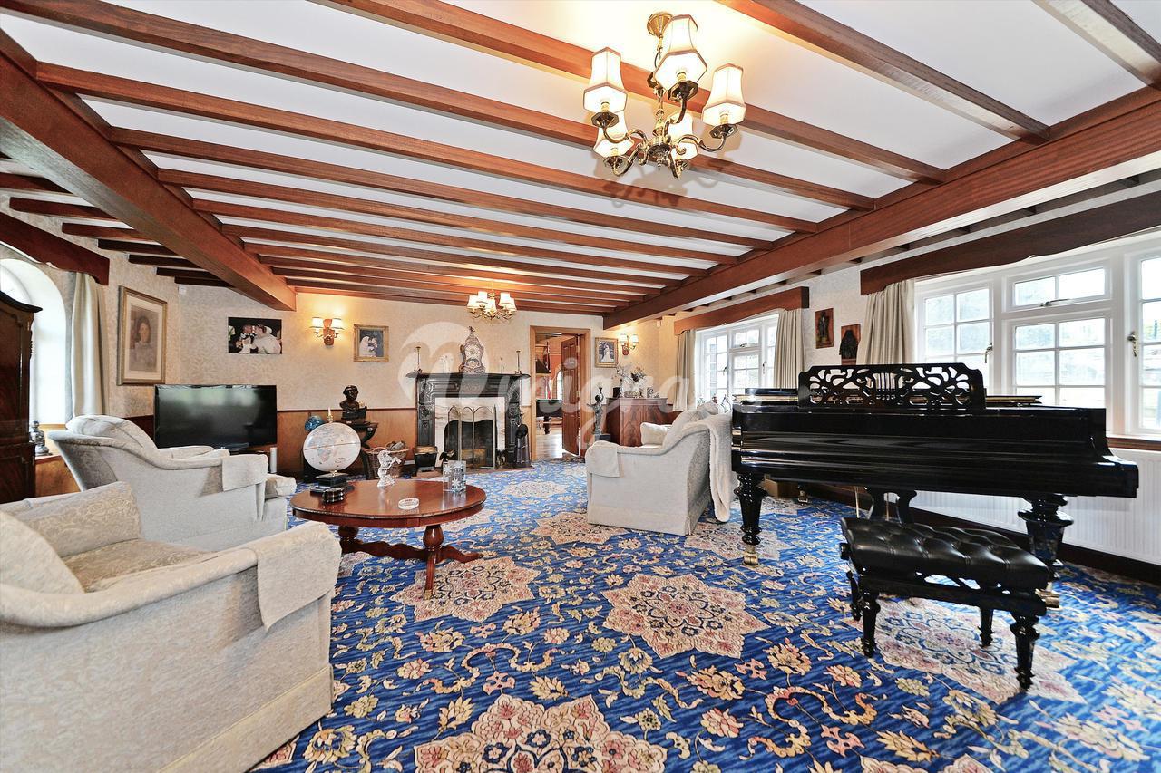 Большая гостиная также имеет двойной вид с видом на передний и задний сады. Это прекрасное пространство, разделяющее двусторонний открытый камин с залом для приемов, идеально подходит для отдыха.