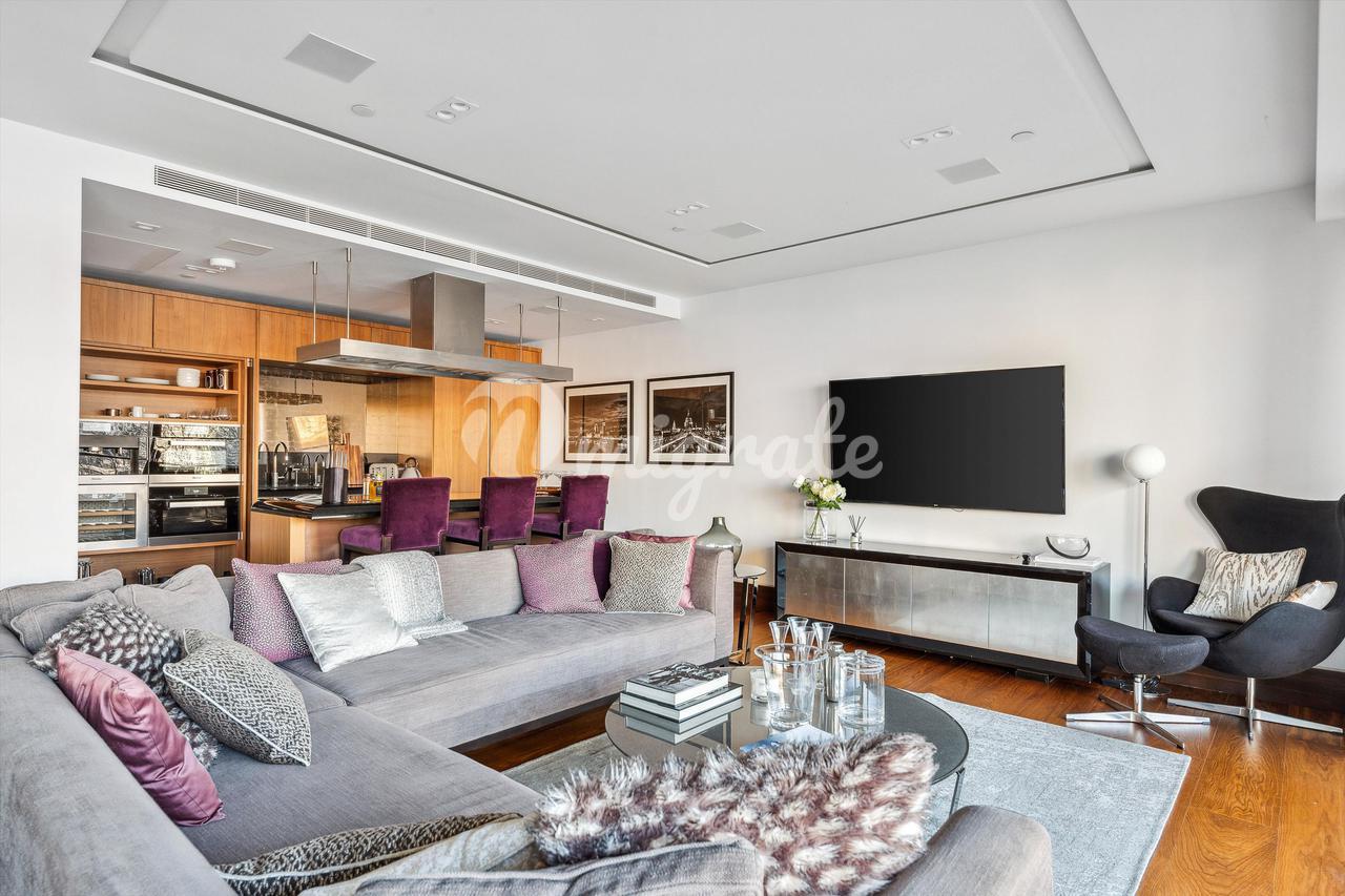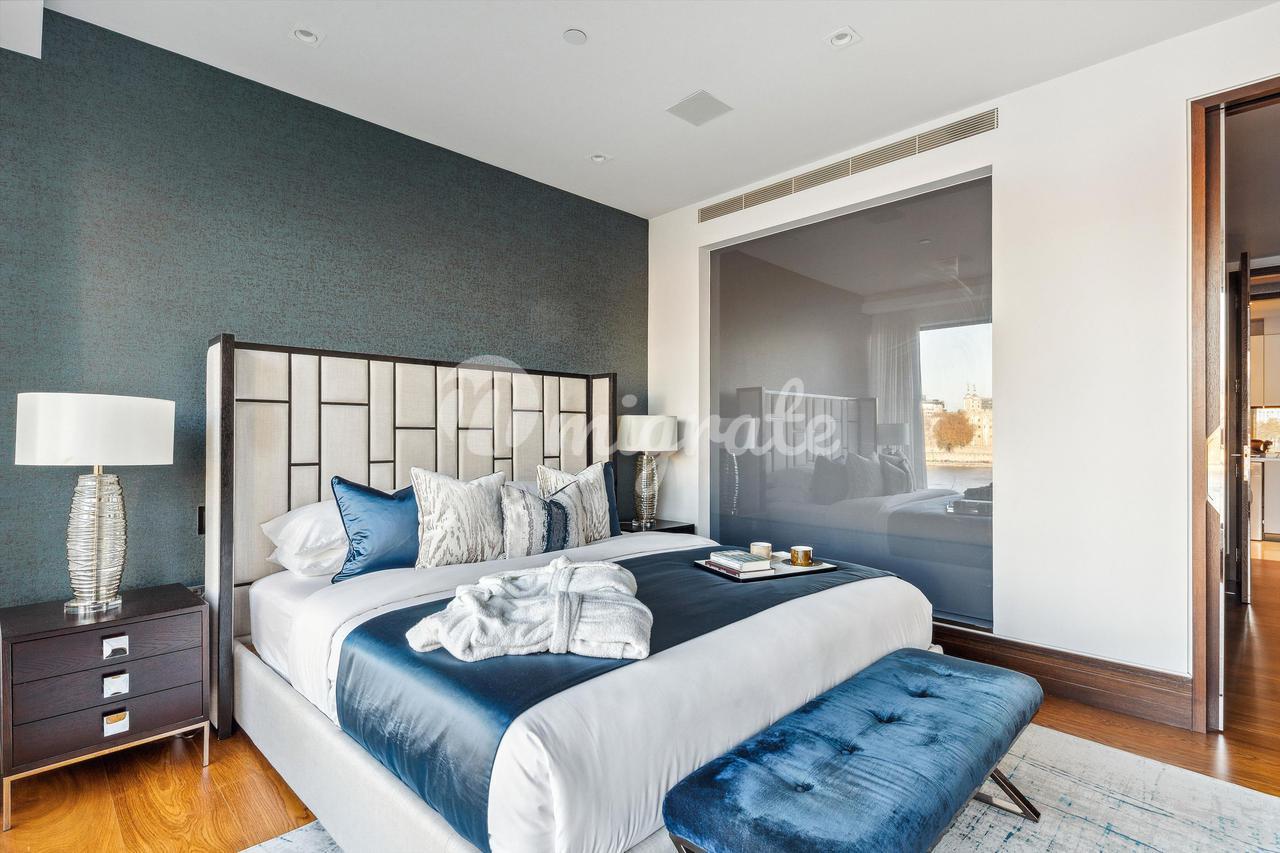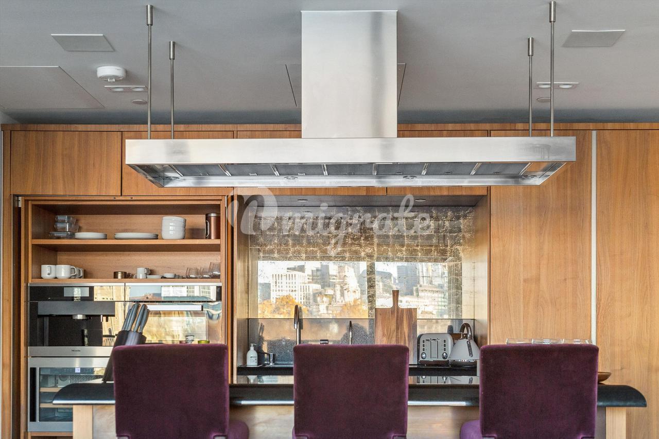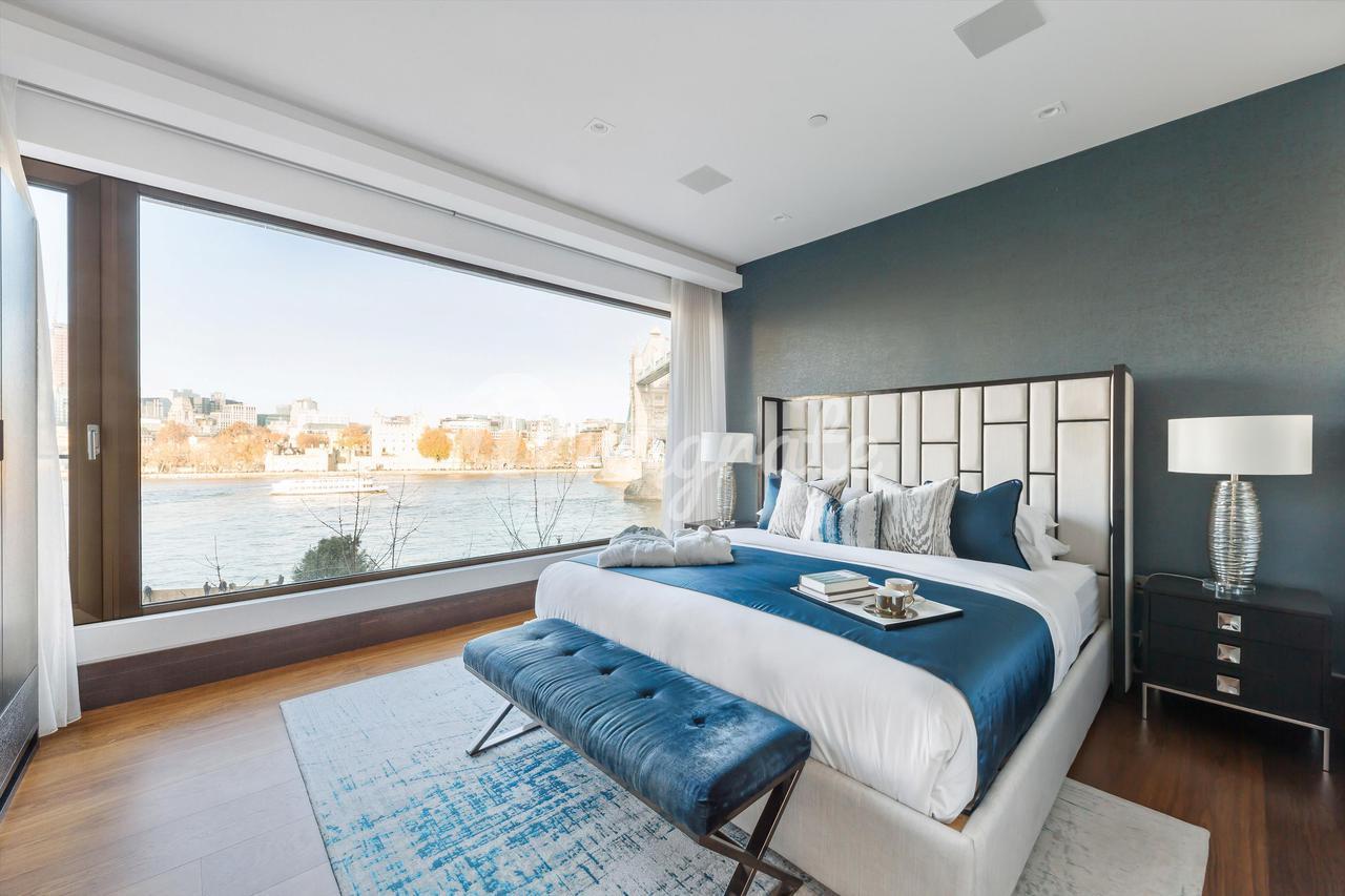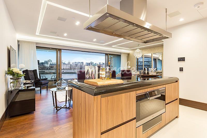 В квартире есть просторная приемная с окнами от пола до потолка, которые ведут на балкон, который тянется по всей длине приемной, откуда открывается непрерывный вид на реку, Лондонский Тауэр, Тауэрский мост и городской пейзаж. Кухня с высокими техническими характеристиками оснащена большим выбором встроенных шкафов и бытовой техники.