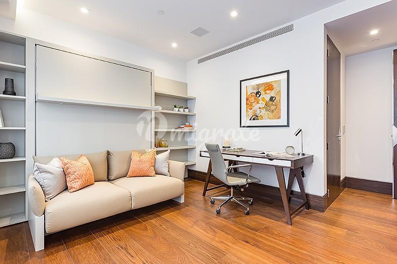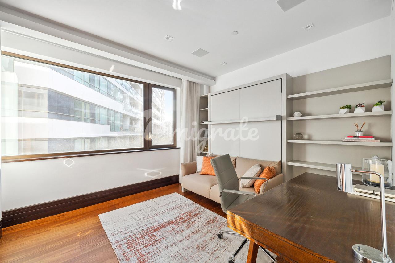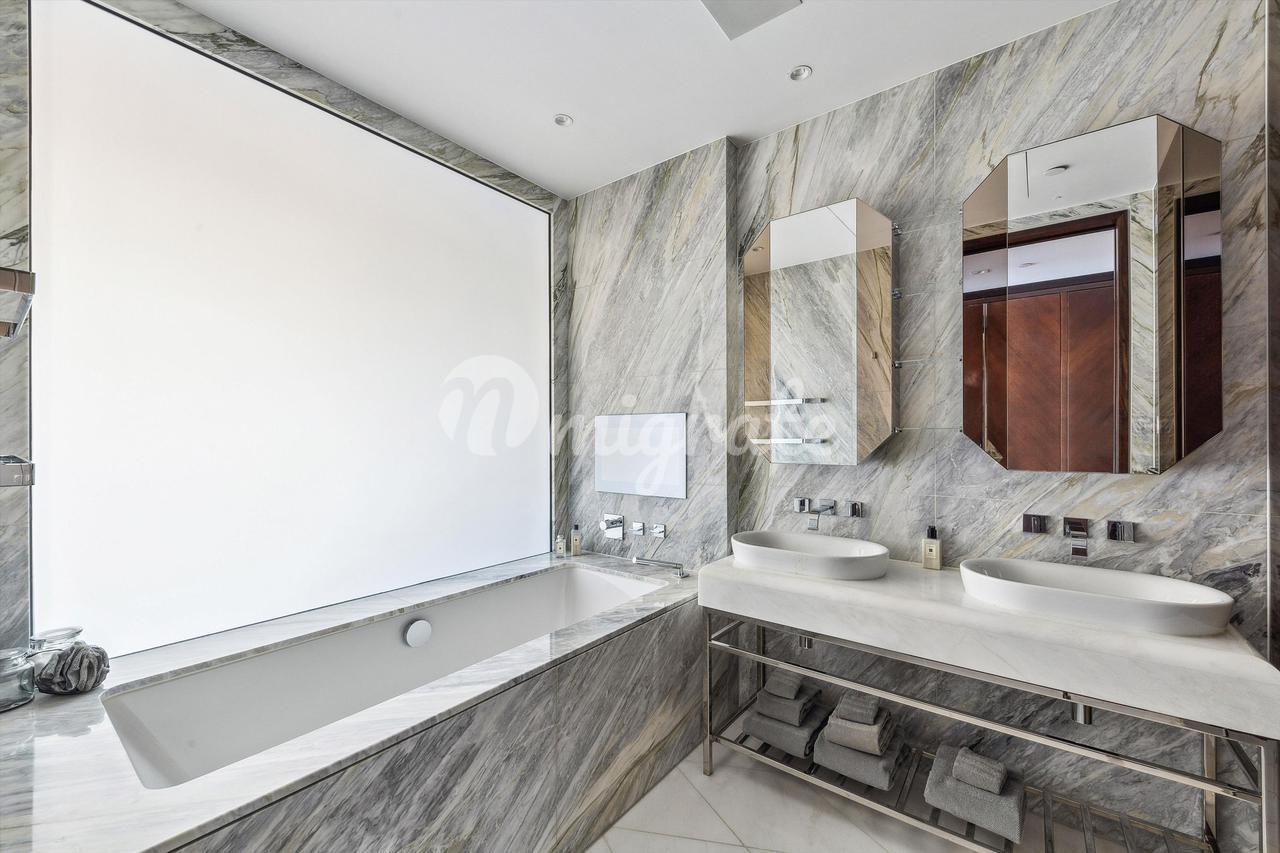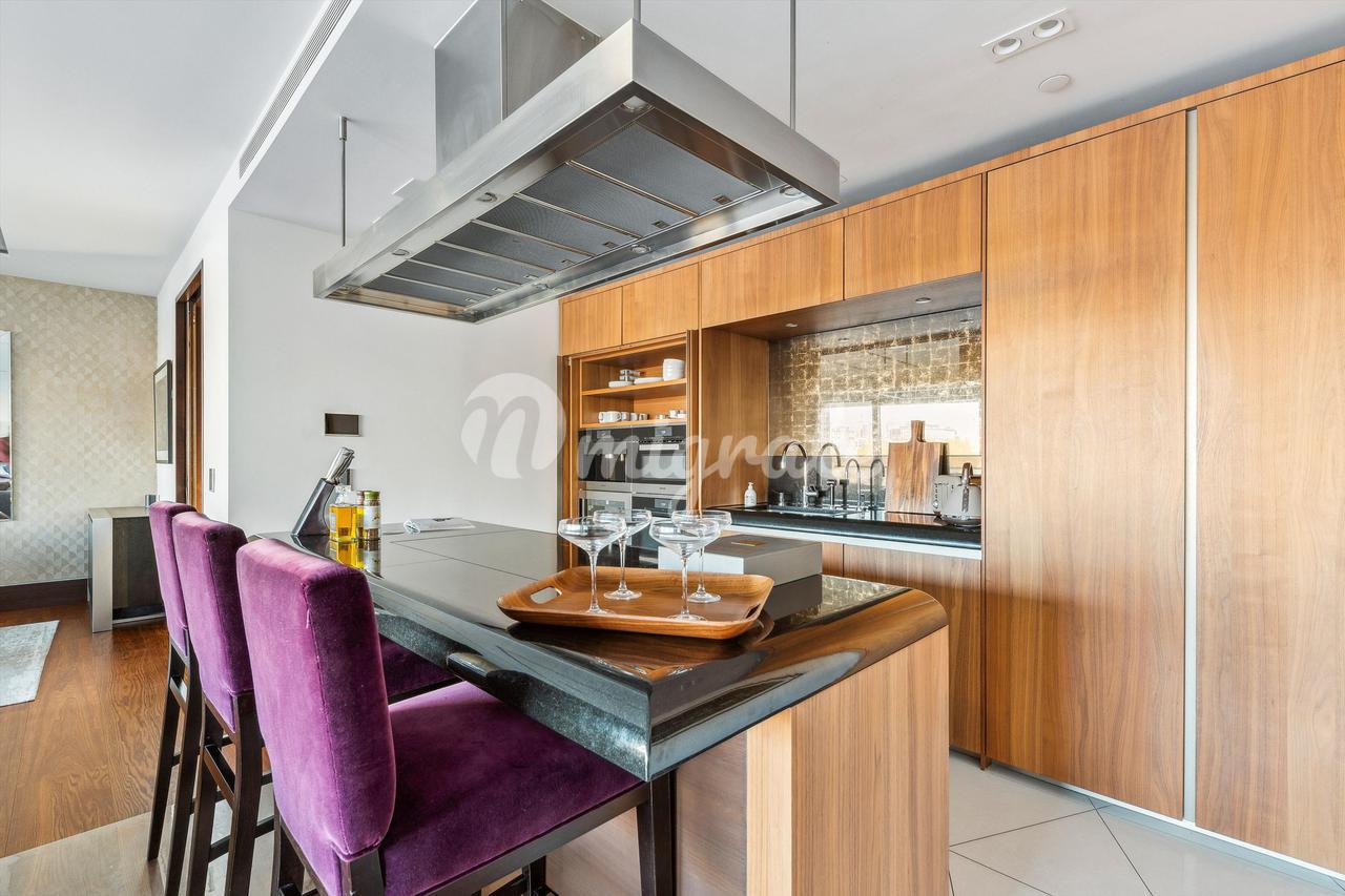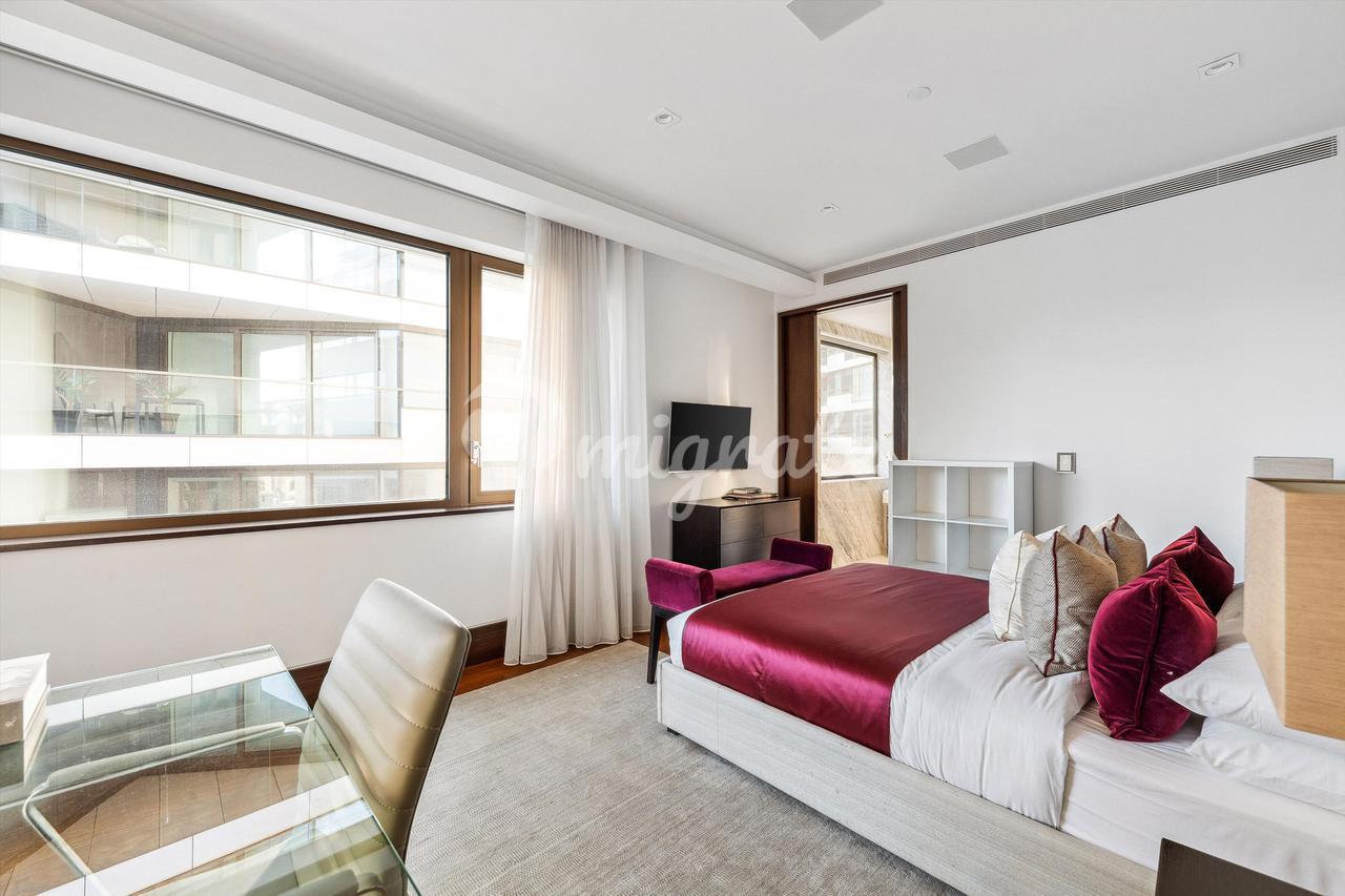 В квартире есть просторная приемная с окнами от пола до потолка, которые ведут на балкон, который тянется по всей длине приемной, откуда открывается непрерывный вид на реку, Лондонский Тауэр, Тауэрский мост и городской пейзаж. Кухня с высокими техническими характеристиками оснащена большим выбором встроенных шкафов и бытовой техники.