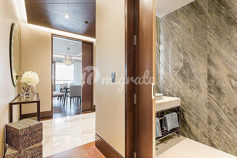 Дополнительные преимущества включают отдельную гардеробную для гостей, подсобное помещение и одно охраняемое парковочное место на подземной автостоянке.