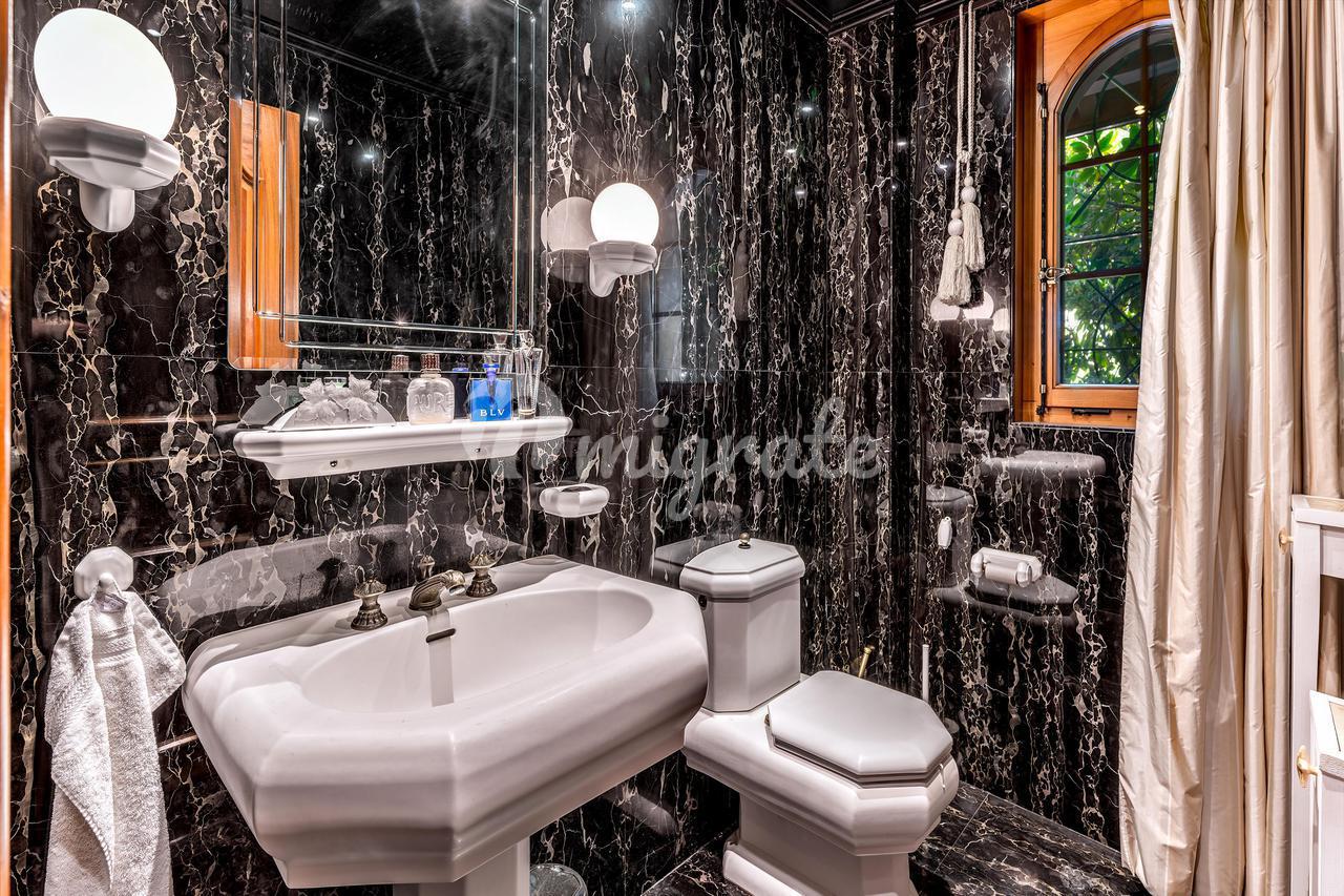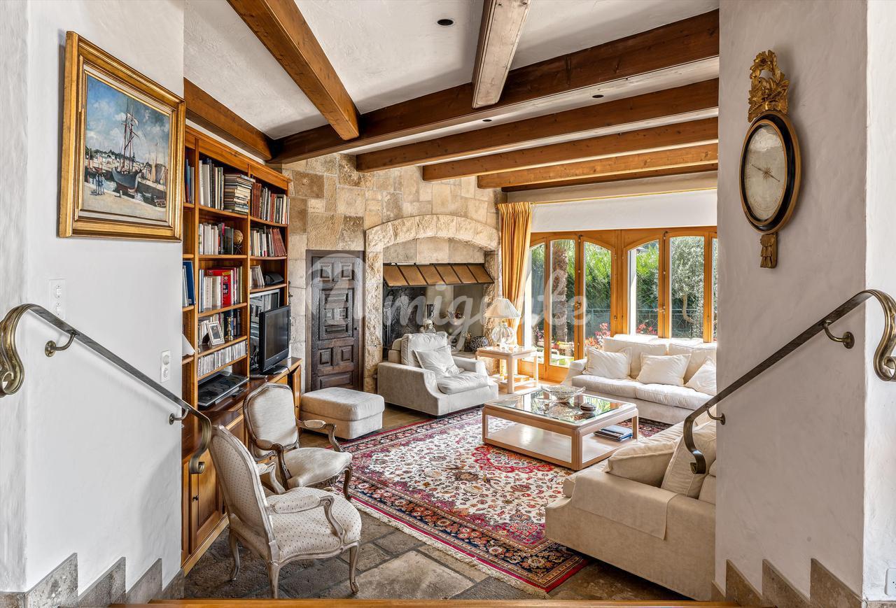 Этот дом построен на четырех уровнях. На первом этаже находится большая прихожая, две гостиные, в одной из которых есть камин, большая терраса, обеденная зона и полностью оборудованная кухня с центральным островом и прямым выходом на небольшую террасу. Существует также холодильная камера, винный погреб, ванная комната и спальня для гостей.