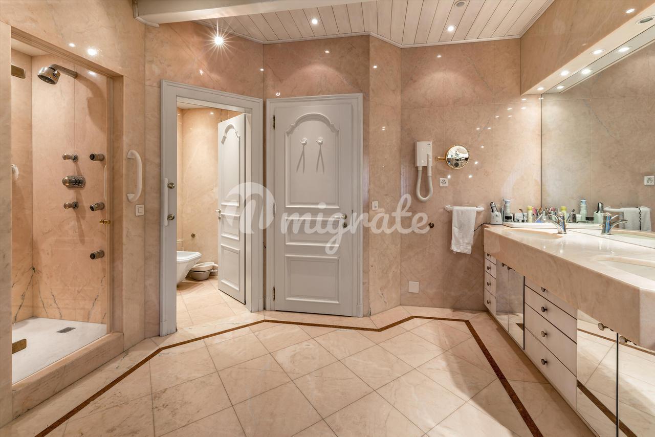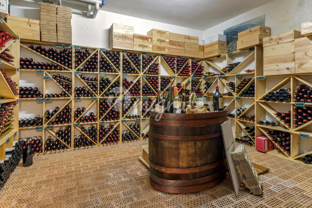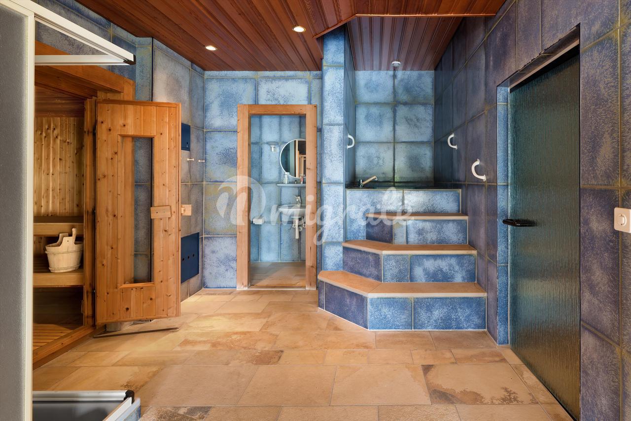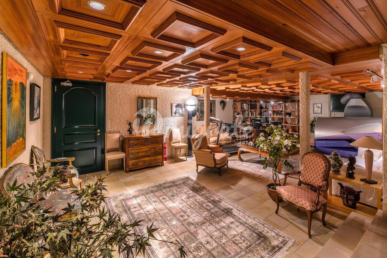 Наконец, на цокольном этаже находится оборудованный спа-центр, убежище для гражданской обороны, винный погреб с кондиционером, подсобное помещение и техническое помещение для бассейна. Существует также второй цокольный этаж, состоящий из крытого пейзажного бассейна с подогревом, небольшой кухни, ванной комнаты, ванны с холодной водой, сауны, джакузи и туалета.