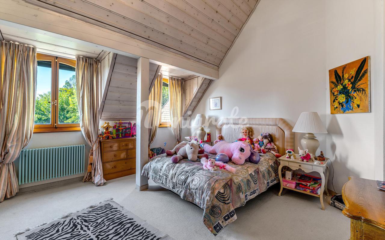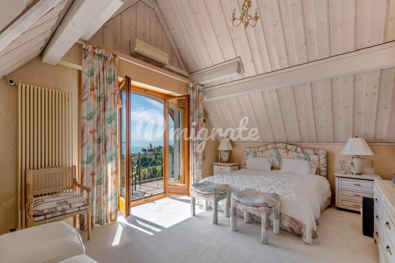 Это свойство имеет около 500 кв. м жилой площади, в уникальном месте, с захватывающим видом на озеро, горы и замок Блоне.