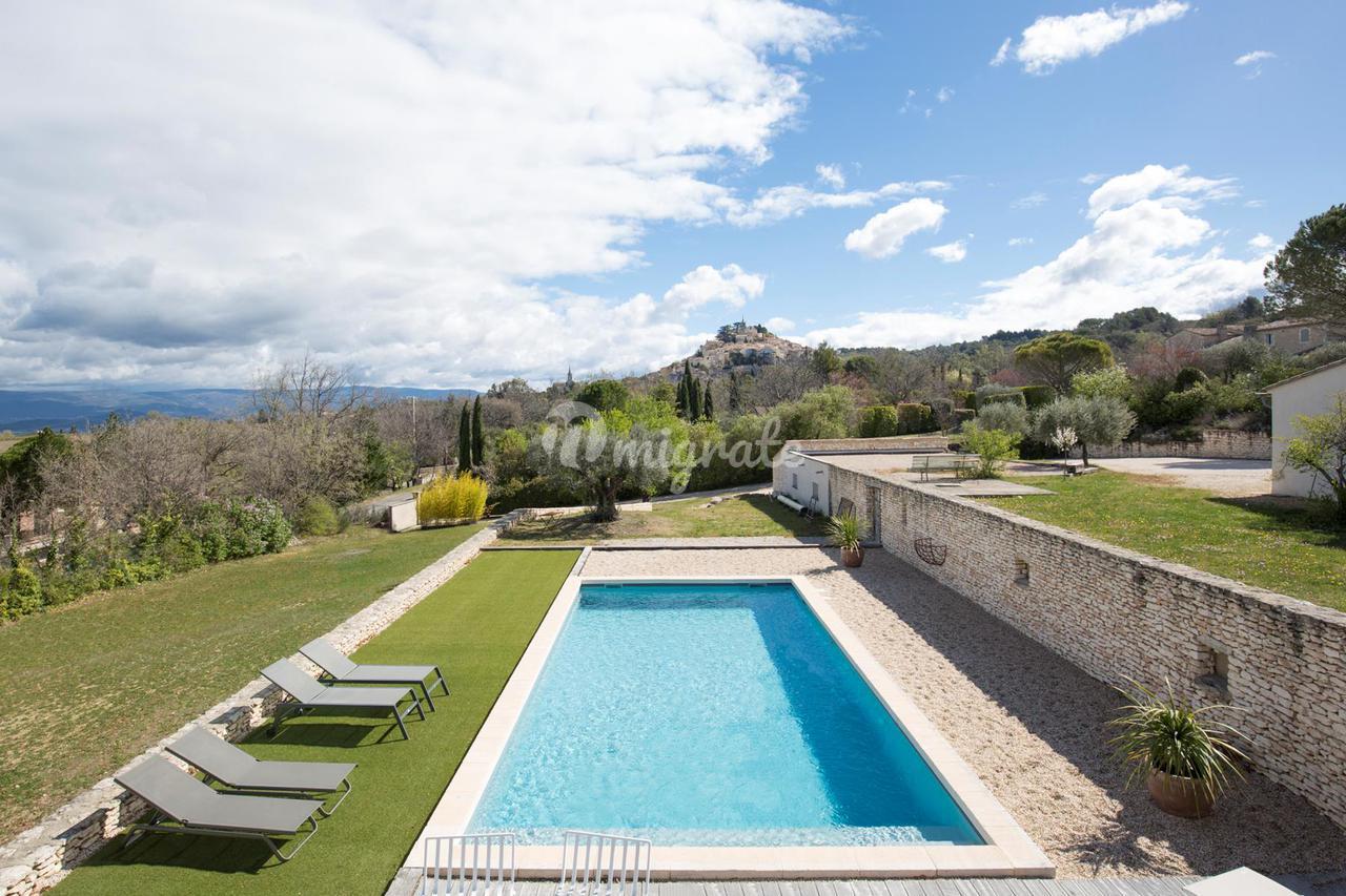 Здесь, на возвышенности, откуда открывается 180-градусный вид на Лакост, Мон-Ванту и деревню Бонне, есть терраса, хлорированный бассейн с подогревом и автоматическим регулятором PH, площадка для игры в петанк и восхитительный сад с прекрасными оливковыми деревьями.