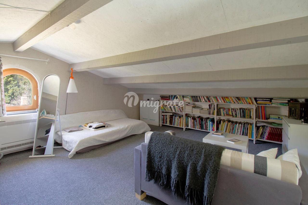 С одной стороны дома находится помещение, в настоящее время служащее тренажерным залом, с оранжереей в задней части. Войдя, вы обнаружите прекрасную, светлую столовую с видом на оборудованную кухню открытой планировки площадью 17 кв.м. с подсобным помещением. На этом этаже дома также находится уютная гостиная со встроенным камином, красивая главная спальня с гардеробной и ванной комнатой, еще две спальни, ванная комната и отдельный туалет. Затем лестница ведет в мезонин, который можно использовать как кабинет или небольшую гостиную с видом на колокольню церкви Бонне через окно "яблочко". Рядом с мезонином находится спальня в мансарде с окном Velux; эта комната соединена с кладовой ок. площадь 15 кв.м.