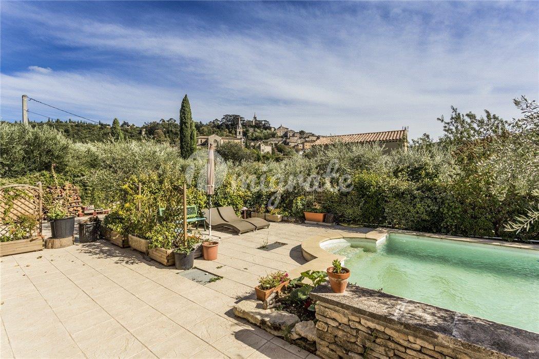 Эта прекрасная вилла находится в нескольких минутах ходьбы от деревни. Из нее открывается великолепный вид на Люберон и деревни Бонье и Лакост. В саду есть бассейн и несколько террас, одна из которых крытая.