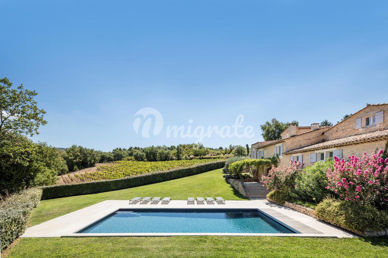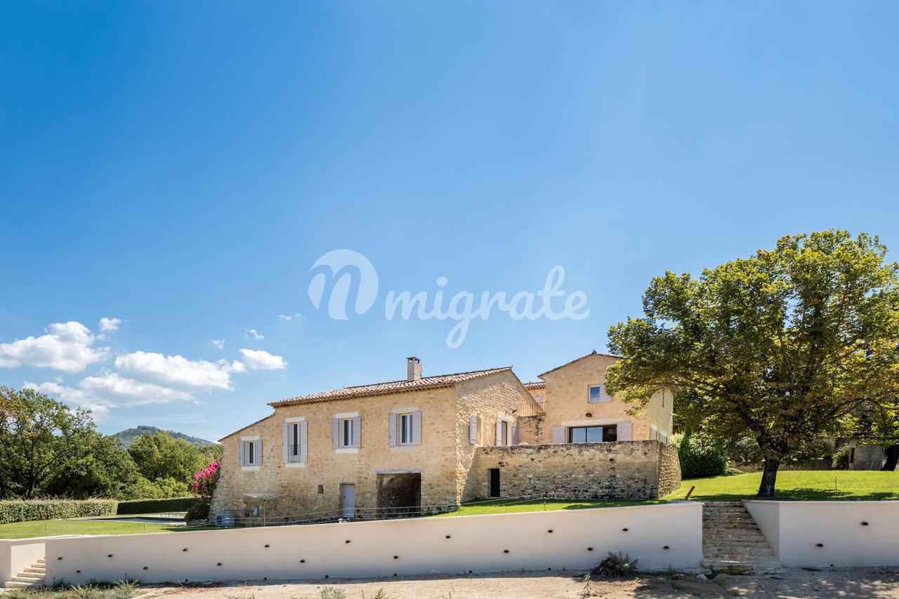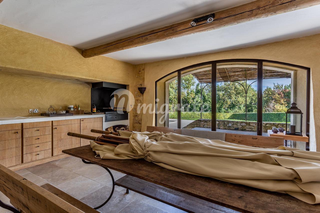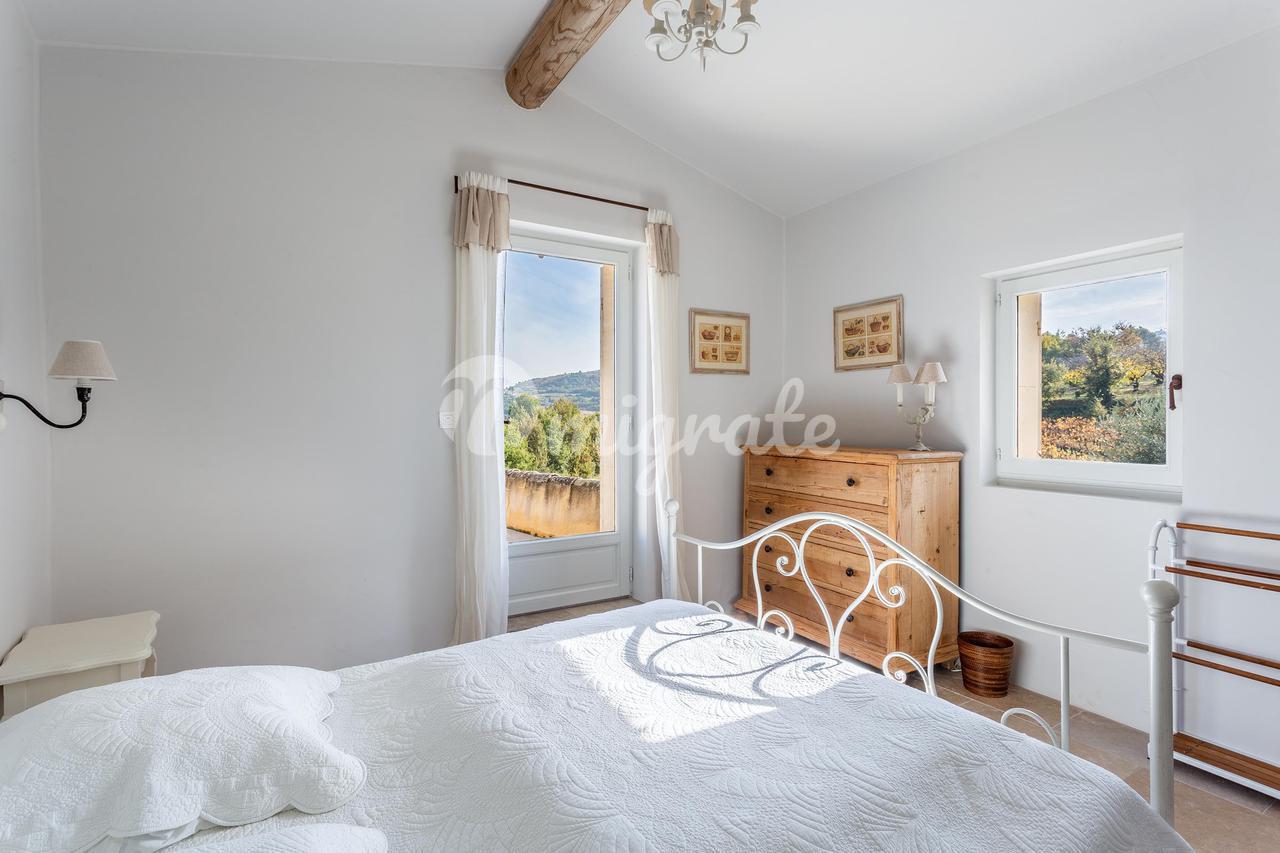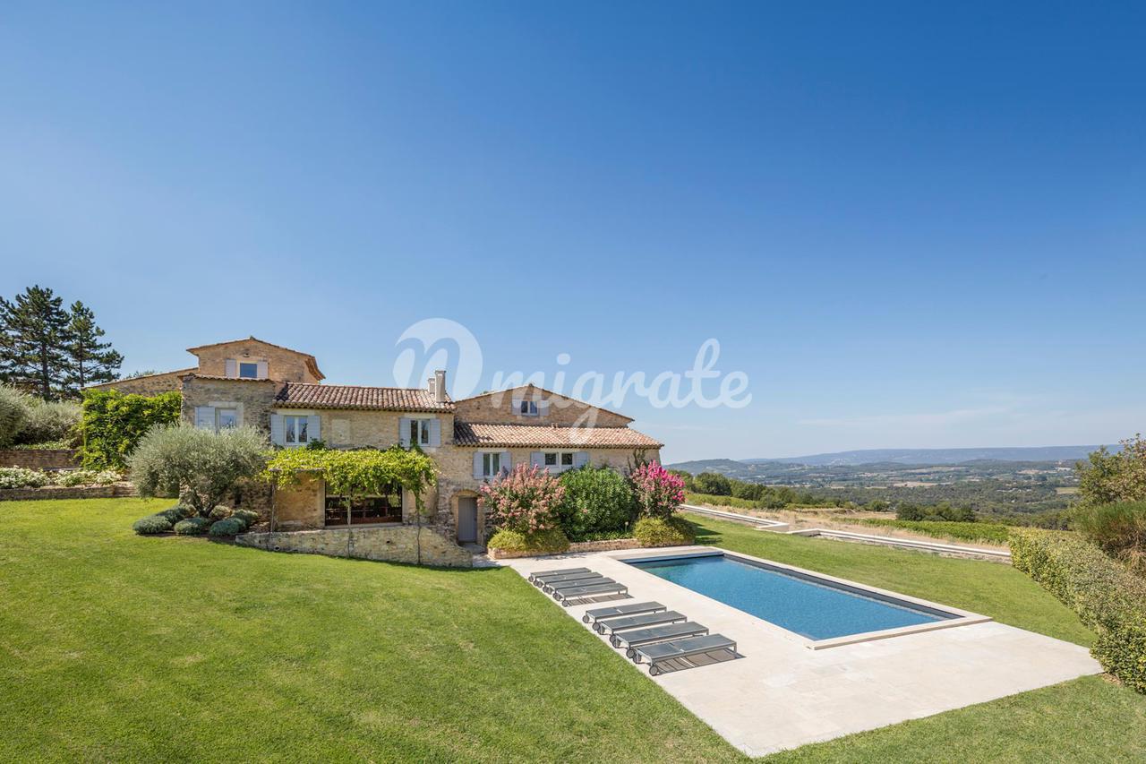 Жилые помещения первой резиденции включают просторную гостиную с мезонином, полностью оборудованную кухню, спальню с ванной комнатой и еще 2 спальни, каждая с собственной душевой комнатой. Вторая резиденция - это гостевые апартаменты с гостиной, кухней, спальней с односпальной кроватью, детской спальней, общей комнатой, ванной комнатой и еще одной спальней с ванной комнатой и террасой. Имущество расположено на огороженном участке площадью около 0,35 гектара, включая бассейн с подогревом и большую летнюю кухню. Из отеля открывается фантастический вид на Люберон.