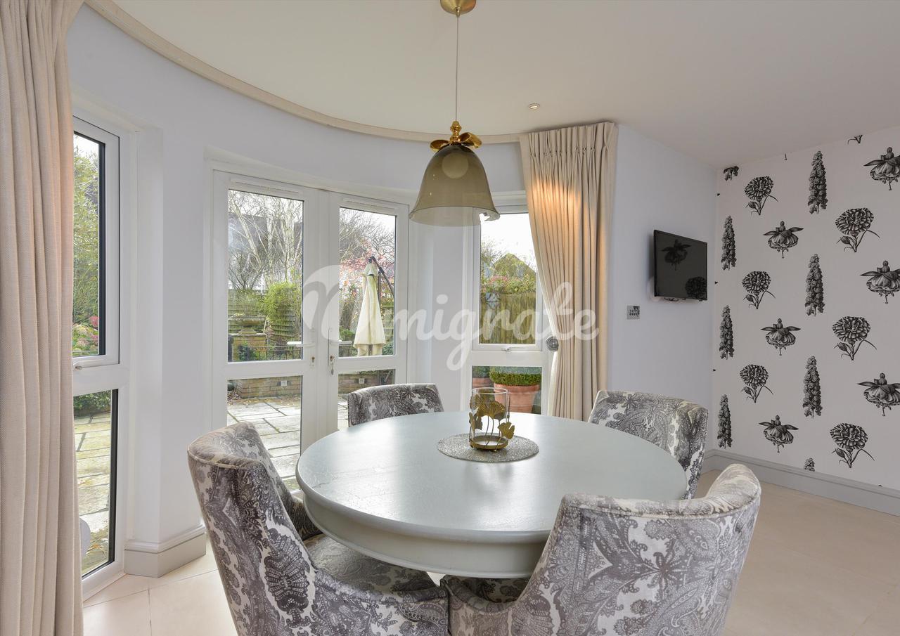 К этому элегантному и хорошо оборудованному дому, расположенному в стороне от частного Куль-де-Сак, ведет мощеная дорога с лужайкой сбоку и миниатюрной живой изгородью впереди. Тропа, идущая от подъездной дороги, ведет к закрытому боковому доступу во внутренний двор с садом. Из окон открывается прекрасный вид на общую лужайку прямо напротив отеля. Входная дверь, установленная на крыльце с навесом, ведет в прихожую с дверями, расходящимися в кухню/столовую, полезную гардеробную на первом этаже и лестницу, ведущую вверх на второй этаж. Кухня прекрасно оборудована, напольные и настенные шкафы с матовой отделкой без ручек создают современный, но классический вид. Рабочие поверхности из светлого гранита добавляют привлекательности, а большой выбор встроенной бытовой техники идеально подходит для начинающего шеф-повара. Столовая/семейная комната светлая и светлая, с красивой особенностью, круглым проходом в окне с французскими дверями, которые ведут в восхитительный сад во внутреннем дворе. Все это пространство идеально подходит для развлечений. Великолепная встроенная деревянная кладовая привлекает внимание и является прекрасной особенностью этого пространства. Пространство переходит в просторное подсобное помещение, оснащенное дополнительными модулями для дополнительного хранения. Есть встроенная раковина в белфастском стиле, сантехника для стиральной машины и место для сушильной машины. Жилье расположено на трех этажах, а поворотная лестница поднимается из вестибюля на второй этаж, где расположены роскошная гостиная и гостиная. Гостиная выходит на поле для крикета, откуда открывается потрясающий вид на зелень. Балкон Джульетты с дверями во французском стиле позволяет вам пригласить летнее время в помещение. Также имеется камин, который идеально подходит для отдыха перед долгими зимними вечерами. Из гостиной в задней части дома открывается прекрасный вид на сад, а на балконе Джульетты можно наслаждаться солнечными месяцами. Это пространство очень гибкое в своем использовании, а также может служить столовой, просторным домашним офисом/кабинетом или прекрасной художественной студией/комнатой для хобби. Лестница поднимается на второй этаж, где расположены две большие спальни с двуспальными кроватями, обе с ванными комнатами. Роскошная главная спальня элегантно оформлена и создает ощущение простора и роскоши. Ванная комната просто великолепна и действительно соответствует атмосфере роскошной спальни. Вторая спальня также представляет собой большую двуспальную кровать, красиво оформленную и с безупречно отделанной ванной комнатой с душем. Задний сад в стиле внутреннего двора - это спокойное место, где можно насладиться теплыми летними месяцами. Доступ через закрытый боковой проход или из кухни/столовой идеально подходит для трапезы на свежем воздухе. Здесь есть мощеная зона отдыха с приподнятыми краями и коваными перилами. Еще один шаг вверх, и зона внутреннего дворика продолжает охватывать красивый центральный пруд. Благодаря нашему стремлению обеспечить безопасность как наших коллег, так и клиентов, у нас есть множество вариантов управляемого виртуального просмотра, доступных для вас. К ним относятся видеопросмотры, 360-градусные туры в виртуальной реальности и расширенные комплексные фотографии, 
