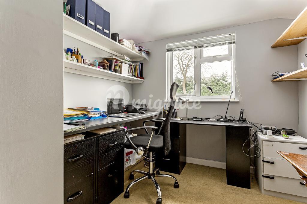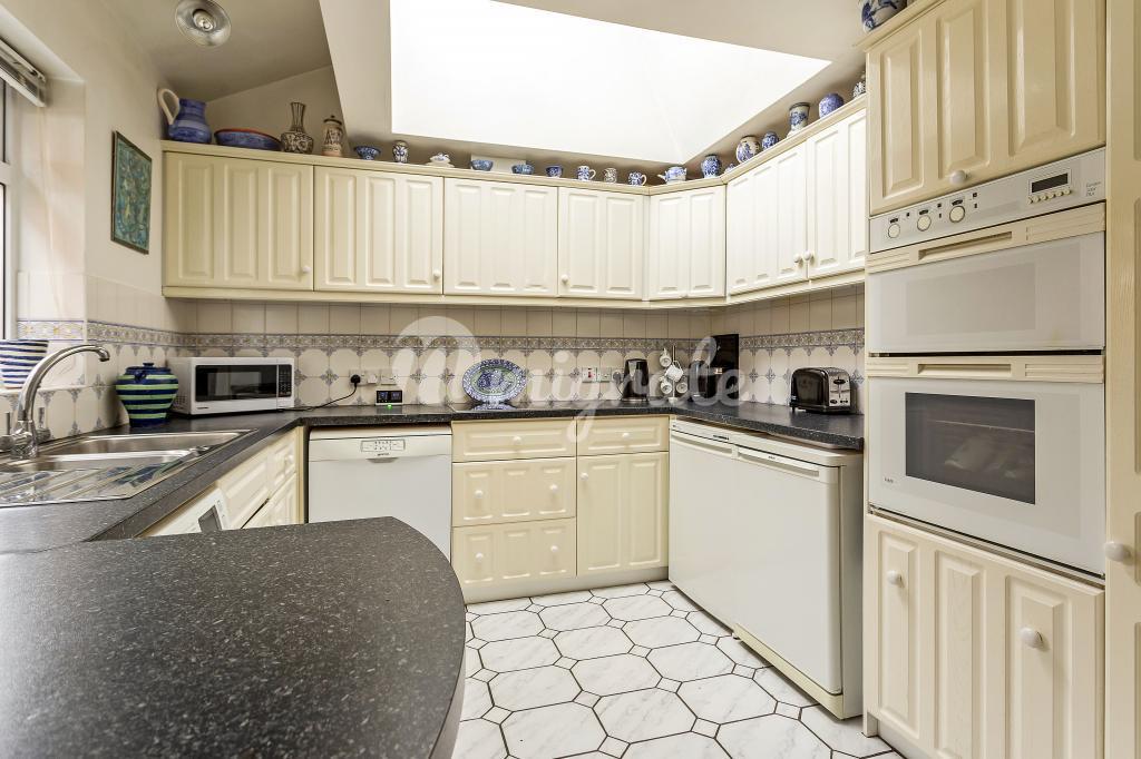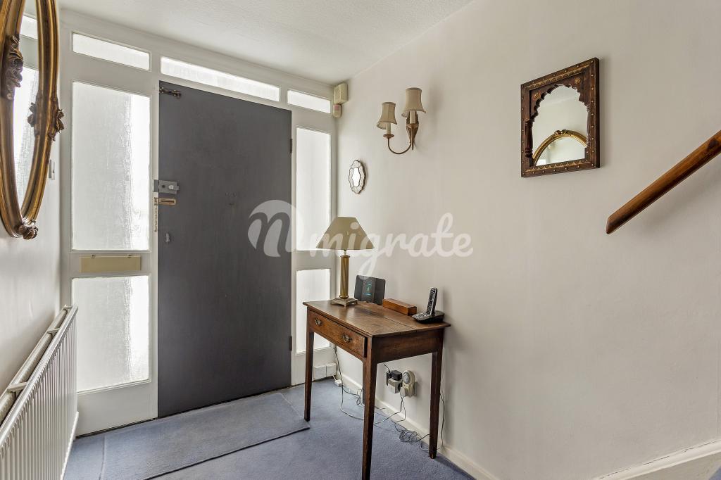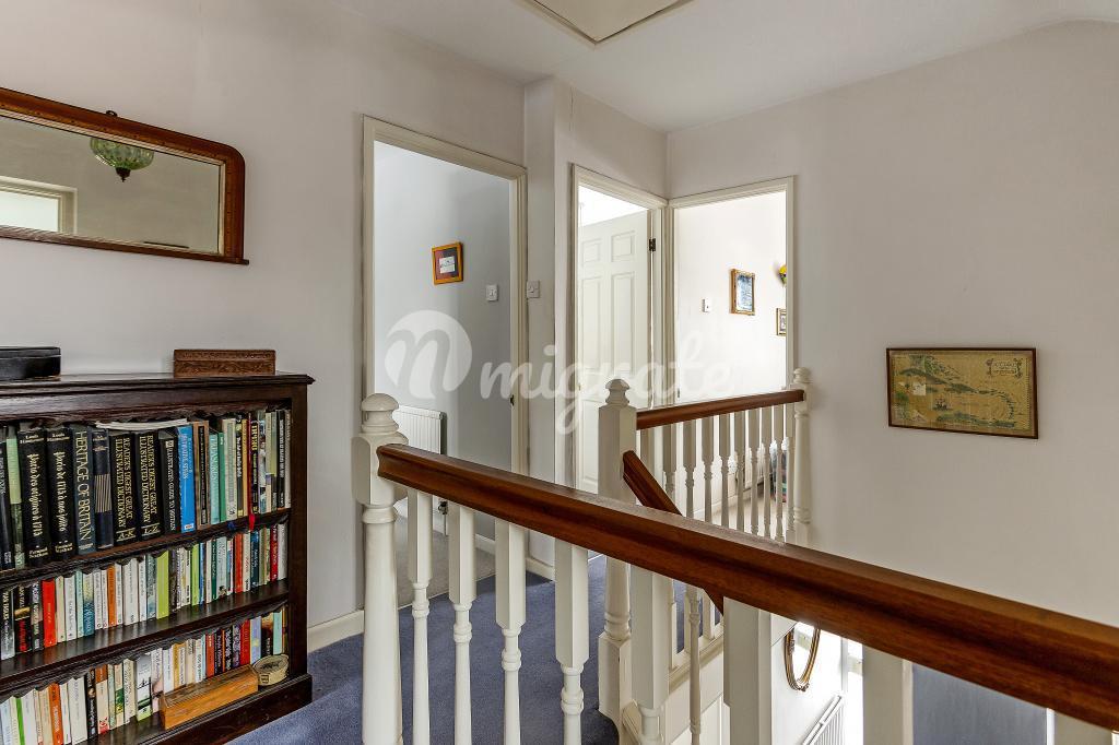 Внутри дом имеет традиционную планировку с гостиной спереди с эркером и столовой сзади с французскими дверями в сад. Хорошо спланированная кухня имеет внешнюю дверь, ведущую к боковому выходу, и еще одну внутреннюю дверь, ведущую во встроенный гараж. Дом был расширен в заднюю часть, и это обеспечивает дополнительную большую приемную с прекрасным видом на сад через раздвижные двери, которые охватывают всю ширину комнаты.