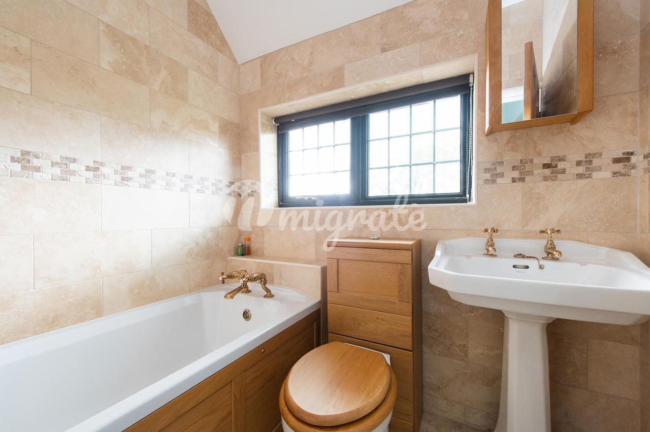 На первом этаже находится двухуровневый кабинет, главная спальня с двумя окнами и собственной ванной комнатой, а также две дополнительные спальни с двуспальными кроватями, обслуживаемые семейной ванной комнатой.
