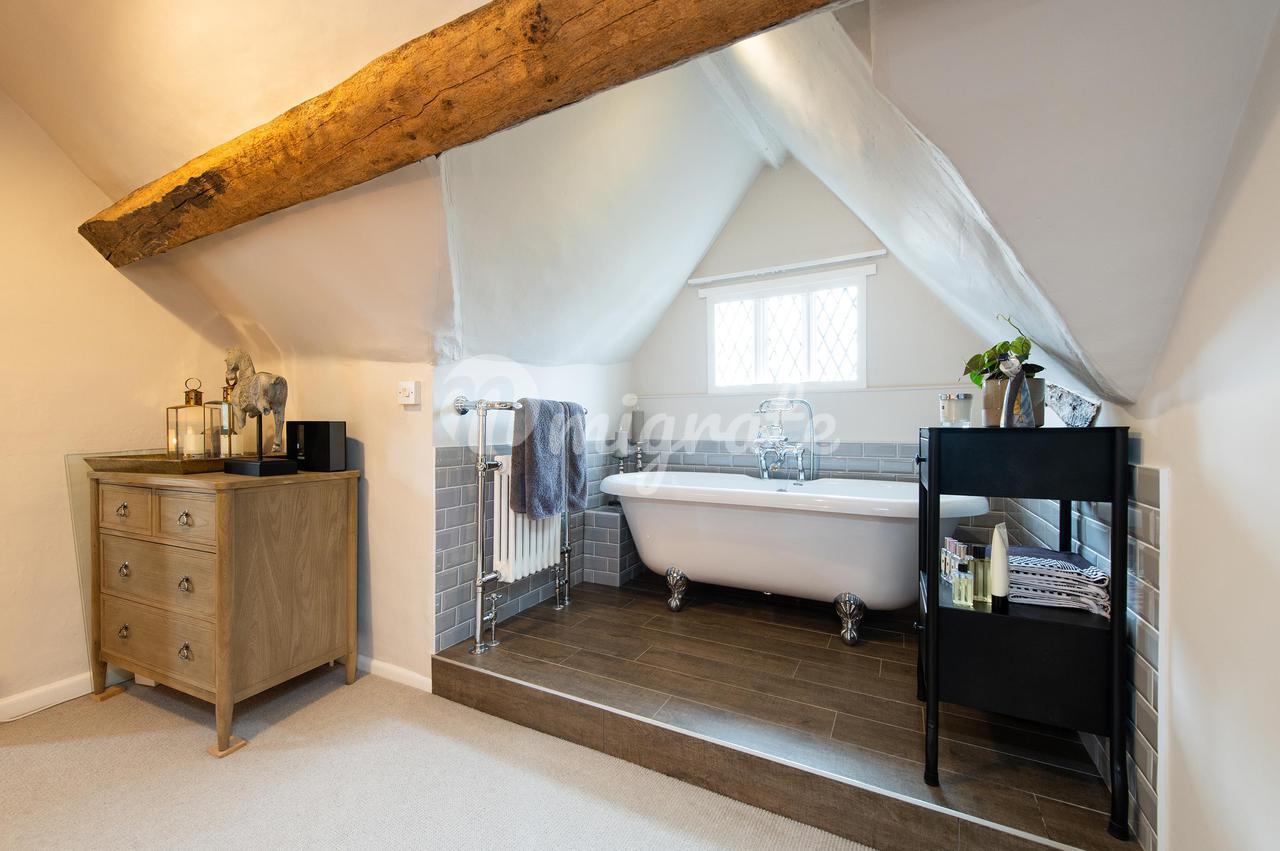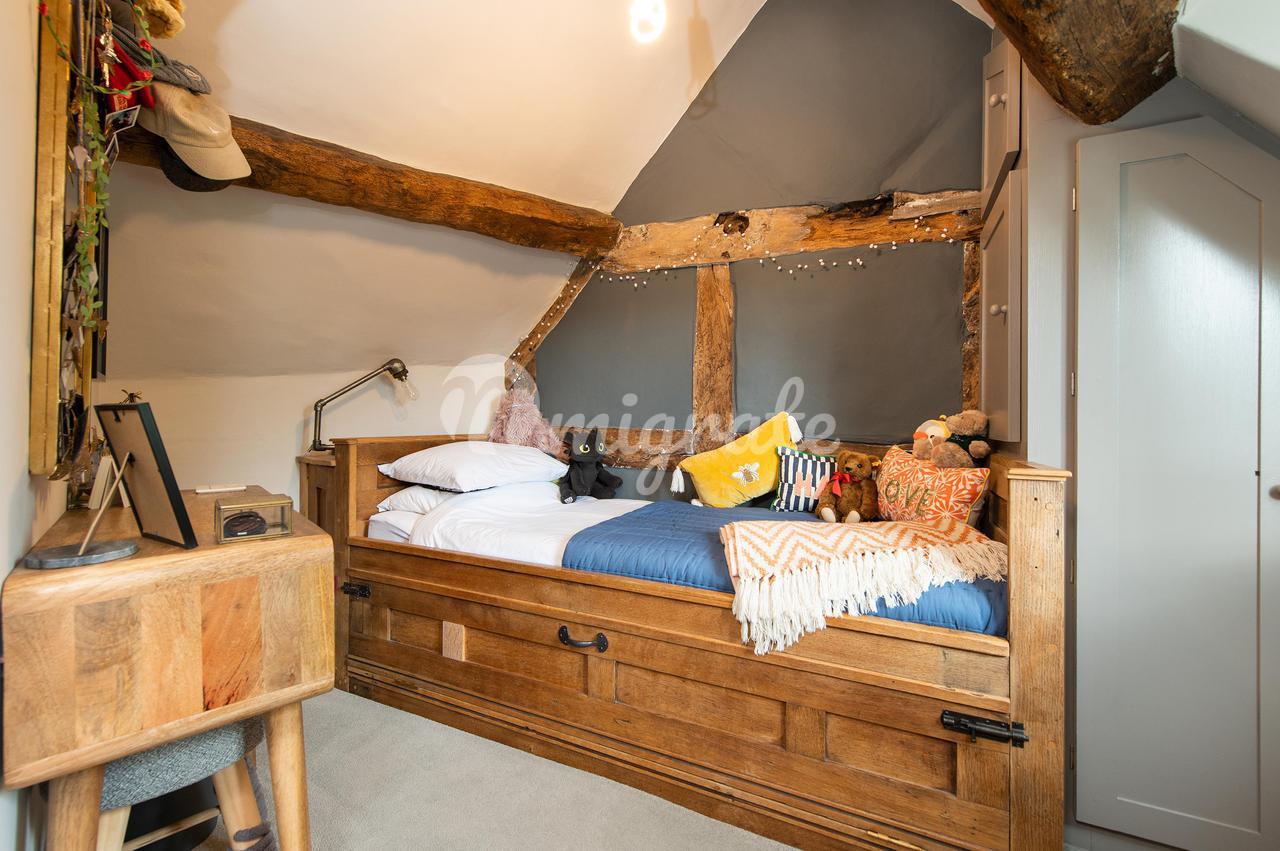 На втором этаже, в прекрасно оборудованной главной спальне, есть место для зоны отдыха у впечатляющего камина в стиле тюдоров. Местный мастер-плотник установил и встроил шкафы-купе. В собственной душевой комнате установлена душевая кабина Matki и фурнитура Villeroy и Bosch. Вторая спальня с двуспальной кроватью находится на этом этаже, включая кабинет и еще один оригинальный камин в стиле Тюдоров.
