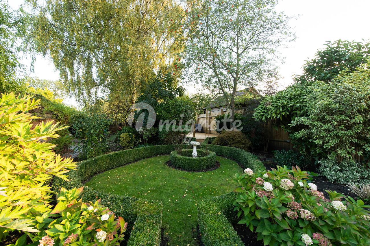 В саду есть различные развлекательные зоны, позволяющие максимально использовать прекрасные деревья и окрестности. Новые подпорные стены сада были перестроены из серого кирпича ручной работы, а в 2021 году также было установлено дополнительное новое ограждение, обеспечивающее хорошую приватность. Цветочные клумбы хорошо ухожены и окаймлены живой изгородью из самшита, а в заднем углу сада есть небольшая лужайка и недавно построенная терраса. Два магазина, построенных из кирпича, обеспечивают полезное хранение и расположены вне поля зрения.