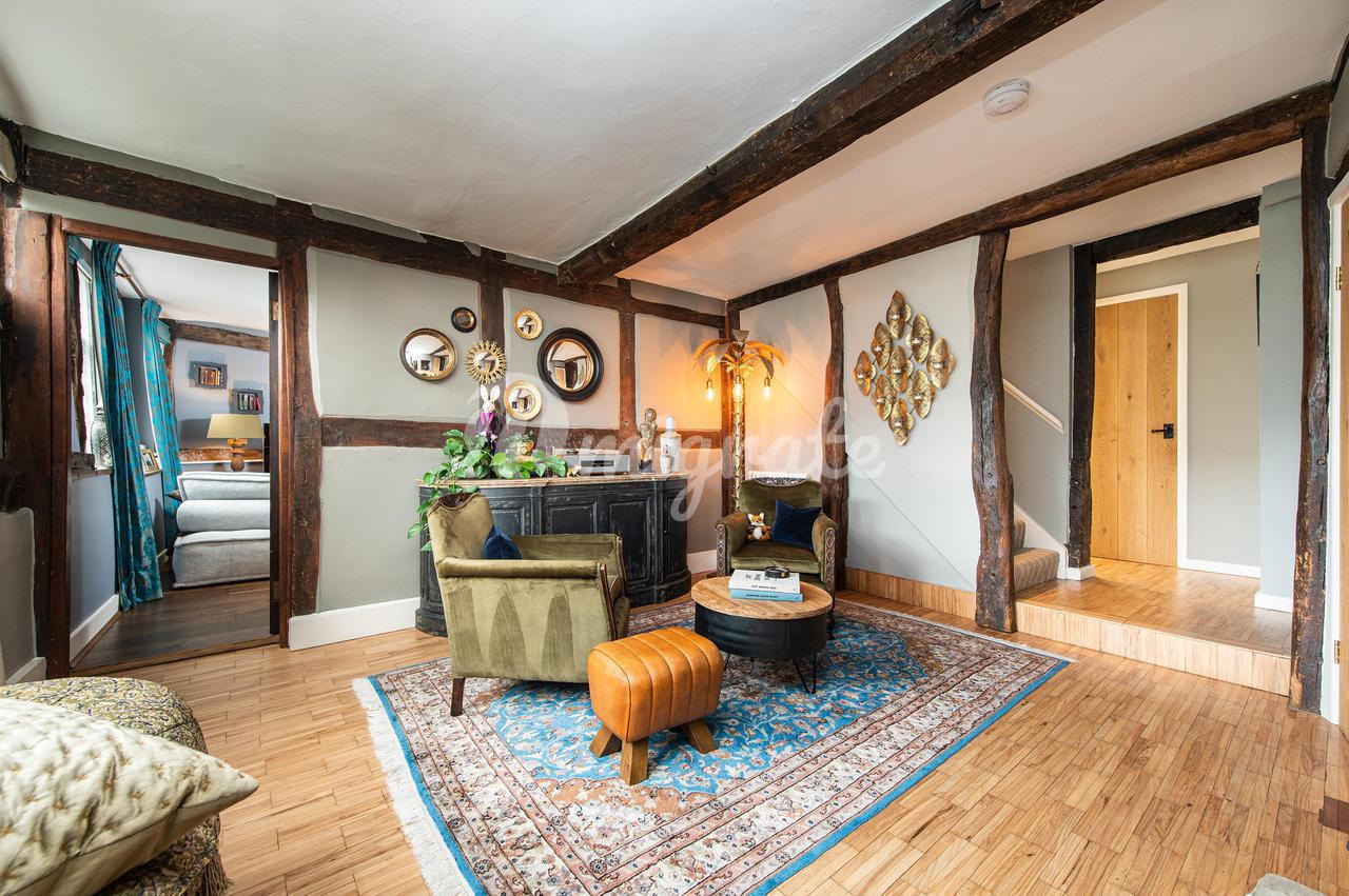 Расположенный в престижном и популярном месте, этот объект недвижимости, внесенный в список объектов категории II, датируется 16 веком и отличается потрясающим характером. Сад, обнесенный стеной, выходит на южную сторону. При обновлении дома была проявлена особая забота, и значительные работы, завершенные за последние несколько лет, были выполнены на отличном уровне. Совсем недавно, в 2021 году, была завершена потрясающая новая пристройка к кухне и усовершенствована открытая терраса, чтобы обеспечить семейное жилое и развлекательное пространство. Ступеньки и небольшой садик перед домом ведут к дубовой входной двери, которая открывается в прихожую, нынешние владельцы используют ее как гостиную. Он оформлен со вкусом и имеет привлекательные особенности, в том числе открытые балки, пол из блоков американского клена и камин в стиле Тюдор с дровяной печью Edinolva. Внутренний коридор продолжается мимо гардеробной и полезного шкафа для хранения вещей в заднюю часть дома.