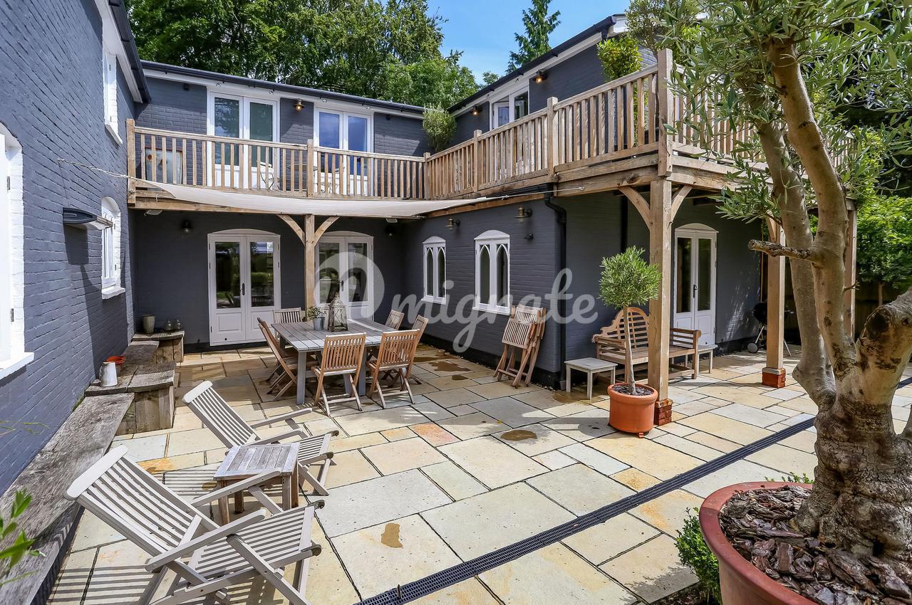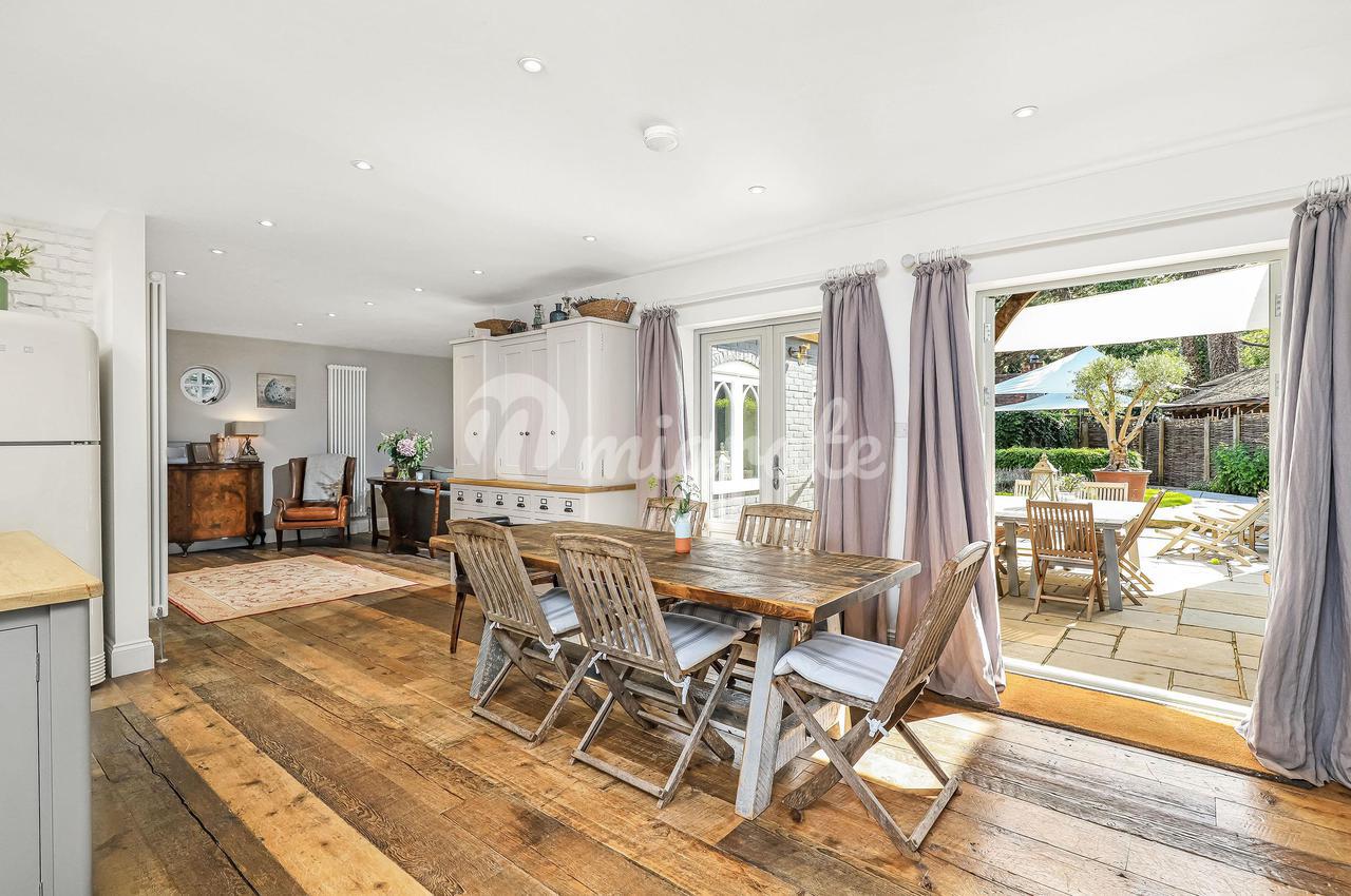Первоначально построенный примерно в 1850 году, The First House был полностью отреставрирован, отремонтирован и изысканно расширен 5 лет назад. Имеются все сертификаты об окончании. Нынешние владельцы выбрали этот дом из-за легкого доступа к Лондону, колледжу Питера Саймондса, Саутгемптону и аэропорту. Это чудесно спроектированный дом с удобной открытой планировкой, окруженный восхитительным садом в средиземноморском стиле. Подойти к Первому дому можно через дубовые ворота над большой каменной гравийной дорогой Котсуолд с двойным открытым дубовым гаражом. Старинная парадная дверь открывает великолепный вид на интерьер. Впечатляющая кухня двойной высоты залита естественным светом и вместе с просторной обеденной зоной открытой планировки образует центр этого сказочного дома. Три набора французских дверей открываются на каменную террасу, образуя стильную крытую/открытую развлекательную зону, примыкающую к дому. На первом этаже также есть прачечная / сушильная комната, комната для хранения обуви с собачьим душем, гардеробная, отдельный туалет, уютный / домашний офис и кабинет / пятая спальня с двуспальной кроватью. В этом доме две лестницы. Наверху в светлой главной спальне есть две пары французских дверей, открывающихся на дубовый балкон. Ванная комната с гардеробной и кладовой ведет от нее. Есть еще три спальни с двуспальными кроватями (одна с гардеробной) и еще две ванные комнаты. Между этими спальнями находится восхитительная и светлая мезонинная зона. На этом этаже много гардеробной и чердака.