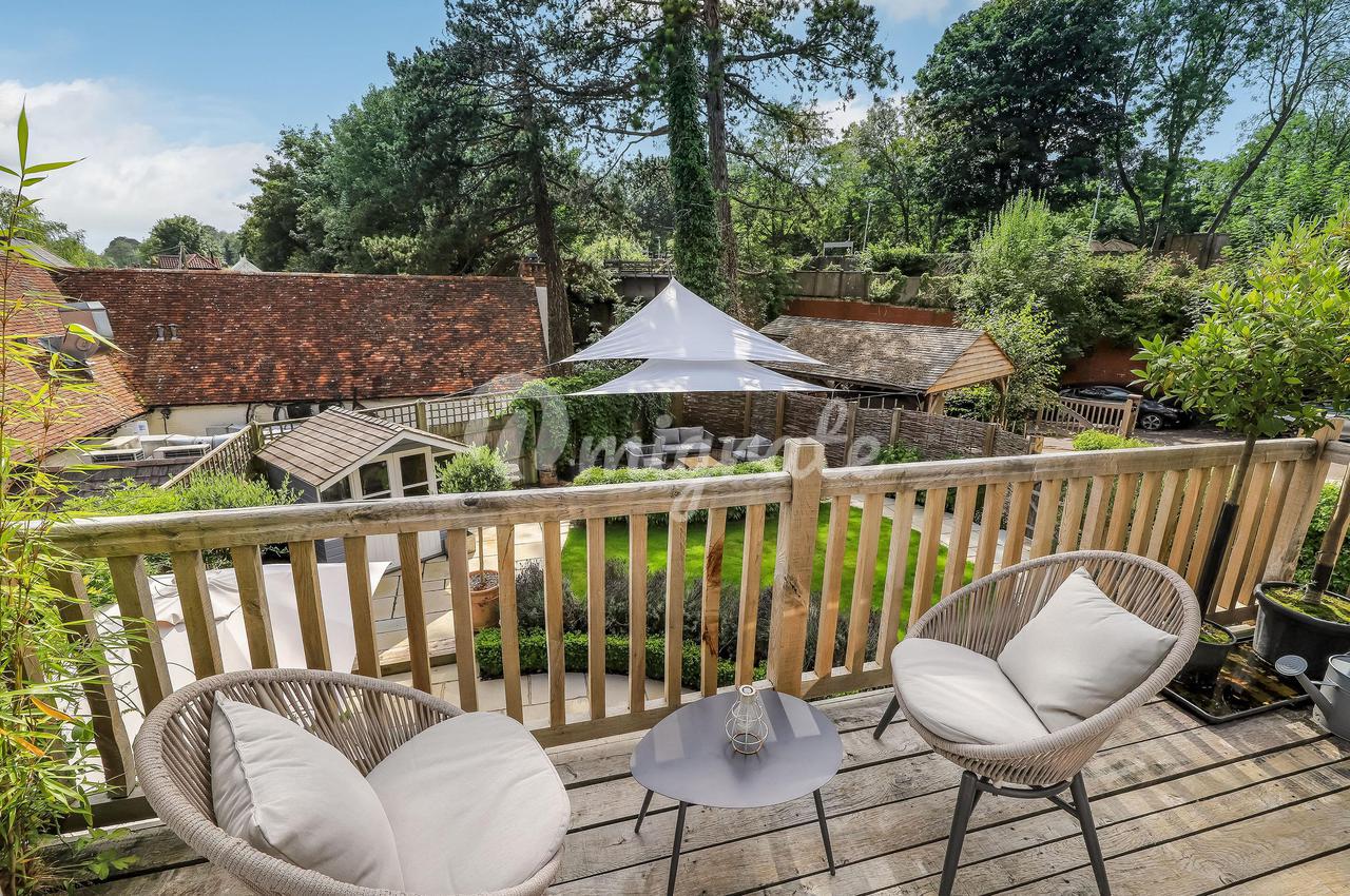 Снаружи нынешние владельцы создали красивый сад с террасами из натурального камня, несколькими зонами отдыха, красивыми насаждениями и ограждением с барьерами, увитыми глицинией и жимолостью. Это великолепно уединенное и личное пространство.