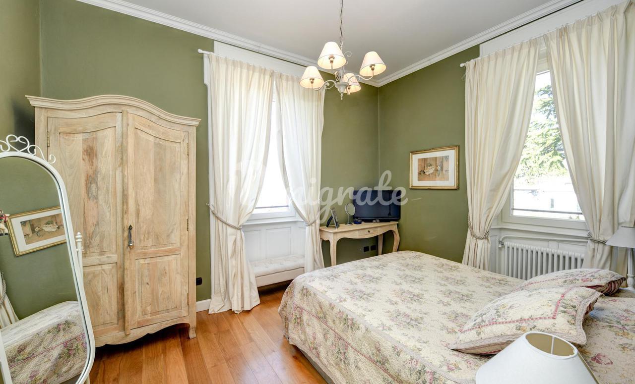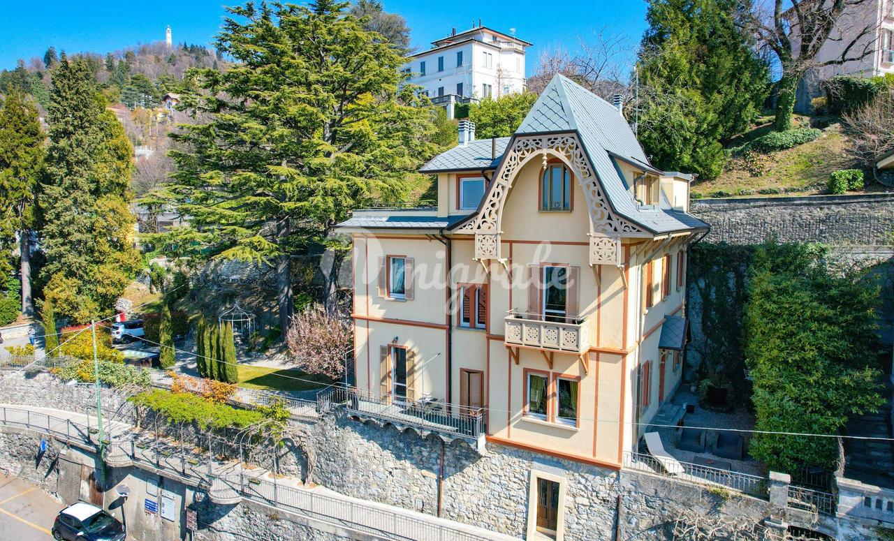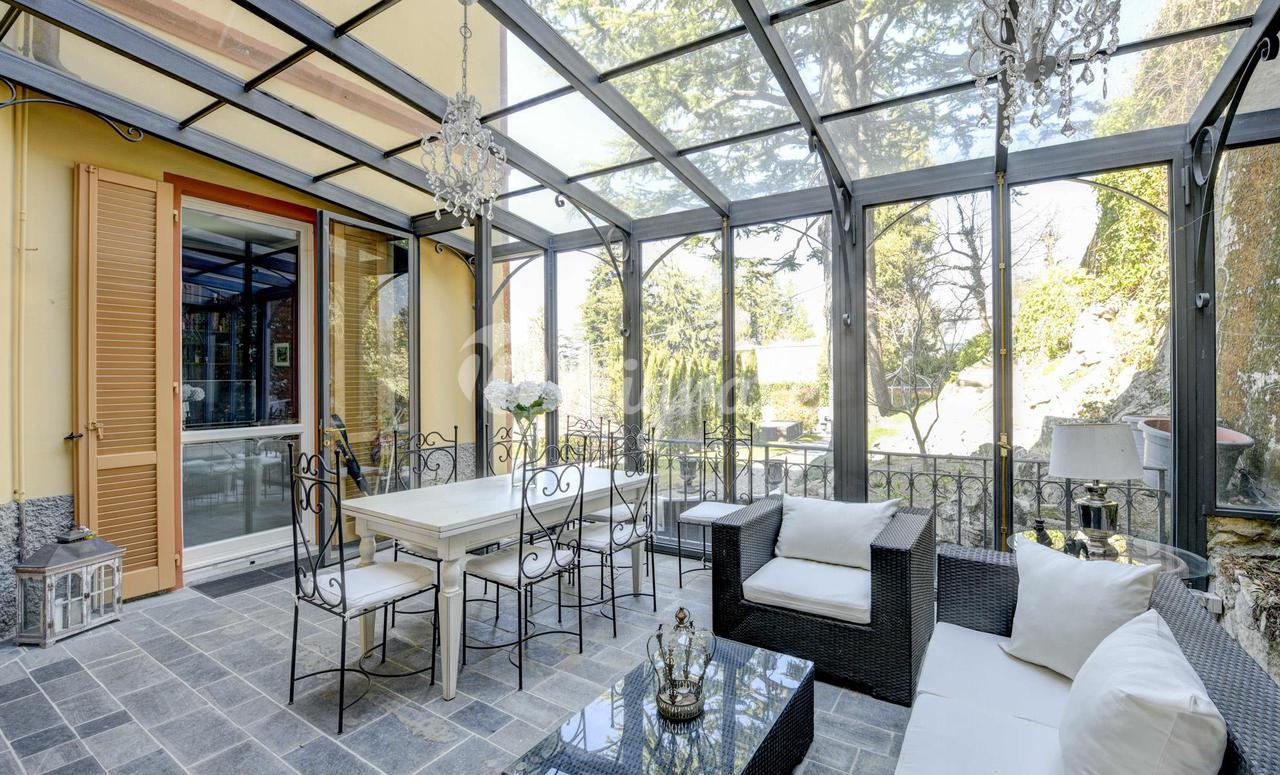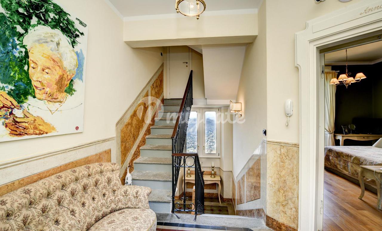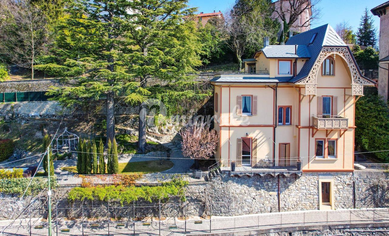 Эта вилла 1900-х годов постройки, которая была полностью отремонтирована в 2013 году, состоит из: - на первом этаже гостиная с обеденной зоной, столовая, кабинет, открытая кухня, подсобное помещение и ванная комната. Гостиная выходит на веранду и панорамную террасу. - Второй этаж включает в себя три спальни, каждая с собственной ванной комнатой, гардеробную с дополнительной ванной комнатой и балкон -Второй этаж представляет собой отдельную квартиру, включающую гостиную с обеденной зоной, кухню, спальню и ванную комнату. Из него также есть выход на панорамную частную террасу с видом на озеро. Этот этаж может быть соединен с остальной частью виллы внутренней лестницей, нуждающейся в ремонте. - Подвал состоит из трех подвалов