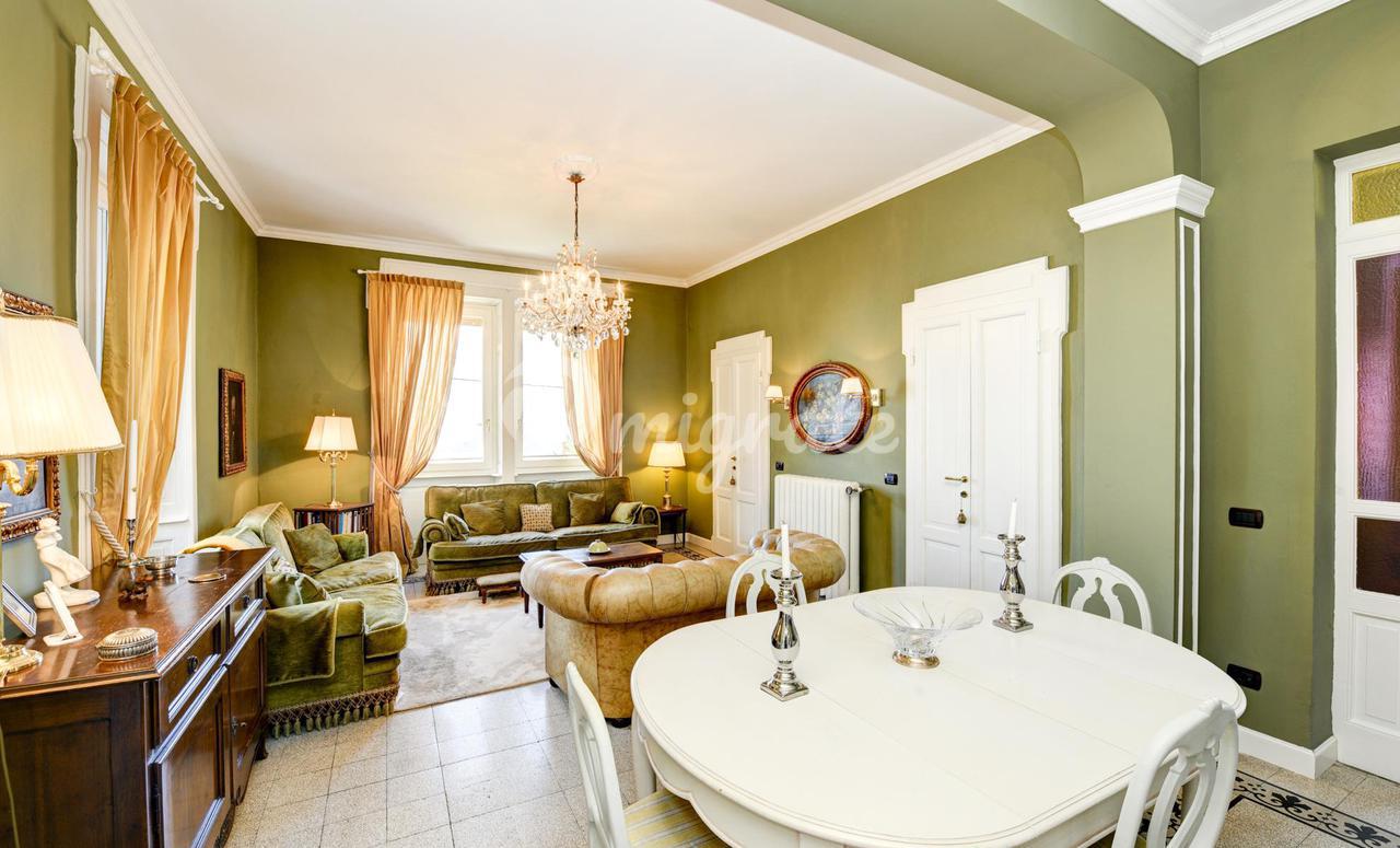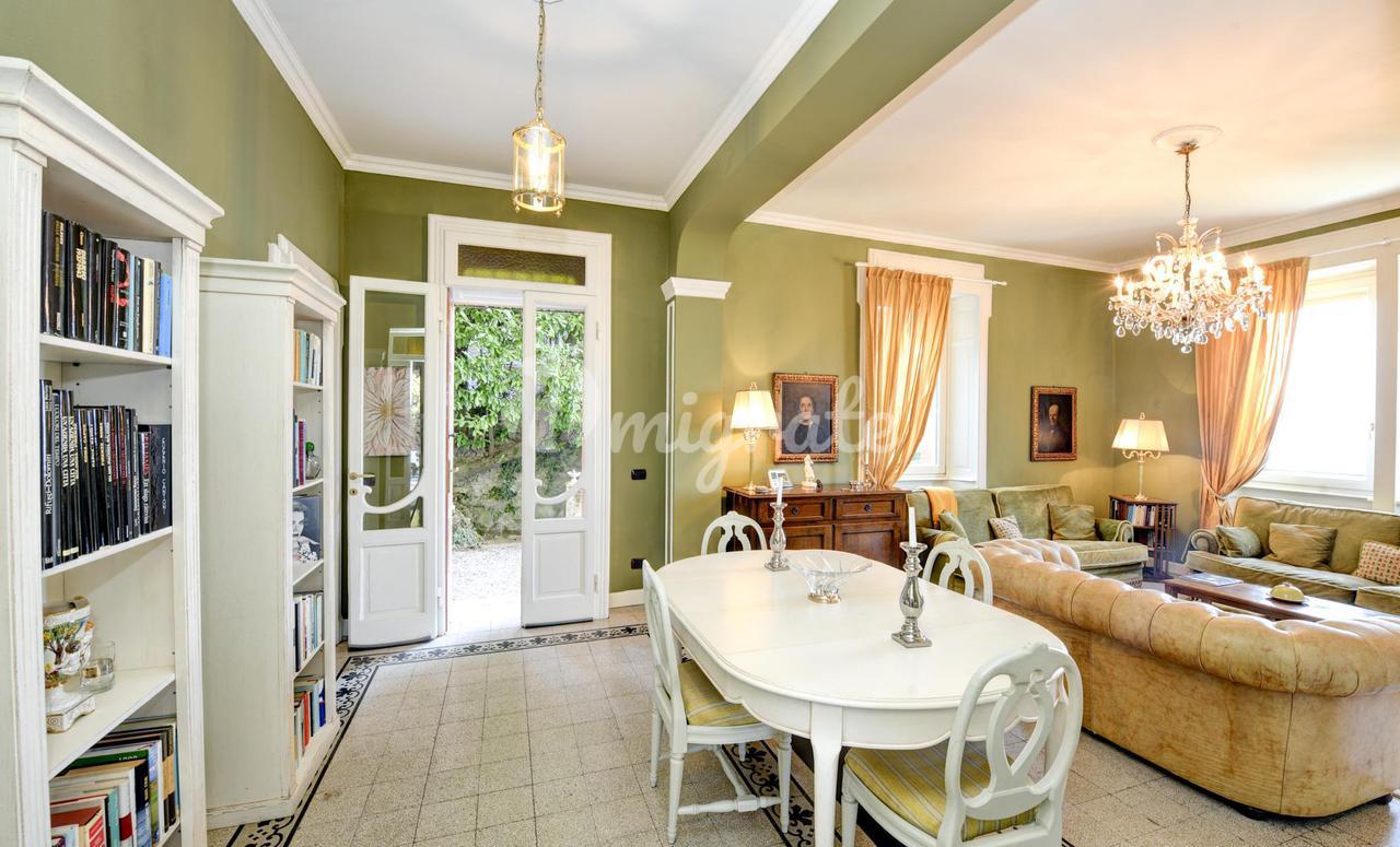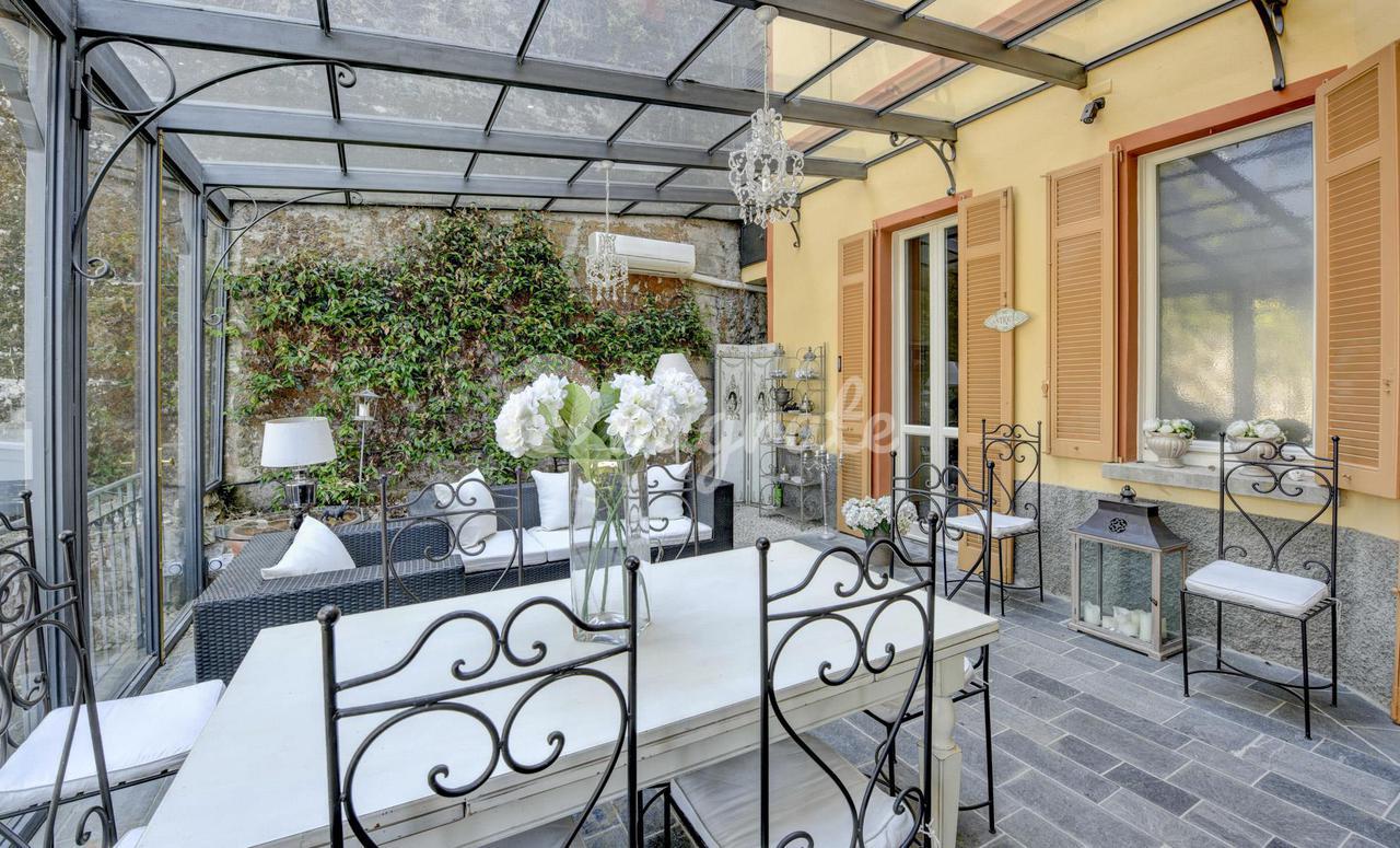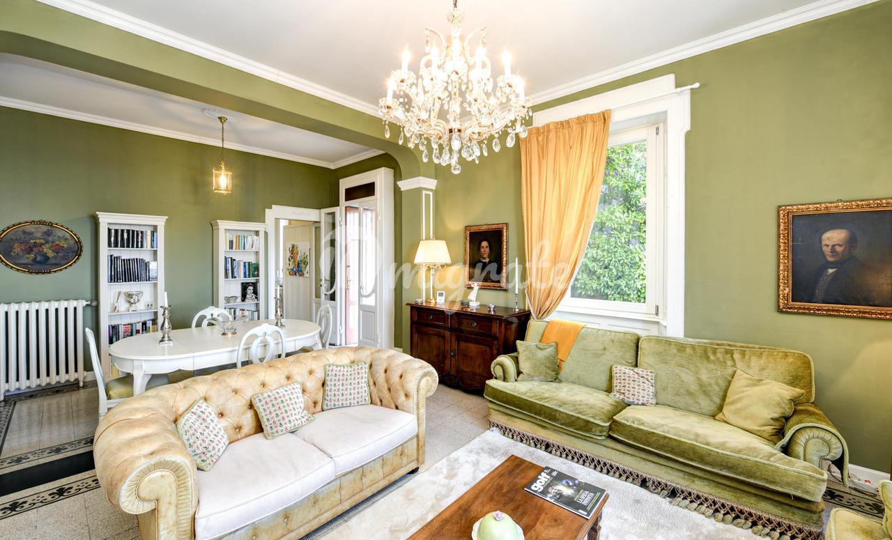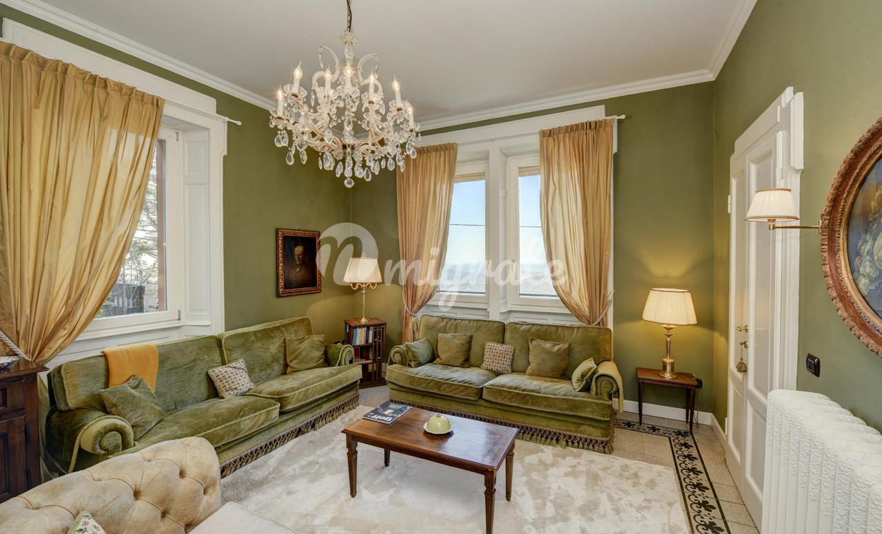 Эта вилла 1900-х годов постройки, которая была полностью отремонтирована в 2013 году, состоит из: - на первом этаже гостиная с обеденной зоной, столовая, кабинет, открытая кухня, подсобное помещение и ванная комната. Гостиная выходит на веранду и панорамную террасу. - Второй этаж включает в себя три спальни, каждая с собственной ванной комнатой, гардеробную с дополнительной ванной комнатой и балкон -Второй этаж представляет собой отдельную квартиру, включающую гостиную с обеденной зоной, кухню, спальню и ванную комнату. Из него также есть выход на панорамную частную террасу с видом на озеро. Этот этаж может быть соединен с остальной частью виллы внутренней лестницей, нуждающейся в ремонте. - Подвал состоит из трех подвалов