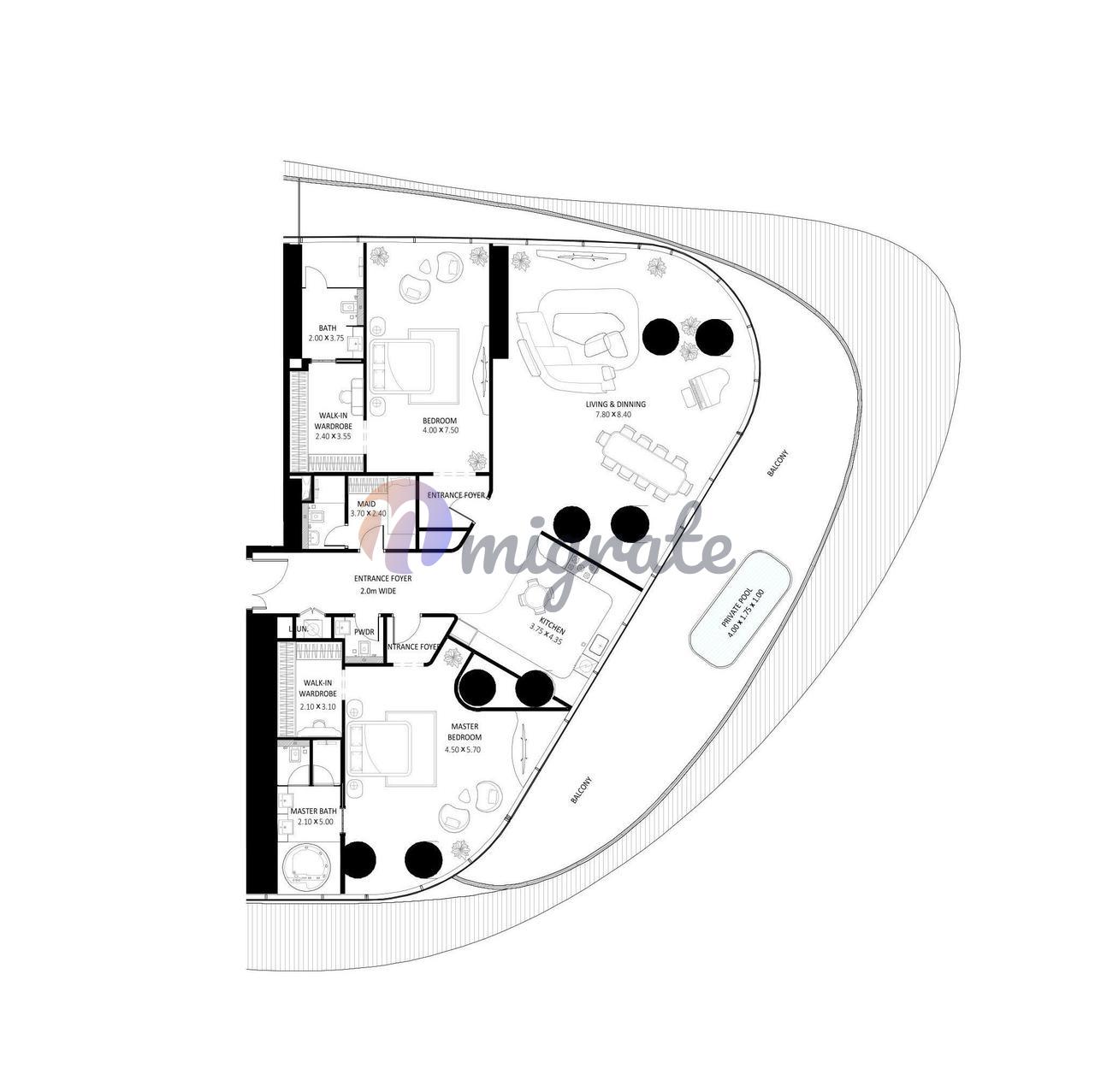 Мы рады представить вам двухкомнатную квартиру в Bugatti Residences by Binghatti.