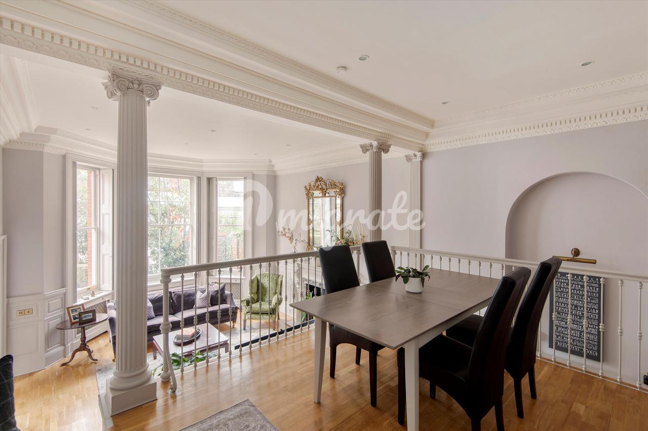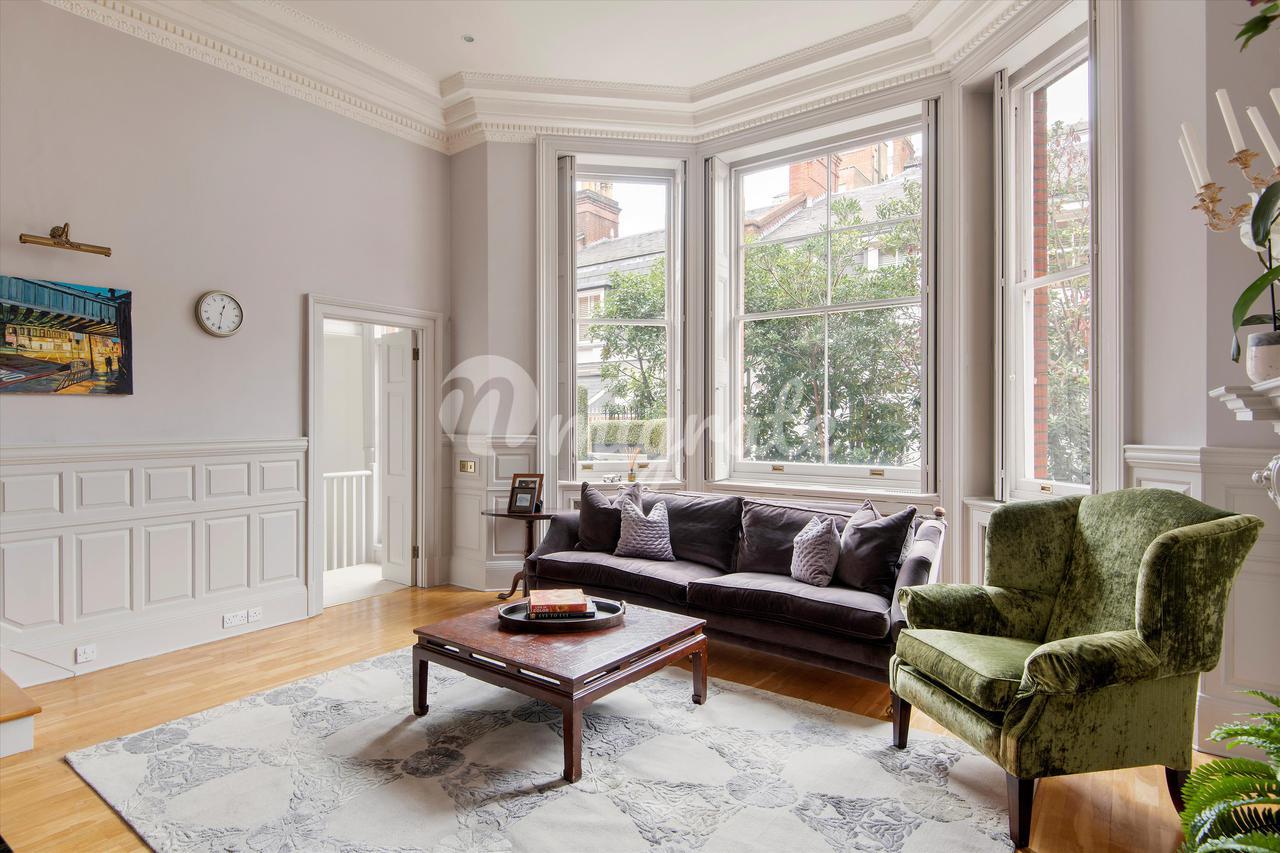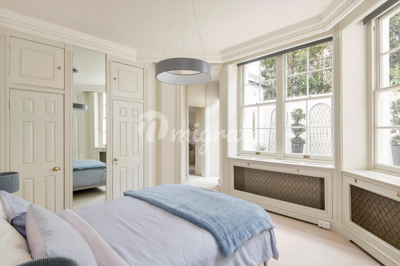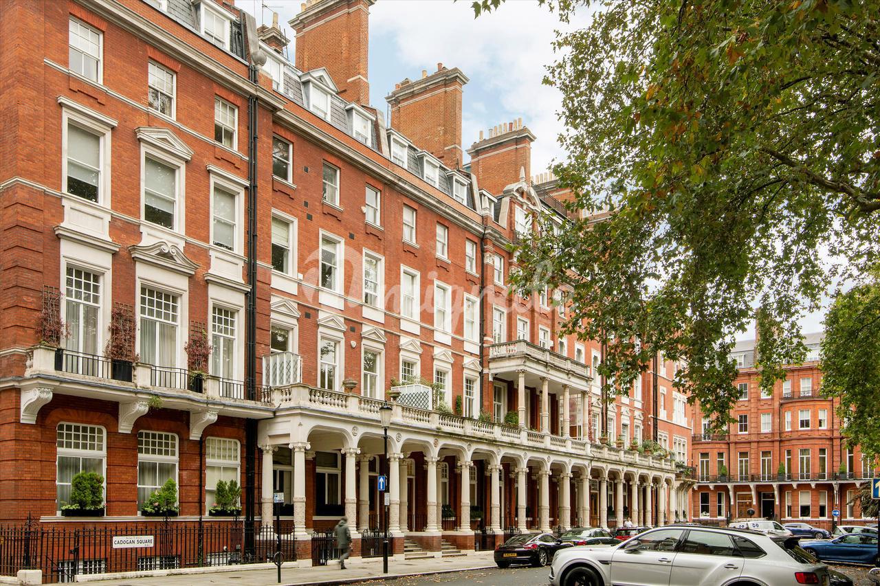 Светлая и просторная двухуровневая квартира с 3 спальнями и 2 ванными комнатами расположена в красивом здании из красного кирпича на площади Кадоган. Эти просторные апартаменты, расположенные на цокольном и цокольном этажах, предлагают отличное пространство для развлечений с высокими потолками в главной приемной, а также обильным естественным освещением. Хорошо оформленная квартира имеет площадь около 1796 кв. м, включая просторную приемную и отдельную кухню. В квартире также есть три спальни, в том числе большая главная спальня с прилегающей ванной комнатой, из которой также есть выход в частный сад. Существует дополнительная семейная ванная комната и гостевой санузел.