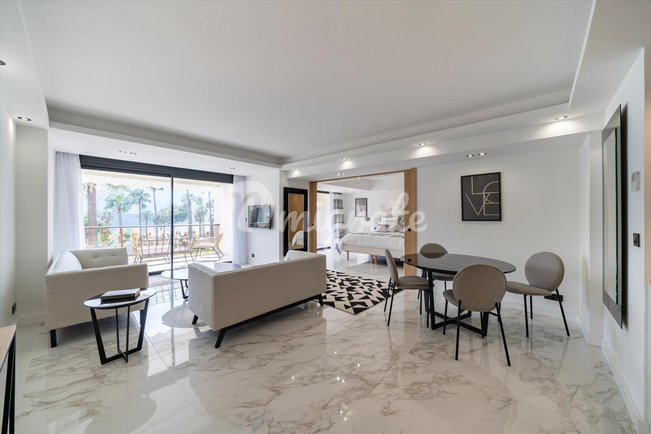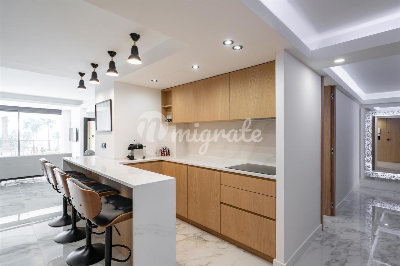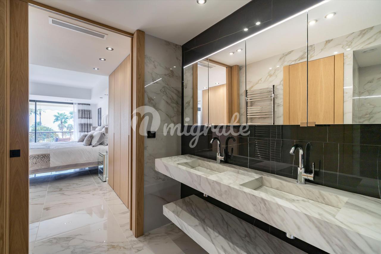Эти отремонтированные апартаменты площадью около 135 кв. м включают в себя: Прихожая, большая гостиная/столовая, выходящая на южную террасу с видом на море, и кухня в американском стиле, главная спальня с гардеробной и ванной комнатой, а также две дополнительные спальни с собственными ванными комнатами. В квартире также есть подсобное помещение и дополнительный гостевой туалет. Продажа включает в себя подвал и гараж.