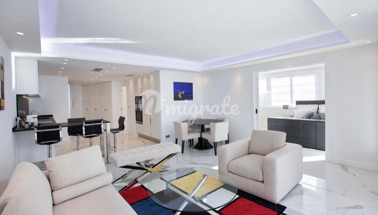 В одной из самых популярных резиденций на набережной Круазет эта превосходная квартира с 2 спальнями была отремонтирована с использованием современных материалов. Он предлагает красивую террасу площадью 20 кв. м с панорамным видом на море и состоит из: - Большая прихожая со шкафом - Гостиная/столовая с выходом на террасу - Полностью оборудованная американская кухня - Главная спальня со шкафами и собственной ванной/душевой комнатой с туалетом - Вторая спальня с собственной душевой комнатой - Гостевой туалет Продается с подвалом и возможностью парковки.