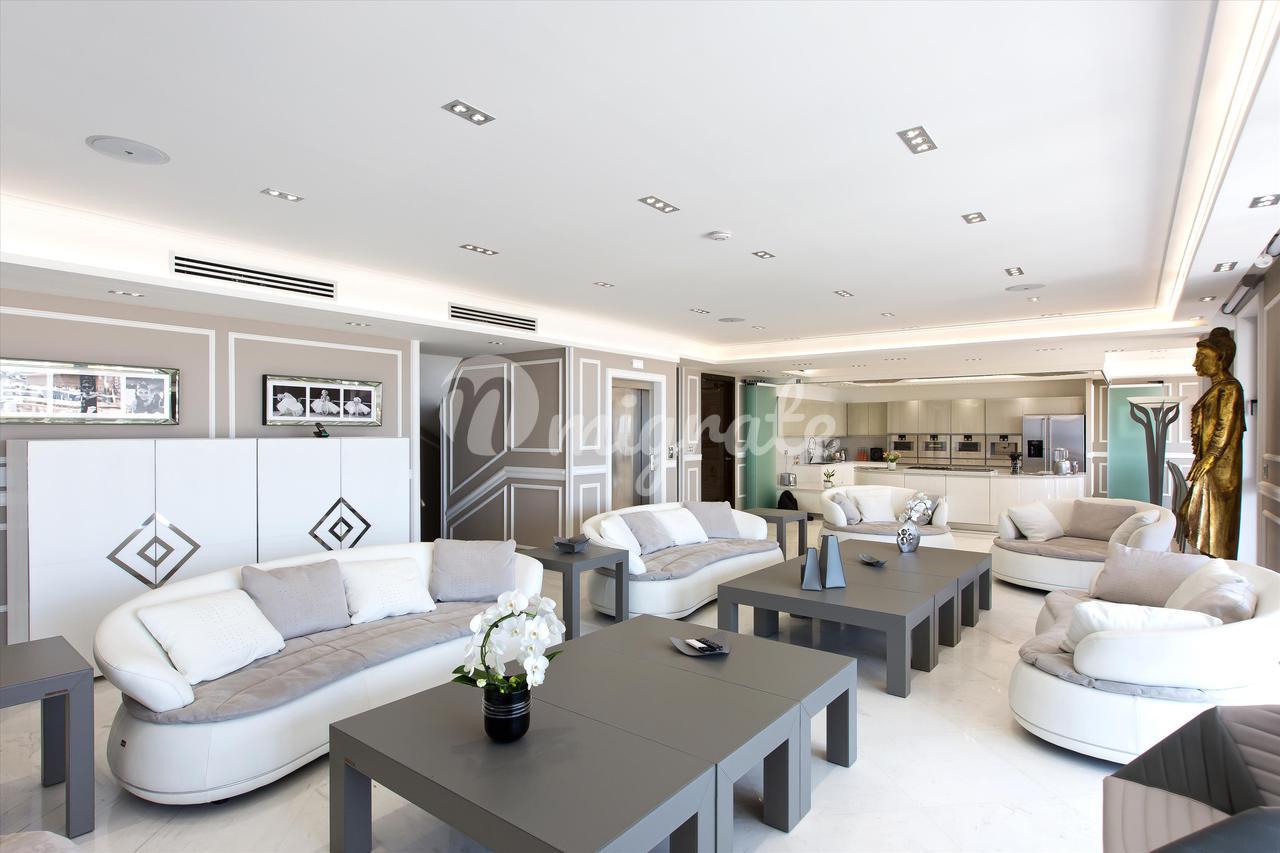 Размещение этой виллы предлагает прихожую с большим аквариумом, интегрированным в пол, две просторные гостиные, просторную дизайнерскую кухню, столовую, офис, семь спален, полностью оборудованный тренажерный зал, полностью оборудованный кинозал, винный погреб, отдельную квартиру смотрителя. Класс энергопотребления: ожидается