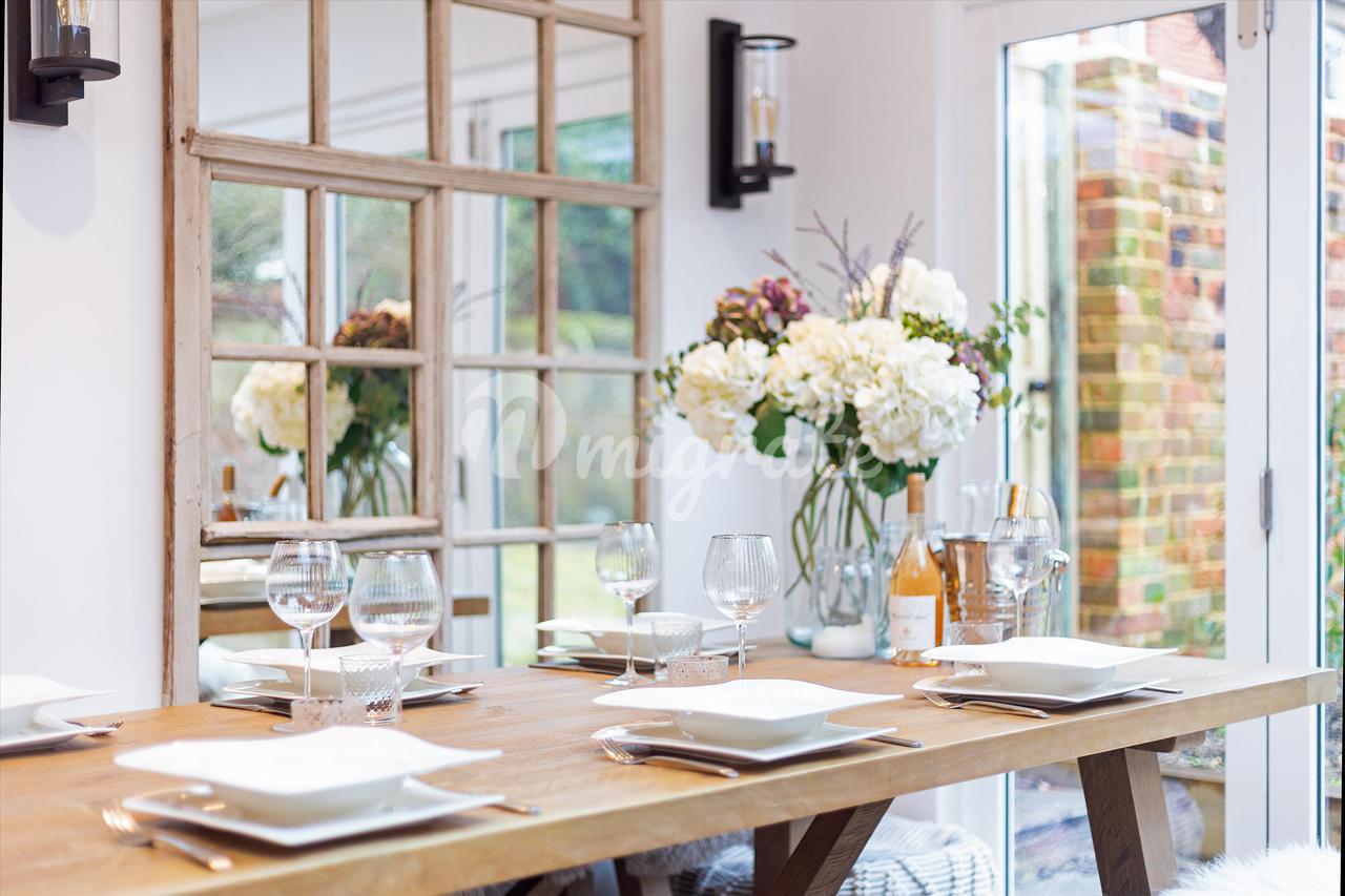 Центральный остров является прекрасным дополнением, создающим развлекательное пространство для гостей. В задней части кухни/столовой есть двустворчатые двери, ведущие на террасу и в сад.