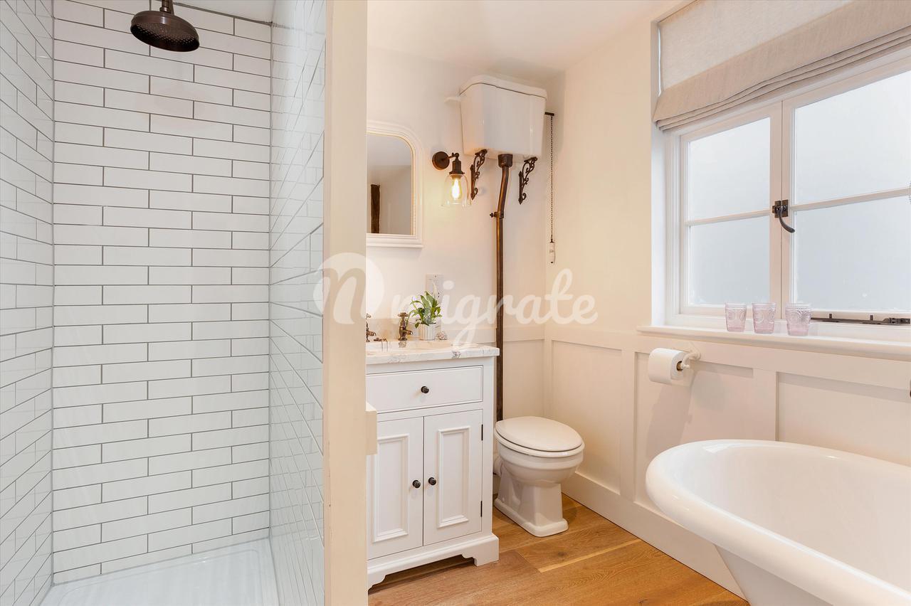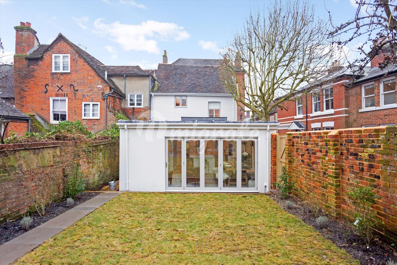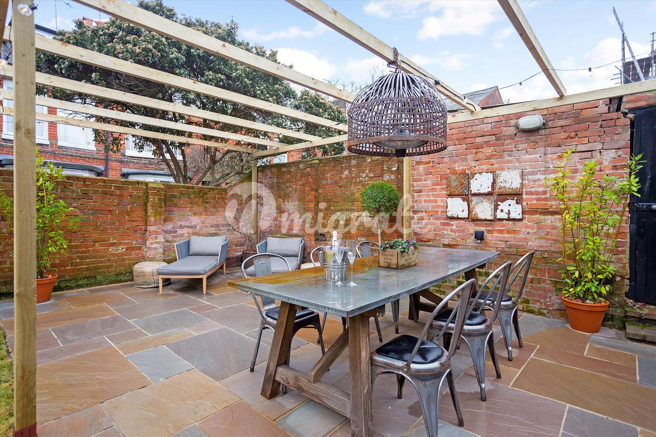 Снаружи окруженный стеной задний сад был красиво озеленен и предлагает хорошую степень уединения, включая мощеную террасу в дальнем конце, где можно наслаждаться солнечными вечерами в беседке. Вы можете попасть в гараж на одну машину и дополнительное парковочное место через ворота в конце сада. Здесь также недавно установлен пункт зарядки электромобилей.