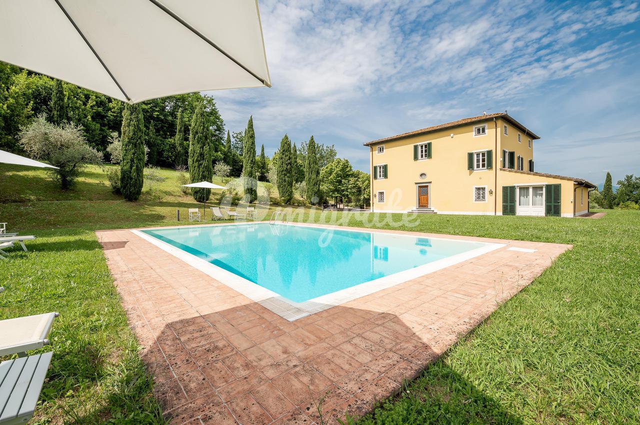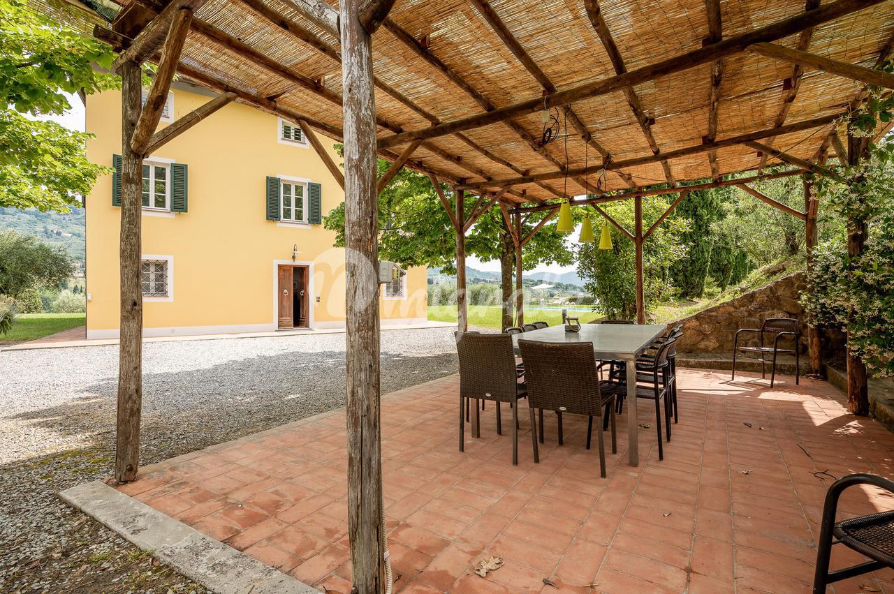 Красивая вилла начала 19 века, продается недалеко от Лукки, на склоне холма, в панорамном месте, с прекрасным видом на сельскую местность, в окружении большого и ухоженного сада и примерно 1,5 га земли, а также с бассейном и небольшая пристройка. Вилла, площадью около 480 кв.м., расположена на трех этажах, была полностью отремонтирована и включает в себя вход на первом этаже, большую спальню с двуспальной кроватью с ванной комнатой и прямым выходом в сад, спальню с двуспальной кроватью с ванной комнатой, прачечную. комната и еще две спальни с двуспальными кроватями и ванная комната. По лестнице у входа мы попадаем на первый этаж, где находится просторная и светлая гостиная с элегантным мраморным камином, кухня, столовая, кабинет и ванная комната, а на втором этаже спальня с двуспальной кроватью и большие комнаты. с хорошей высотой, в настоящее время используются как многофункциональные помещения. Имущество завершается большим бассейном, из которого открывается прекрасный вид, пристройкой, где в настоящее время оборудована прачечная, беседкой, оборудованной для обедов и ужинов на свежем воздухе, а также несколькими открытыми парковочными местами.