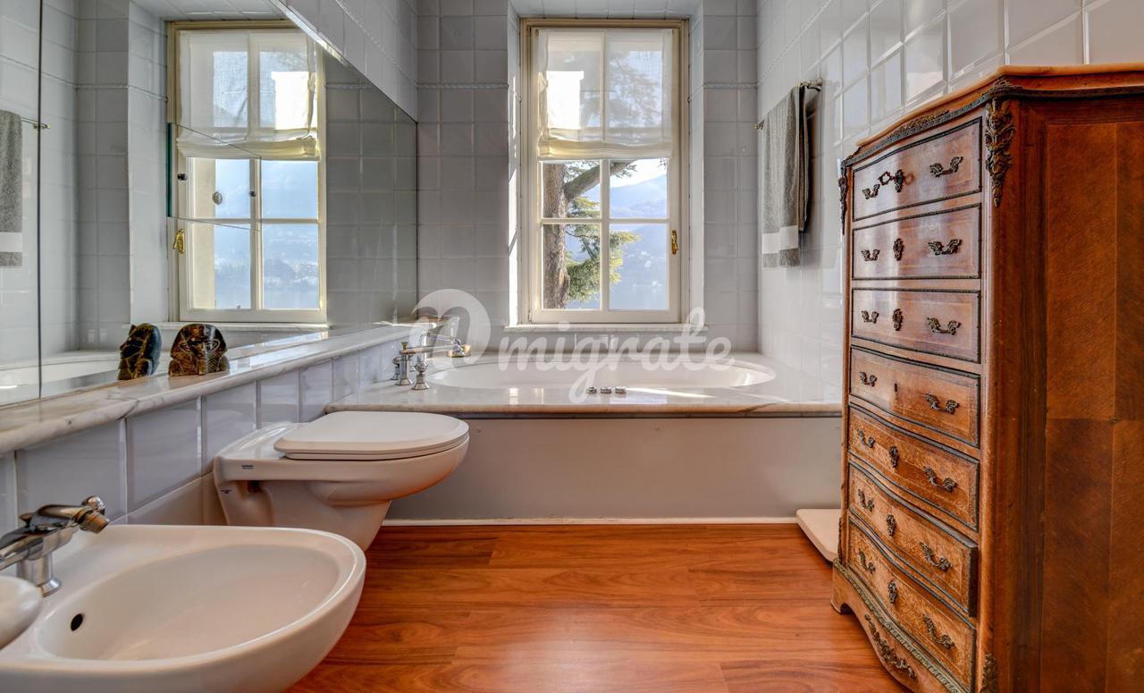 На первом этаже находится большая и светлая гостиная с панорамным видом на озеро, обеденная зона, кухня-столовая, гостевой туалет и котельная. Первый этаж состоит из прихожей, трех спален, двух ванных комнат и двух великолепных террас с умиротворяющим видом на озеро. Мансардный этаж с отдельным входом состоит из двух спален с кондиционерами, ванной комнаты, столовой, небольшой террасы и балкона. Этот верхний этаж в настоящее время успешно сдается в аренду для отдыха. В саду площадью около 600 кв.м. есть возможность построить бассейн или, проще говоря, поставить джакузи. Недвижимость включает в себя 4 открытых парковочных места, а также внешний подвал площадью 10 кв.м.