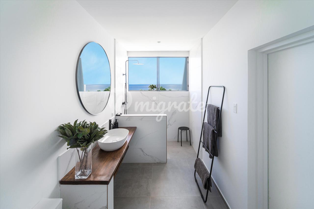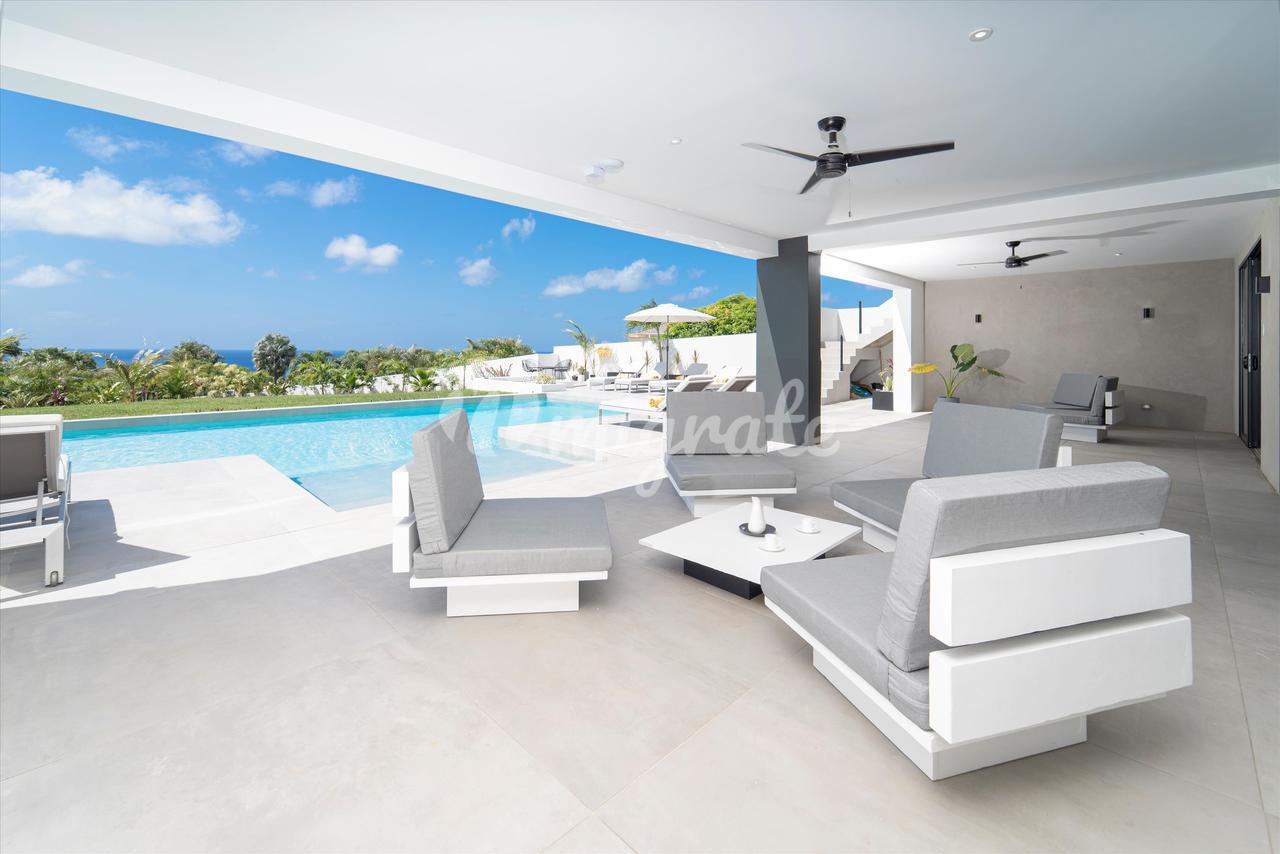 Подъездная дорожка, проходящая через электрические ворота, имеет просторную парковку и ведет к гаражу и стильному главному входу. Отсюда коридор ведет в обширное жилое пространство открытой планировки, из которого мгновенно открывается потрясающий вид на океан, через большие раздвижные двери и на глубокую террасу, где есть разнообразные варианты для отдыха и ужина, идеально расположенную, чтобы насладиться потрясающим видом на бассейн и сады, океан и прекрасный закат в Баджане.