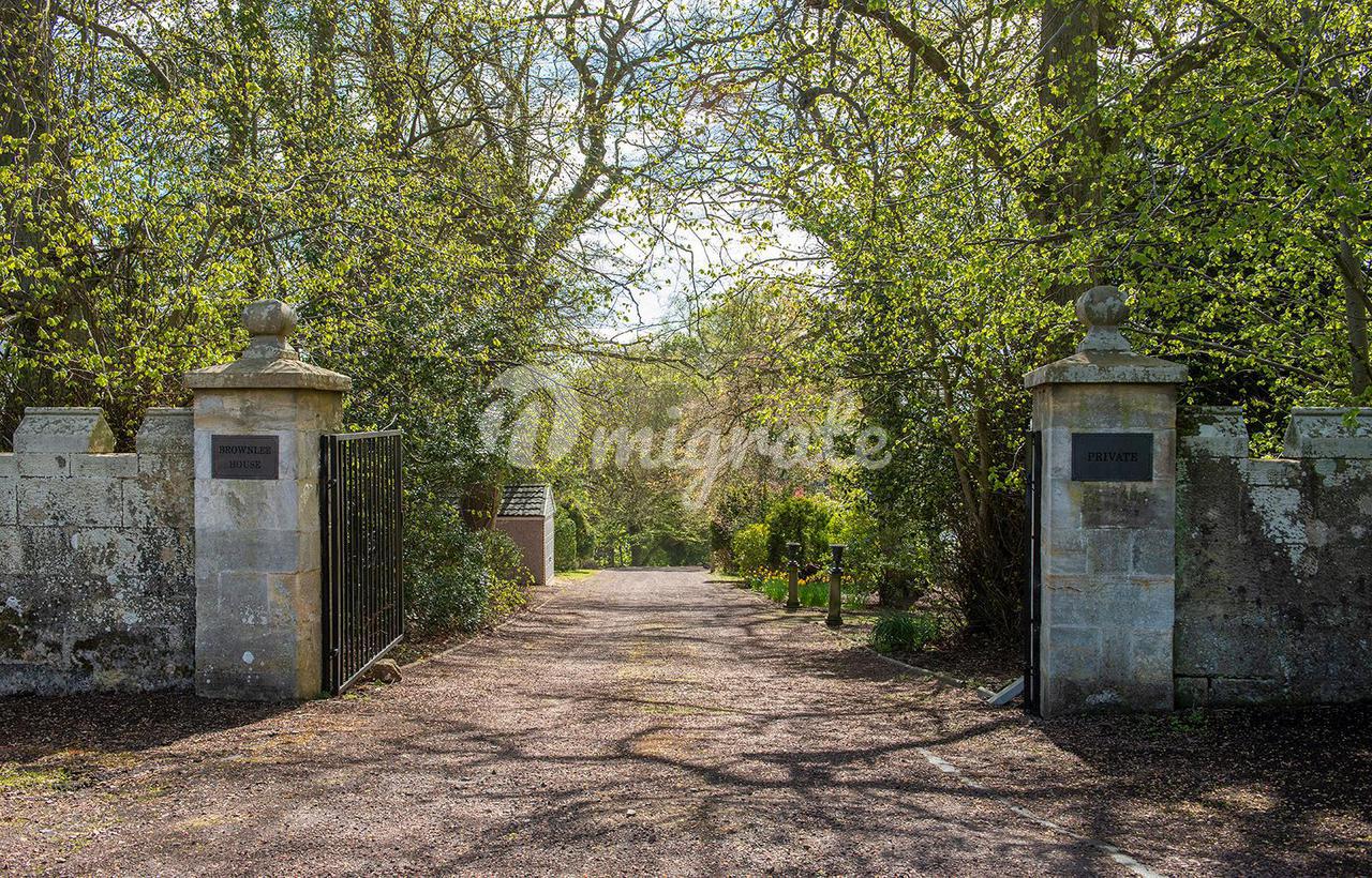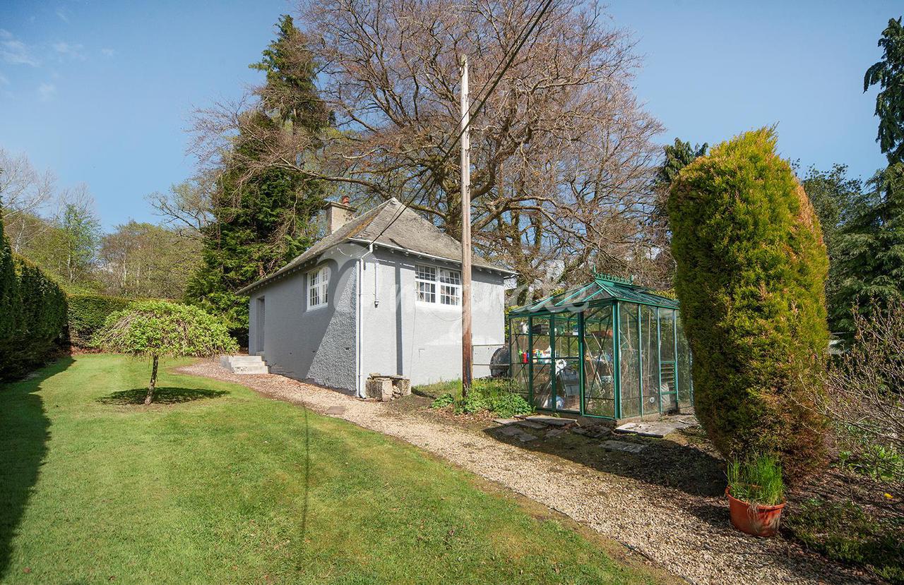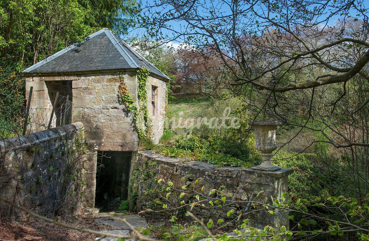Сады и хозяйственные постройки Рядом с домом расположены хозяйственные постройки: • Один гараж: отдельный с черепичной крышей • Старая коптильня: каменная, с шиферной крышей. • Беседка: пристроена к обнесенному стеной саду, каменная, с шиферной крышей. Сад и политика в Браунли являются реальной особенностью и занимают в общей сложности около 9,71 акра. Это включает формальные лужайки к фронту. К задней части есть область внутреннего дворика с лужайками и живой изгородью. Вне есть прекрасный обнесенный стеной сад. Ступени ведут под беседкой в большой огороженный сад. Это включает фруктовый сад, огород и пруд на дне. Сады окружены смешанными зрелыми лесами, что обеспечивает удобство и уединение. За формальными лужайками к берегу реки Клайд ведет грубый пастбищный участок. В собственность входит участок реки Клайд с правом лова форели. Общественная пешеходная дорожка проходит вдоль берега реки и ограждена от формальных полисов.