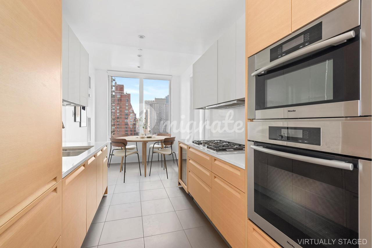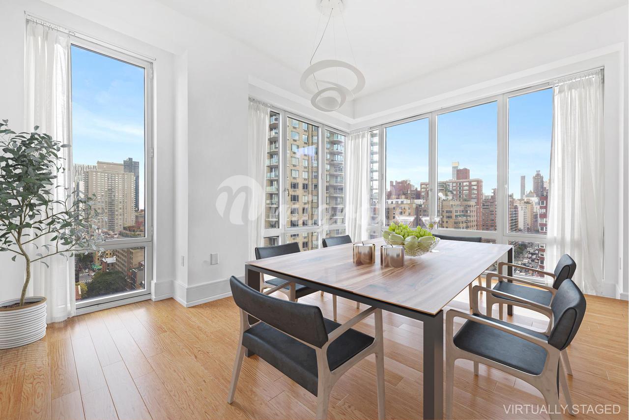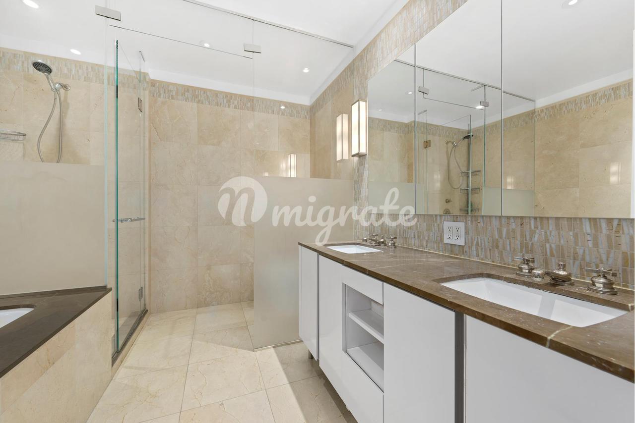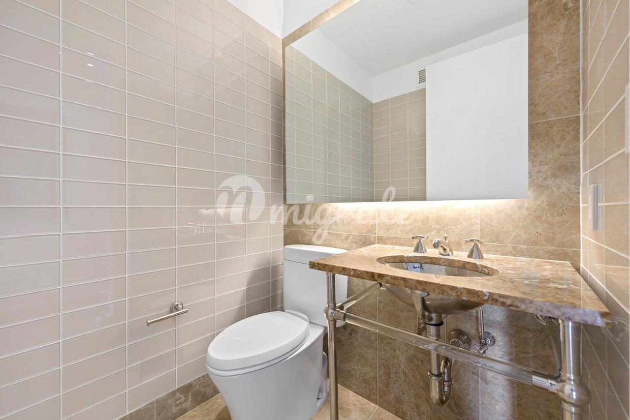 Изящное фойе ведет в просторную гостиную с 10-футовыми потолками, паркетными полами и окнами от пола до потолка с двойной экспозицией. Наслаждайтесь отдельной кухней-столовой с живописным восточным видом из уголка для завтрака. Кухня для гурманов оснащена интегрированным пакетом бытовой техники Miele и Subzero, включая пятиконфорочную плиту и отдельный винный холодильник. Все это дополняется столешницами Caesarstone, лакированной мебелью из клена Varena и светильниками Franke.