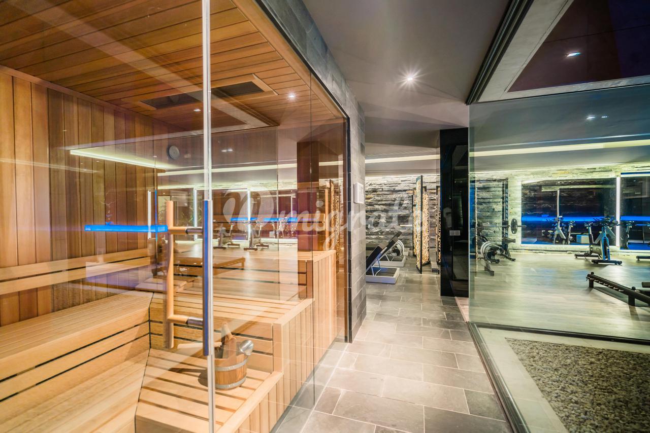 Высококачественные и экологически чистые материалы, столовая с изготовленной на заказ мебелью и 8 спален с ванными комнатами, каждая из которых отличается индивидуальностью, полностью минималистская кухня от Poggenpohl, отдельная гостевая квартира, дизайнерский стеклянный винный погреб и великолепный спа-центр с естественным освещением, включая сауну, паровую баню. , холодная ванна, тренажерный зал и салон красоты.