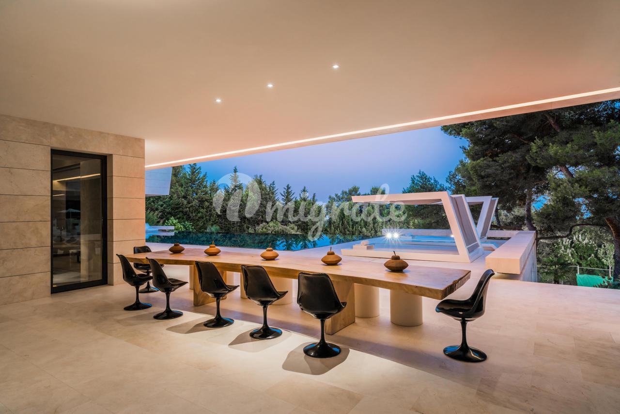 Расположенный на участке площадью 6 446 м2 и с застроенной площадью 3 152 м², этот авангардный отель может похвастаться просторными номерами и планировкой, продуманной для комфортного проживания и приема гостей, органично сочетая внутреннее и внешнее пространство. Усовершенствованная домашняя автоматизация представляет особый интерес, поскольку она, среди прочего, управляет освещением, всей аудиовизуальной системой и доступом.